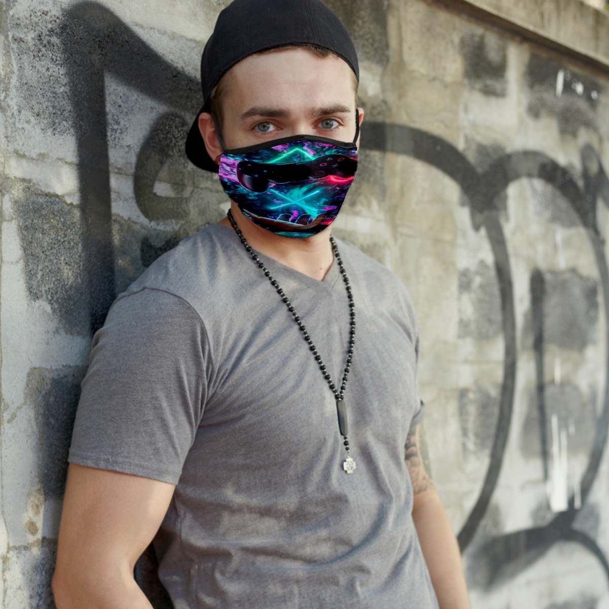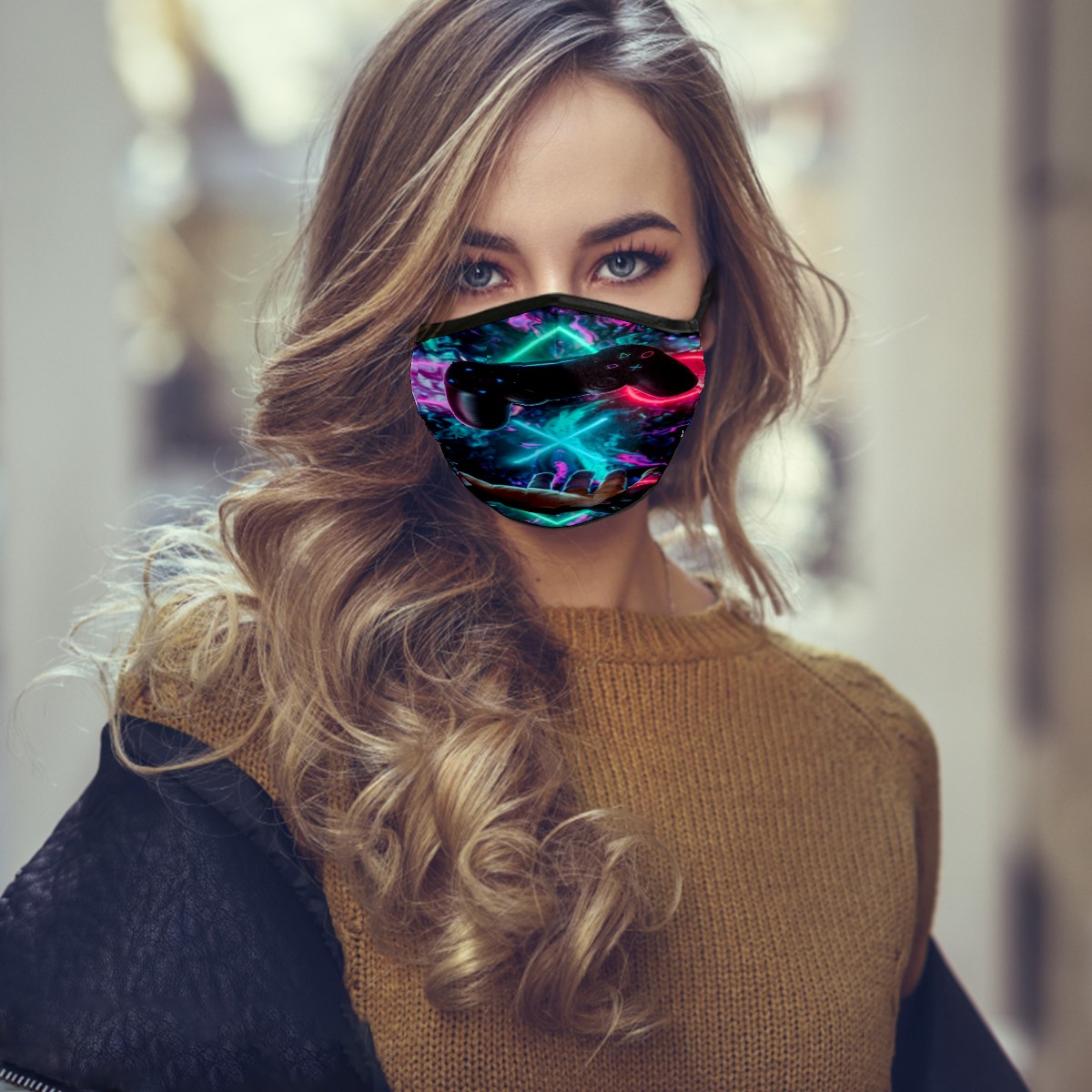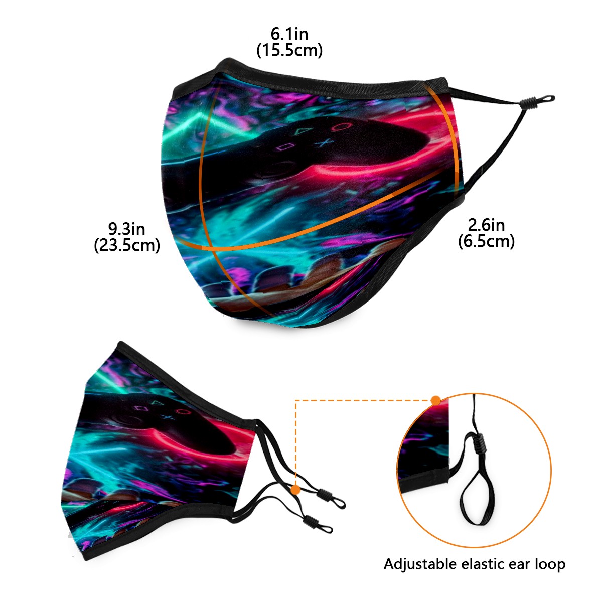 Washable Cloth Face Cover Mask 3D Gamer Controller Reusable Dust Windproof Mask Face Protection Adjustable Ear Loops & Nose Wire Bandana with 6 Pcs Filter for Women Men Kids