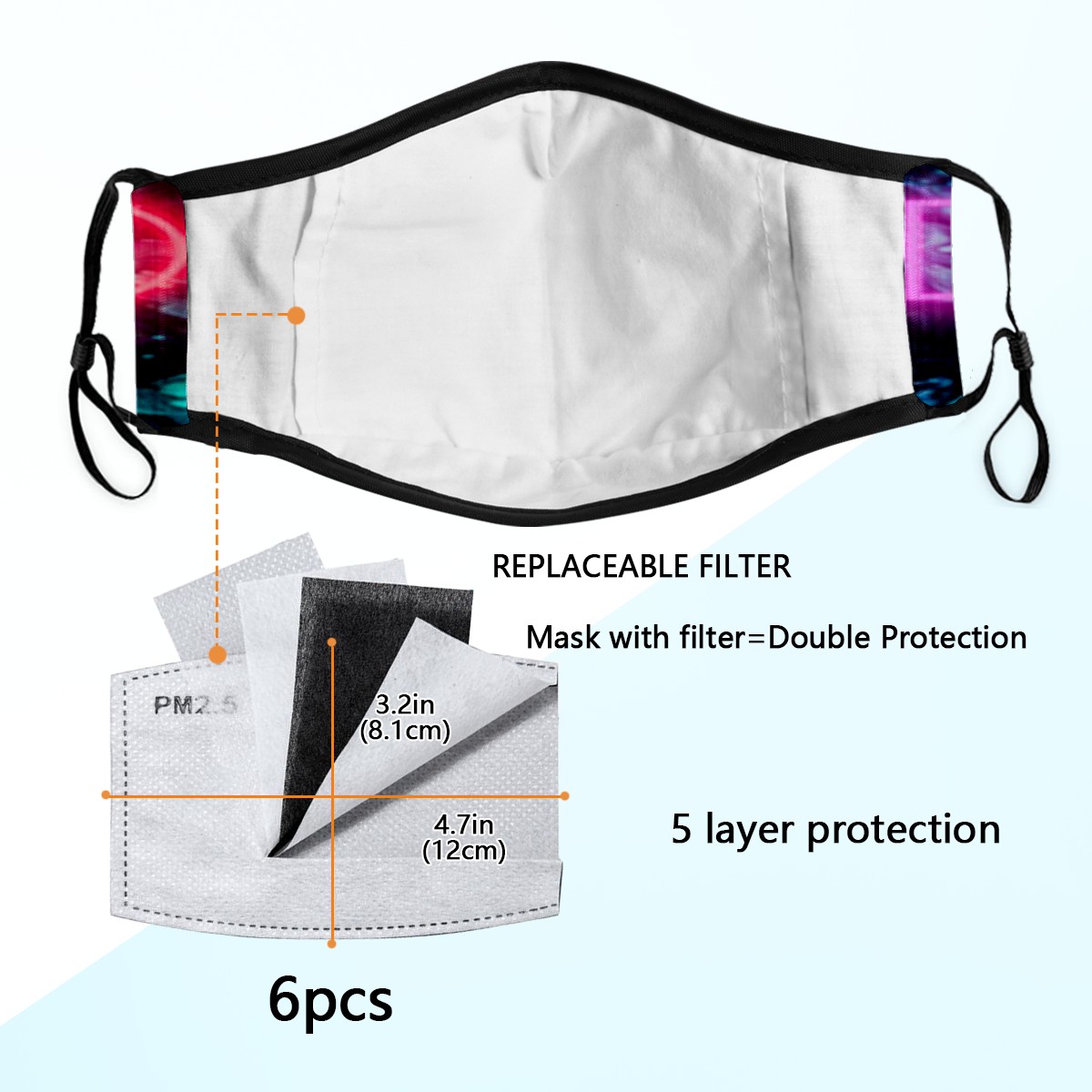 • <p><b>Adjustable ear loops &amp; Nose Wire Face Cover Masks,provide better snug fit and comfort for Men/Women/Family/Friends/Boys/Girls/Kids. Comfortable,Washable and reusable characteristic bring you convenience in daily use.</b></p> <p></p> <p>Specification of Face mask cover</p> <p><b>Material: outer polyester + inner cotton.</b></p> <p><b>One Size Fits All: 9.3x6.1 inch.</b></p> <p><b>Package includes: one mouth shield with 6pcs filter carbon sheet.Each respirator is crafted with five layers.</b></p> <p>Print: High Quality Printing.</p> <p></p> <p>Features of Face Covering</p> <p>Washable.Easy to Clean.</p> <p><b>Adjustable ear loops &amp; Nose Wire.</b></p> <p>Lightweight,durable and especially safe</p> <p>Ideal Gift: Our dustproof shield cute patterns and a variety of colors, perfect gift for your family, friends,colleague and husband/wife in thanksgiving, Christmas, new year and birthday.&nbsp;</p> <p>Occasion: Our Popularity and personality face masks suitable for sport, school,shopping, hiking,cycling,fishing, surfing skiing,party, daily life using and other indoor/outdoor activities.</p> <p>we value our customers and hope you enjoy a pleasant shopping experience!If you have any questions, please feel free to contact us.</p>