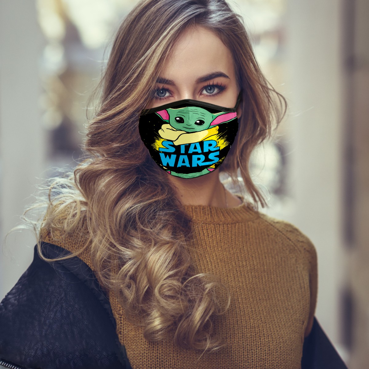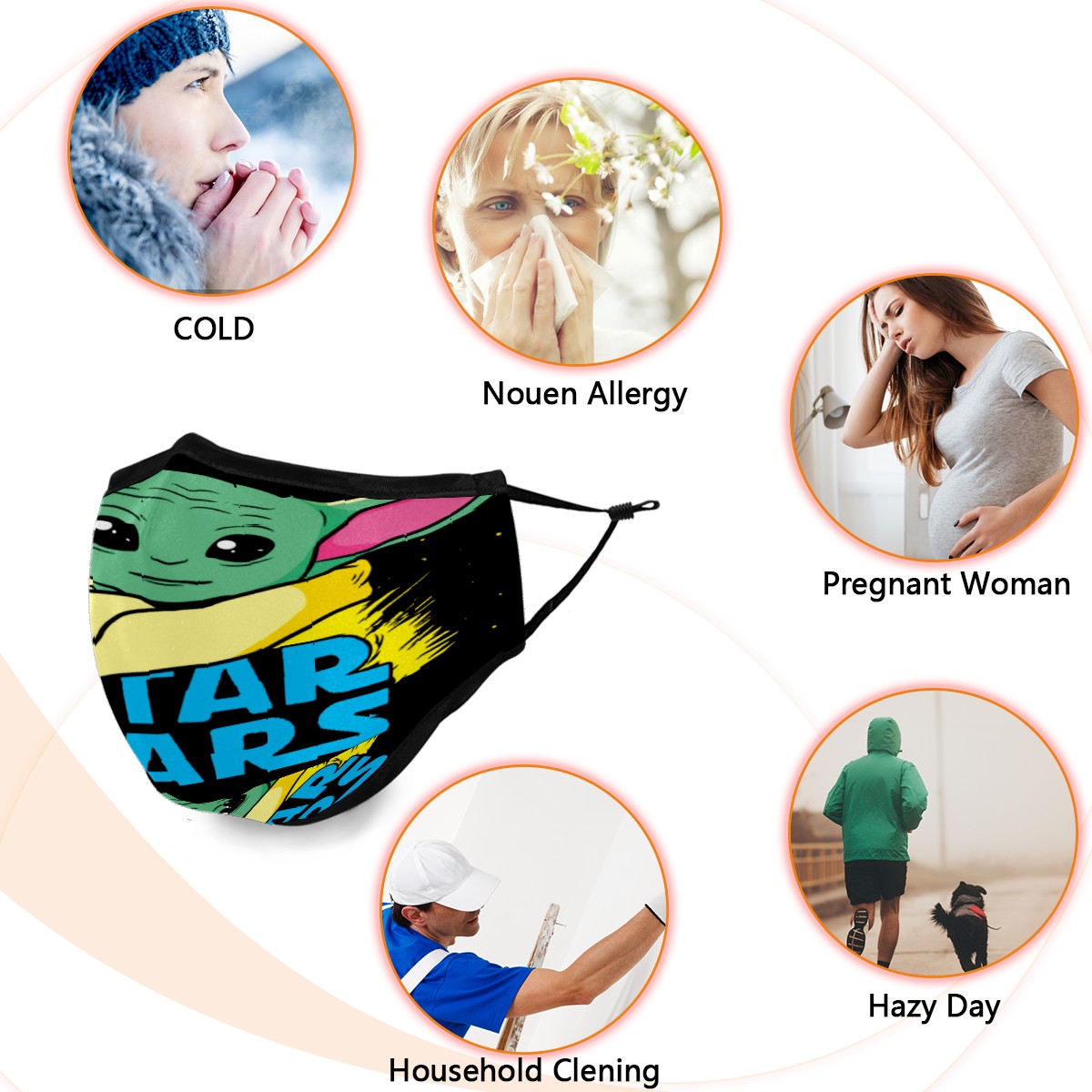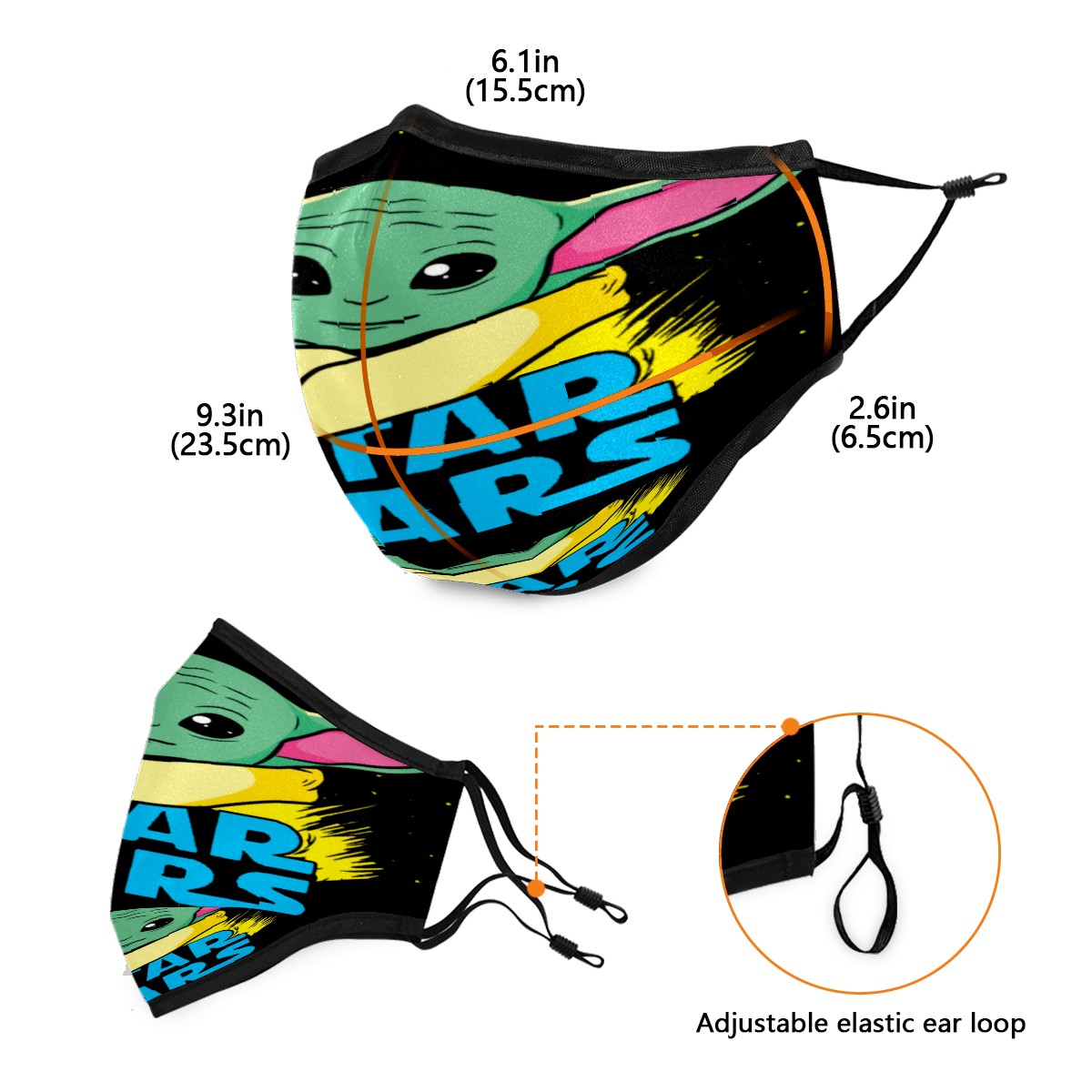 Washable Cloth Face Cover Mask Star Wars Cute Yoda Reusable Dust Windproof Mask Face Protection Adjustable Ear Loops & Nose Wire Bandana with 6 Pcs Filter for Women Men Kids