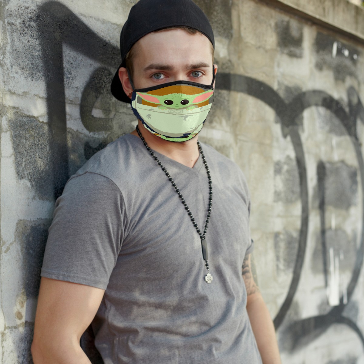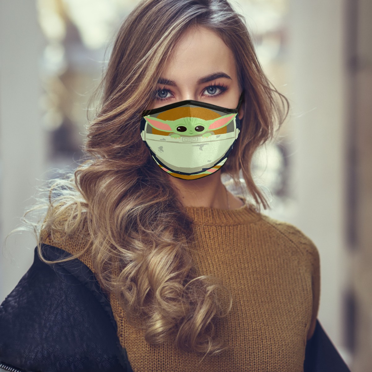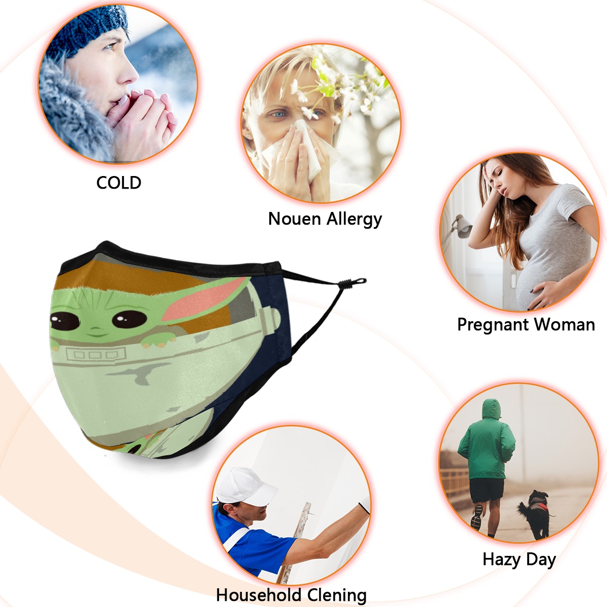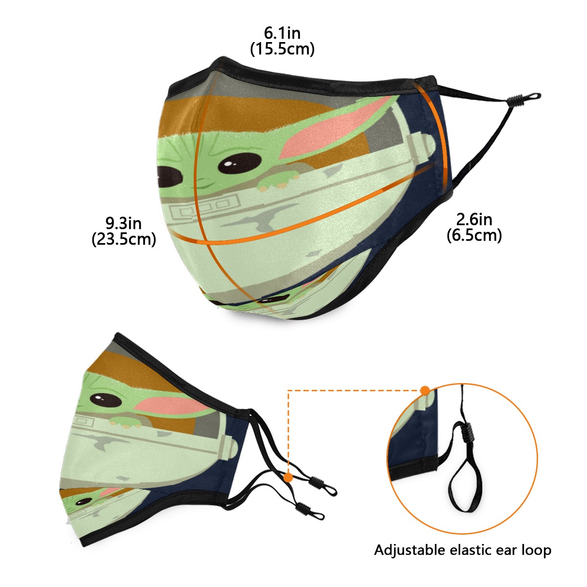 Washable Cloth Face Cover Mask Cute Baby Yoda Alien Reusable Dust Windproof Mask Face Protection Adjustable Ear Loops & Nose Wire Bandana with 6 Pcs Filter for Women Men Kids