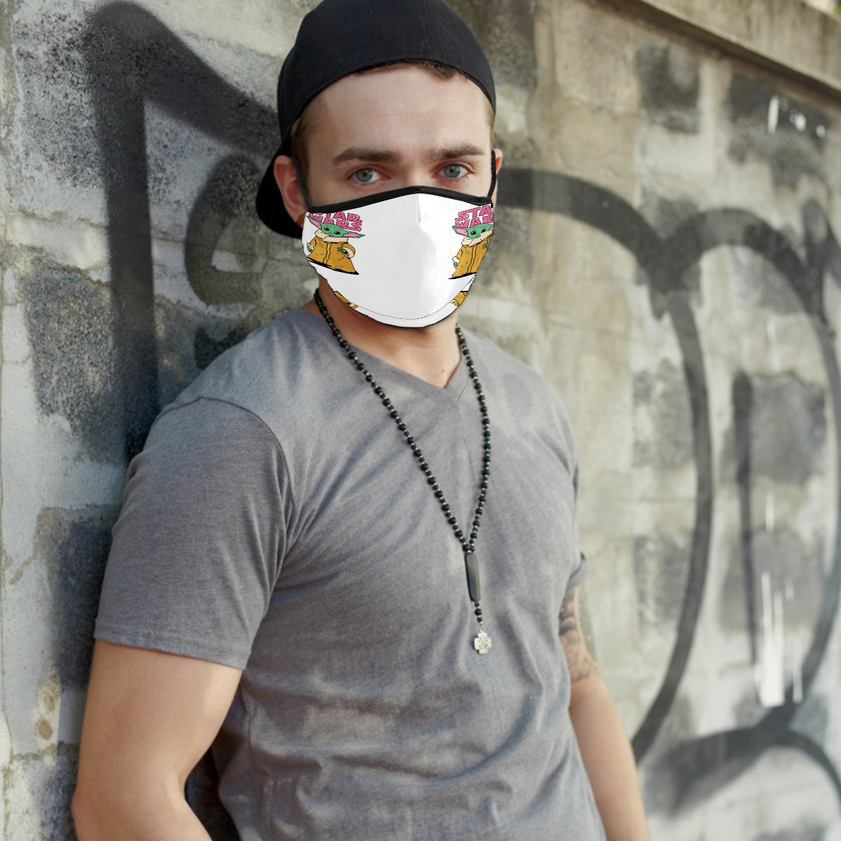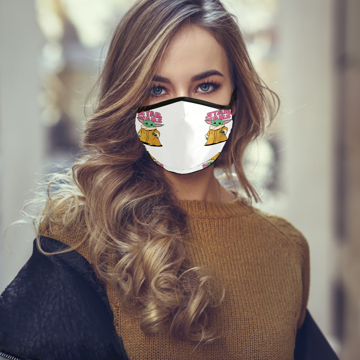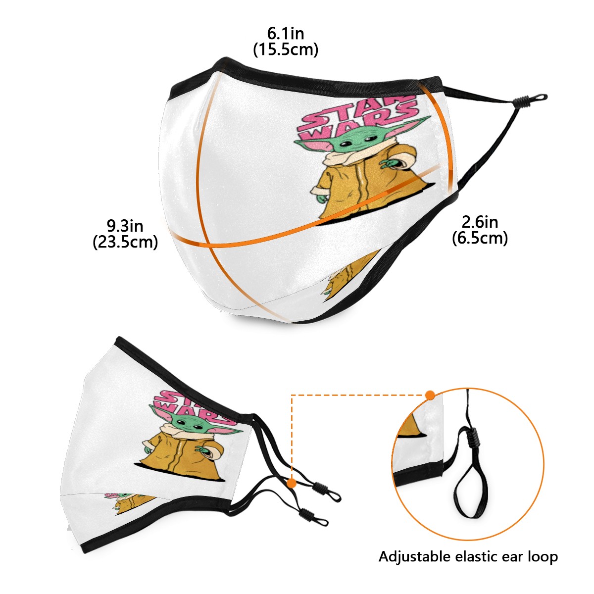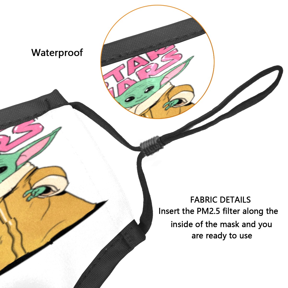 Washable Cloth Face Cover Mask Cartoon Baby Yoda Reusable Dust Windproof Mask Face Protection Adjustable Ear Loops & Nose Wire Bandana with 6 Pcs Filter for Women Men Kids