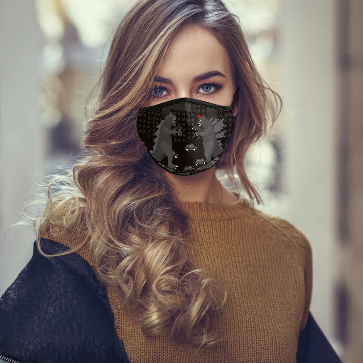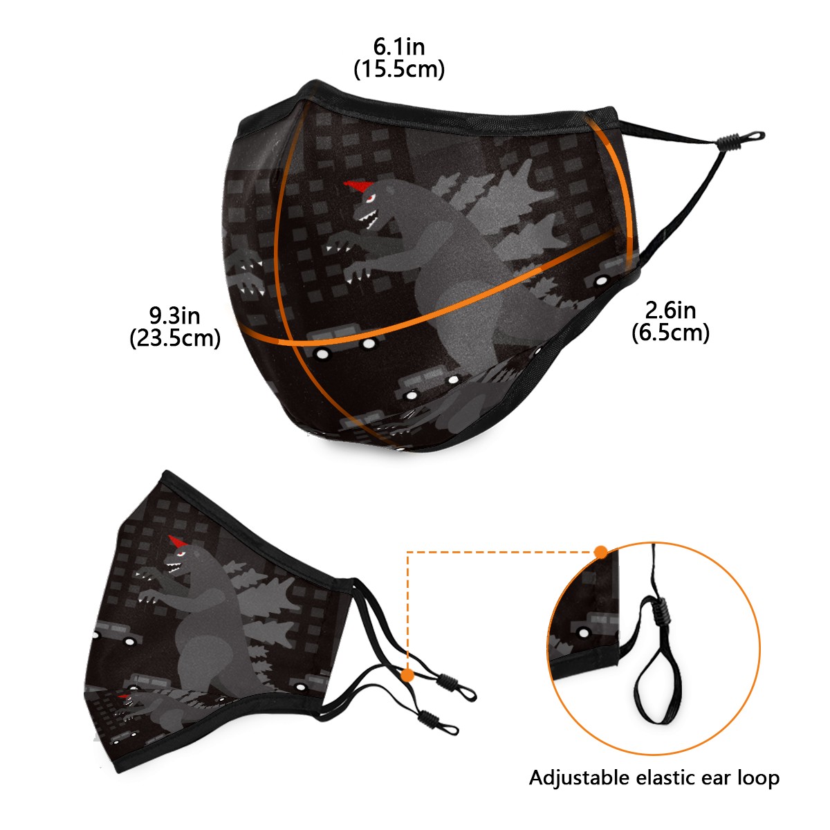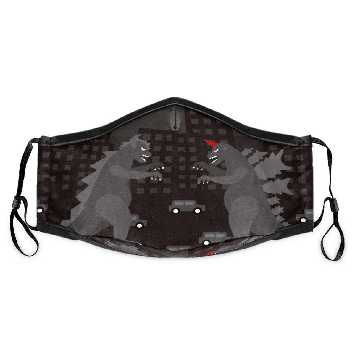 Washable Cloth Face Cover Mask Black Godzilla Dinosaur Fighting Reusable Dust Windproof Mask Face Protection Adjustable Ear Loops & Nose Wire Bandana with 6 Pcs Filter for Women Men Kids