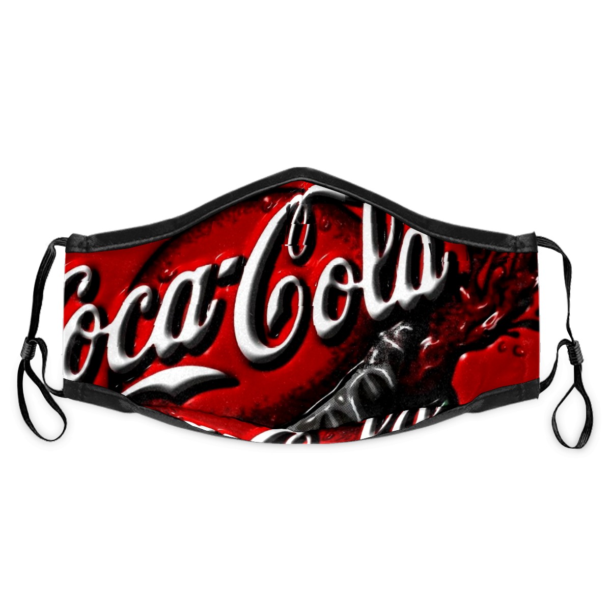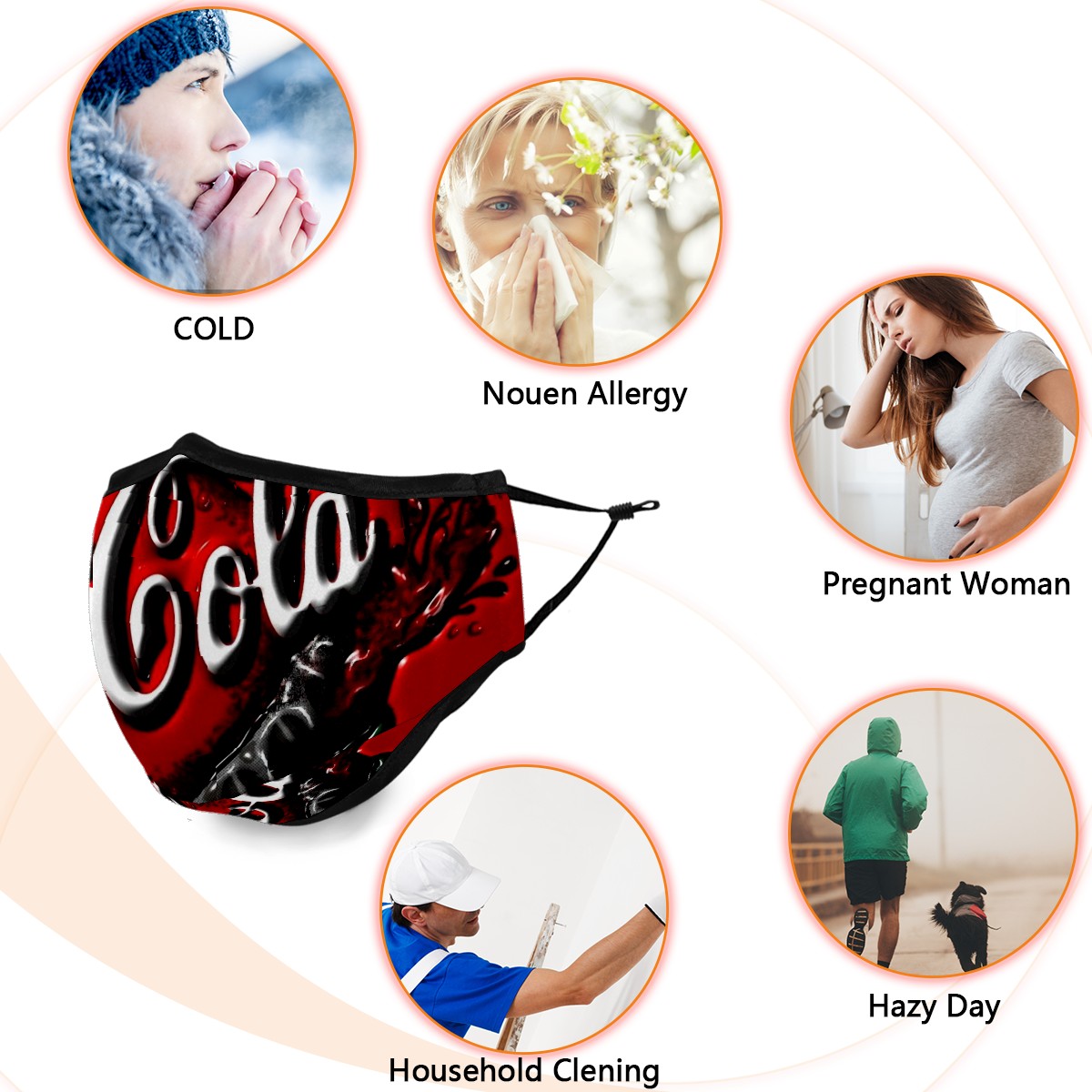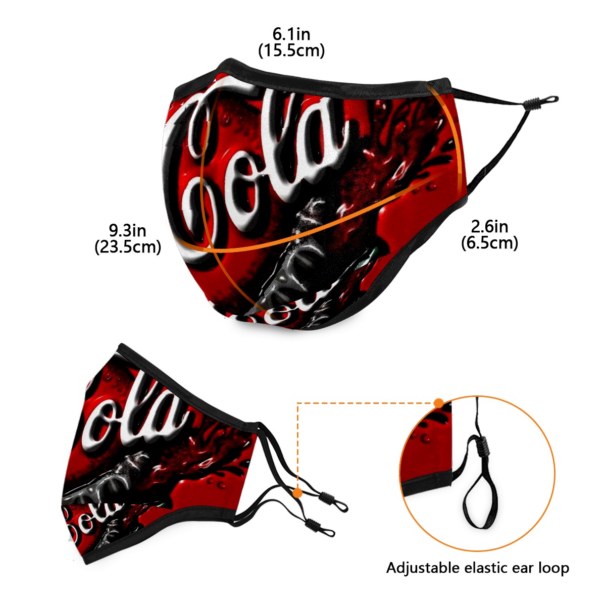 Washable Cloth Face Cover Mask Retro Coca Cola Spray Reusable Dust Windproof Mask Face Protection Adjustable Ear Loops & Nose Wire Bandana with 6 Pcs Filter for Women Men Kids