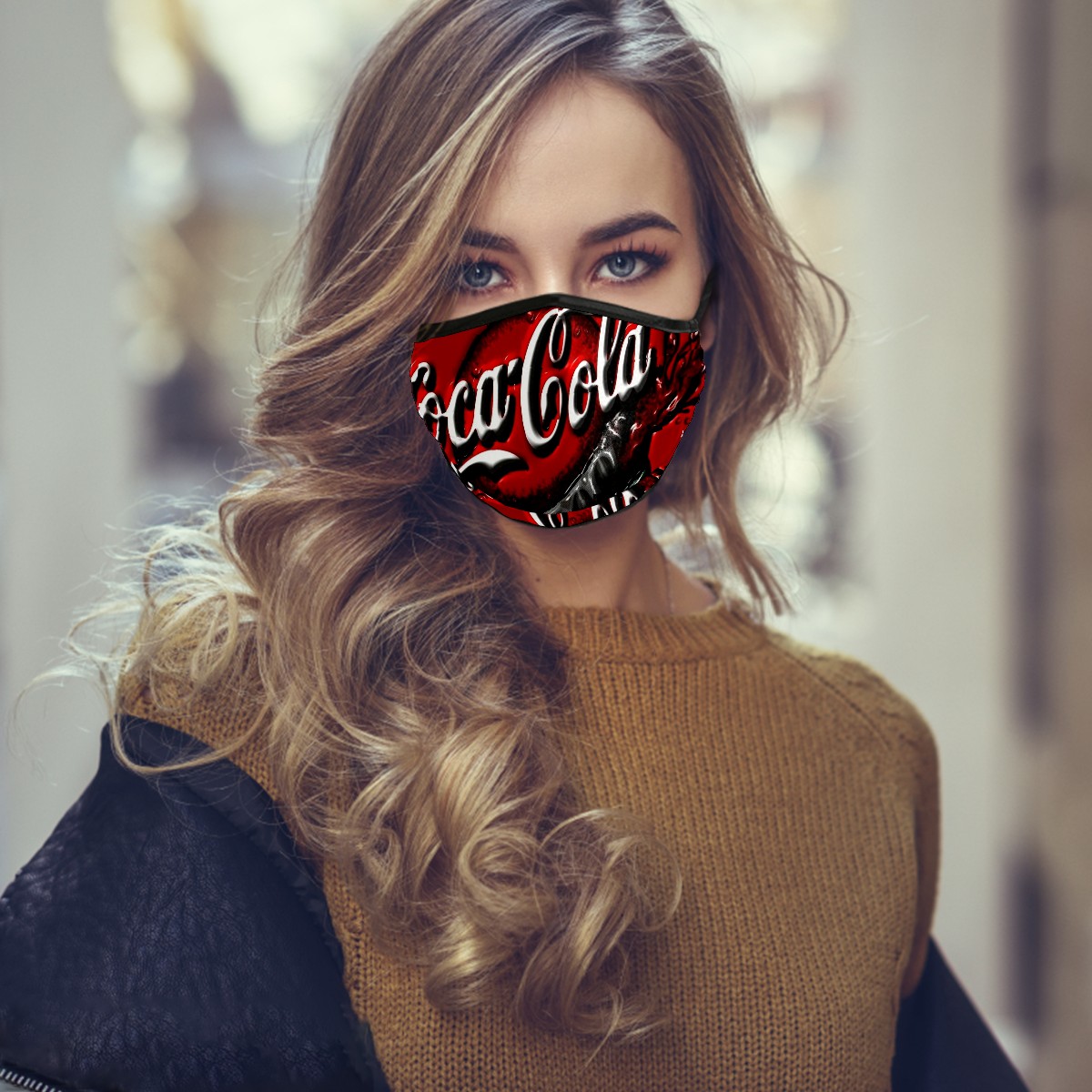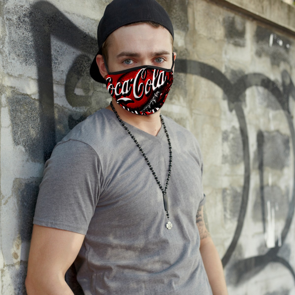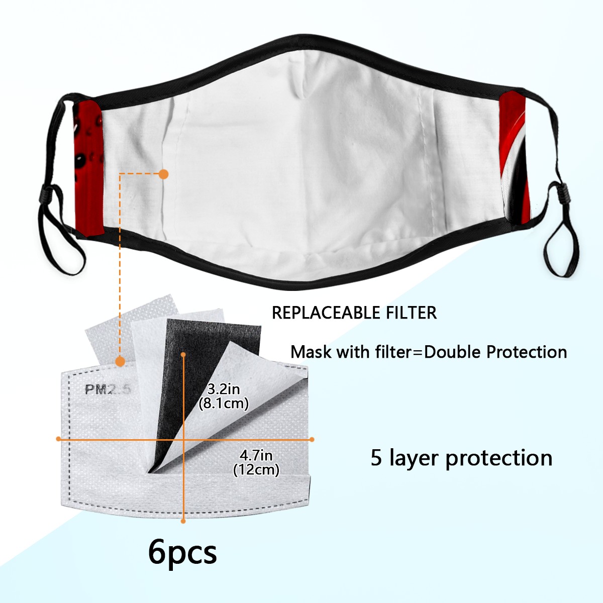 Washable Cloth Face Cover Mask Retro Coca Cola Spray Reusable Dust Windproof Mask Face Protection Adjustable Ear Loops & Nose Wire Bandana with 6 Pcs Filter for Women Men Kids