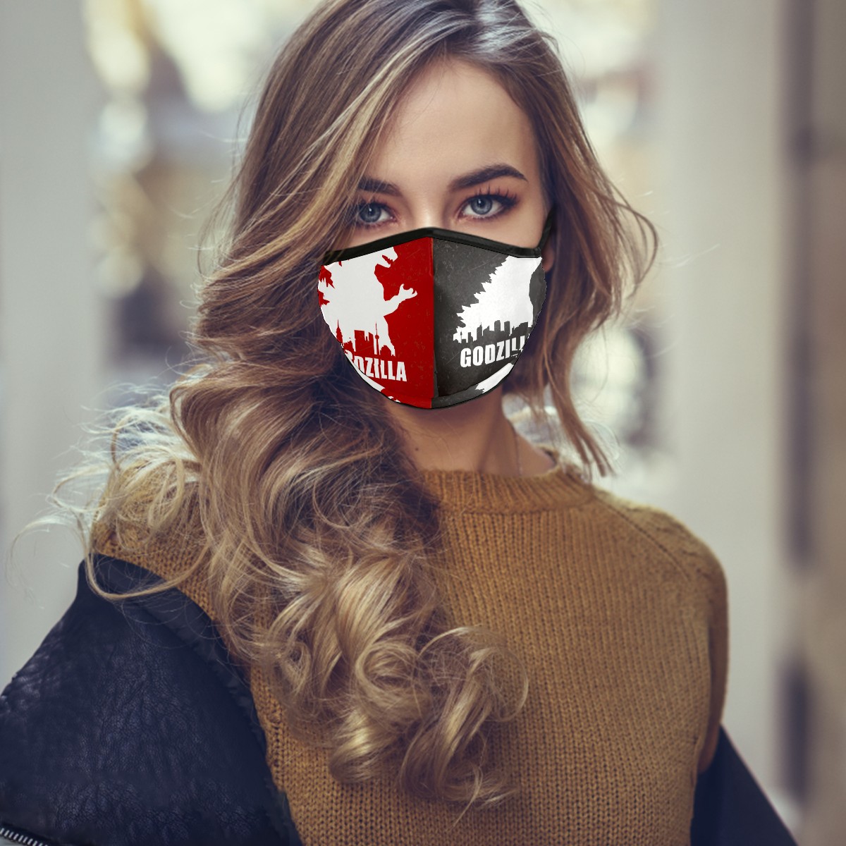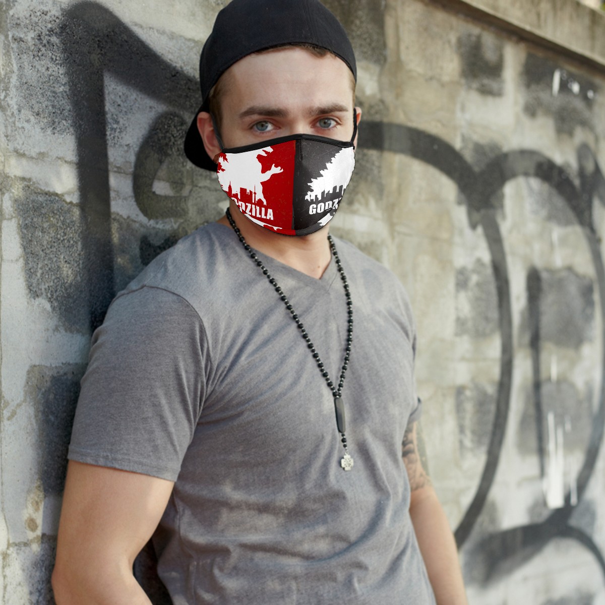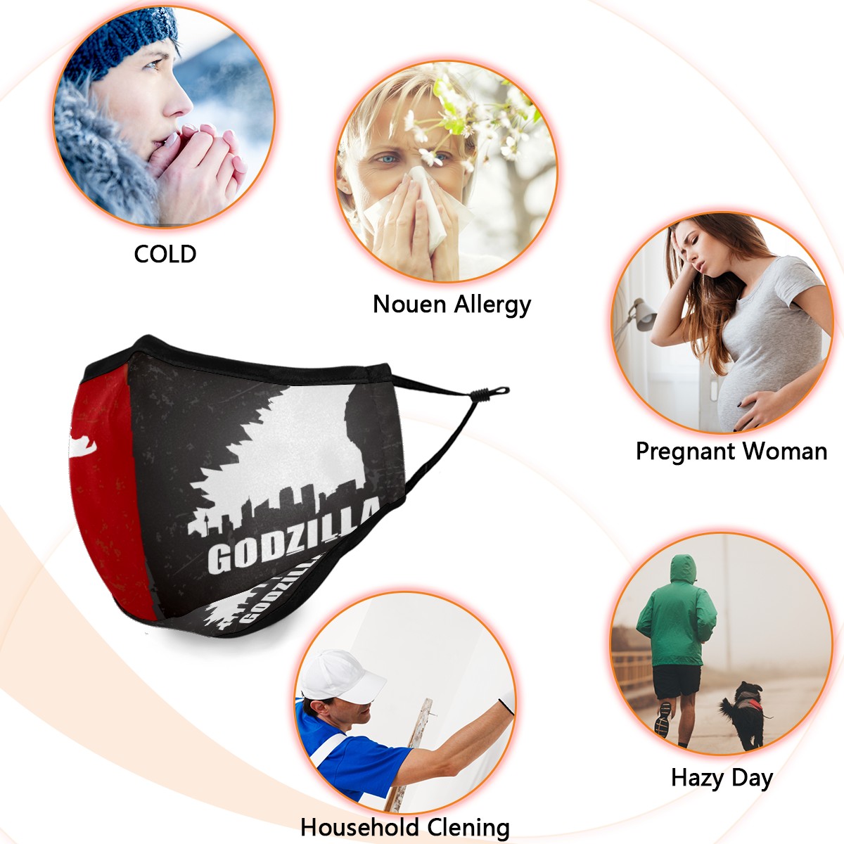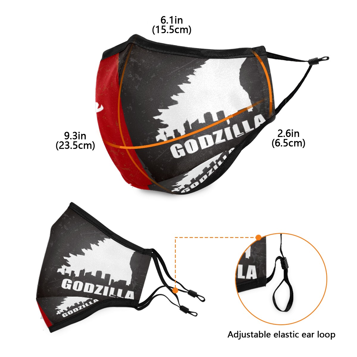 Washable Cloth Face Cover Mask Vintage Godzilla Dinosaur Red Gray Reusable Dust Windproof Mask Face Protection Adjustable Ear Loops & Nose Wire Bandana with 6 Pcs Filter for Women Men Kids