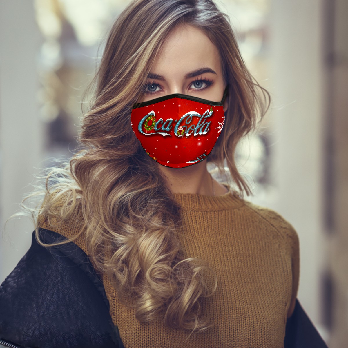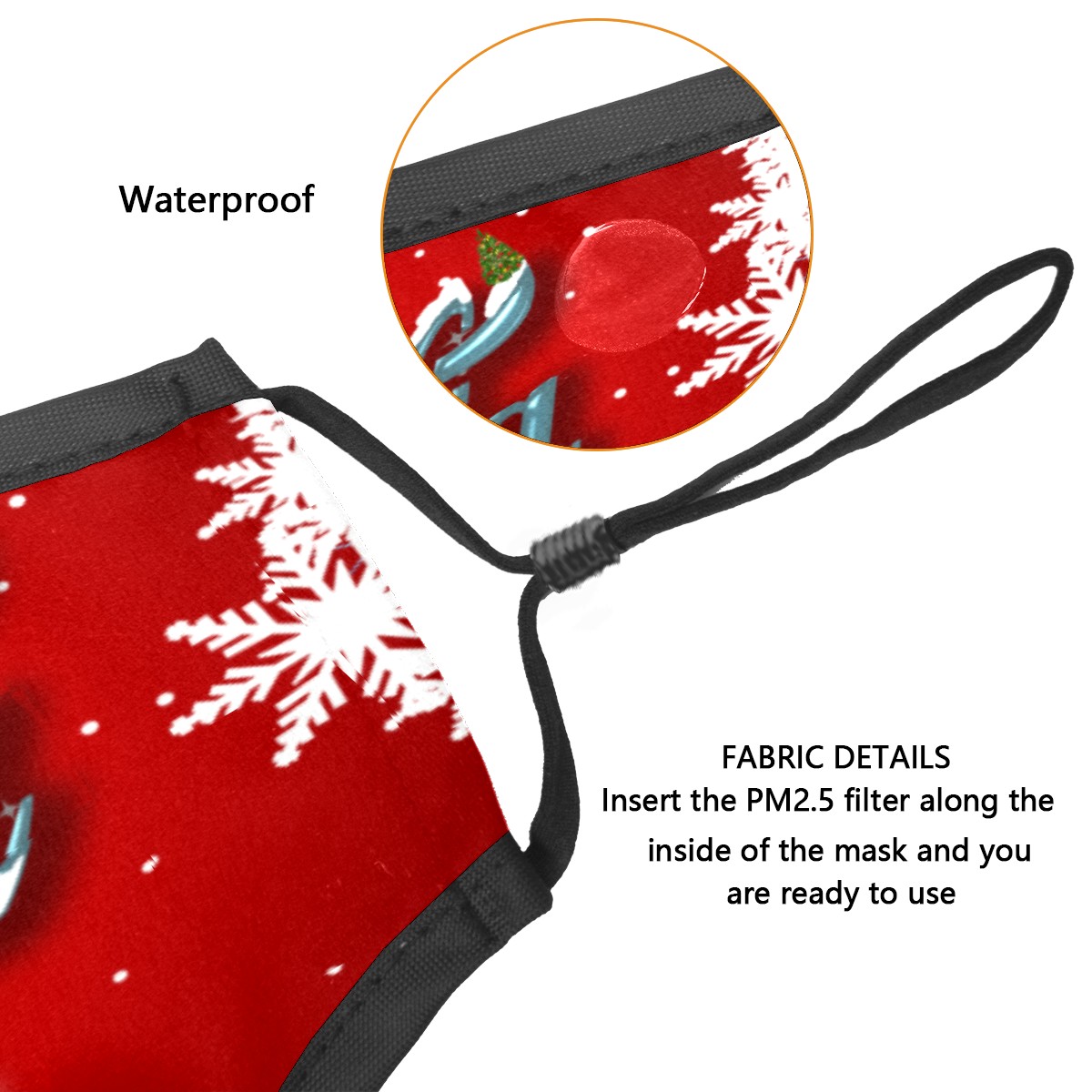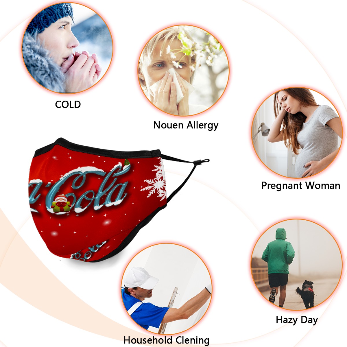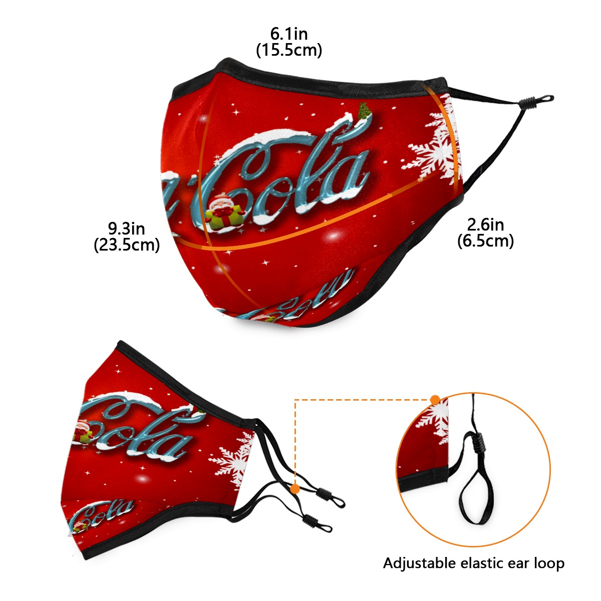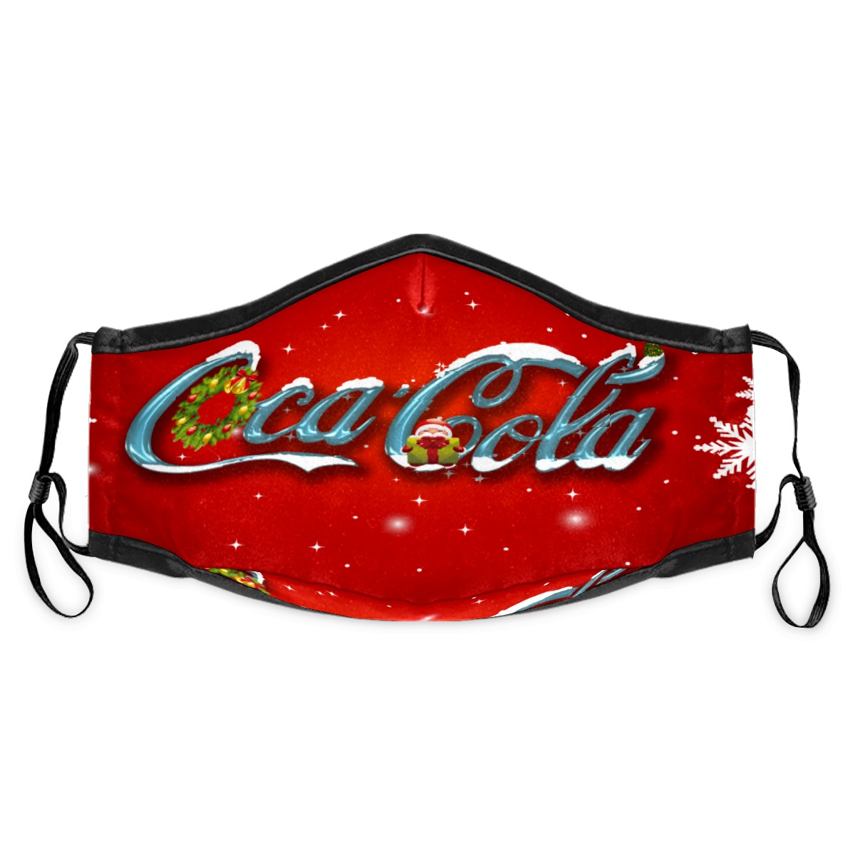 Washable Cloth Face Cover Mask Coca Cola Christmas Snowflake Reusable Dust Windproof Mask Face Protection Adjustable Ear Loops & Nose Wire Bandana with 6 Pcs Filter for Women Men Kids