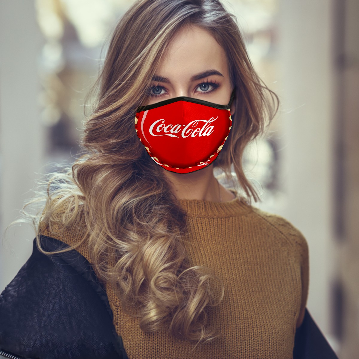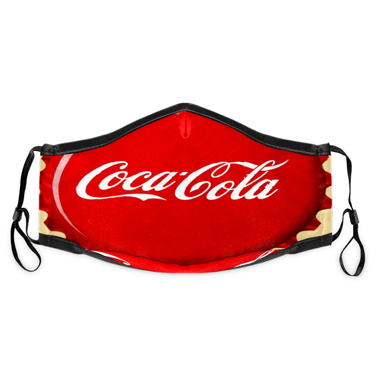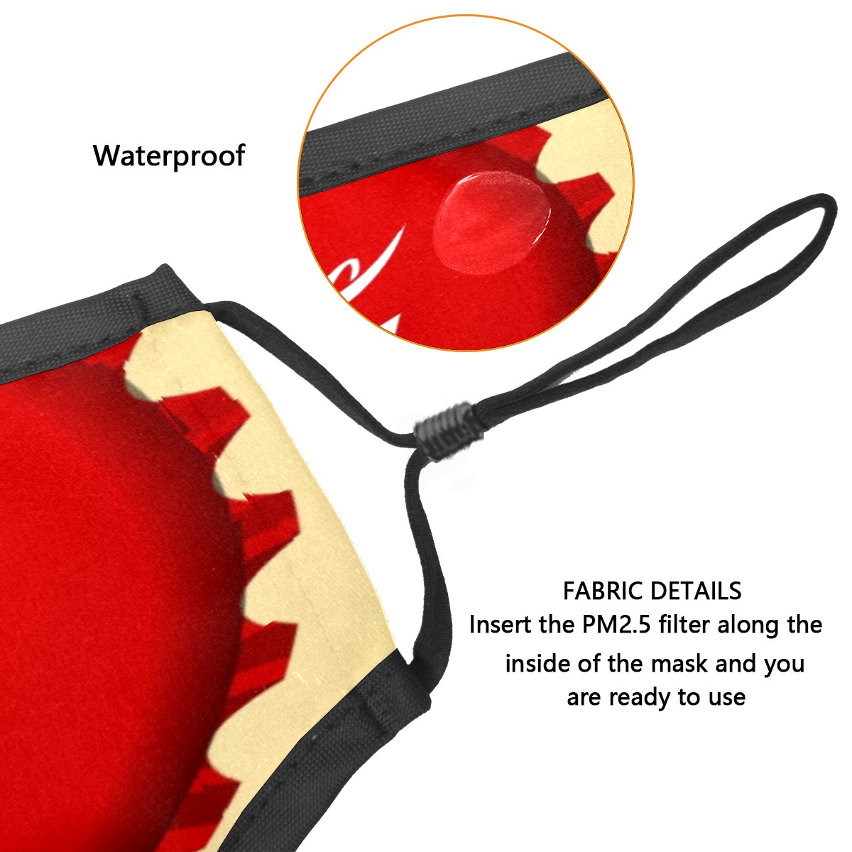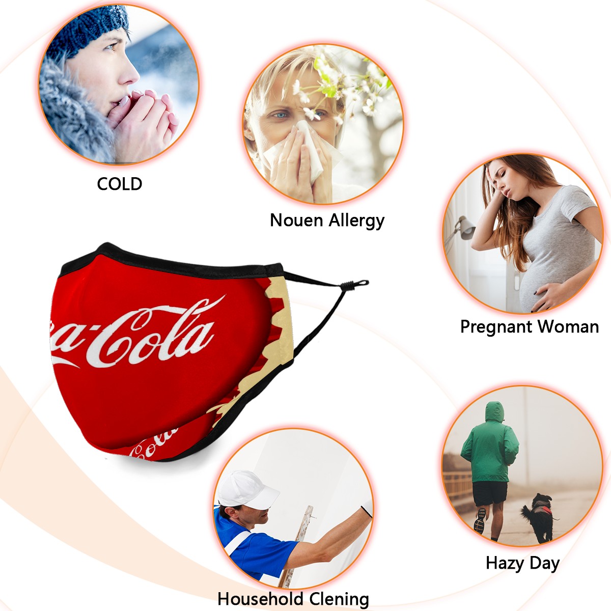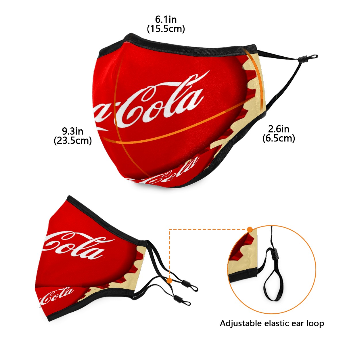 Washable Cloth Face Cover Mask Coca Cola Bottle Cap Reusable Dust Windproof Mask Face Protection Adjustable Ear Loops & Nose Wire Bandana with 6 Pcs Filter for Women Men Kids