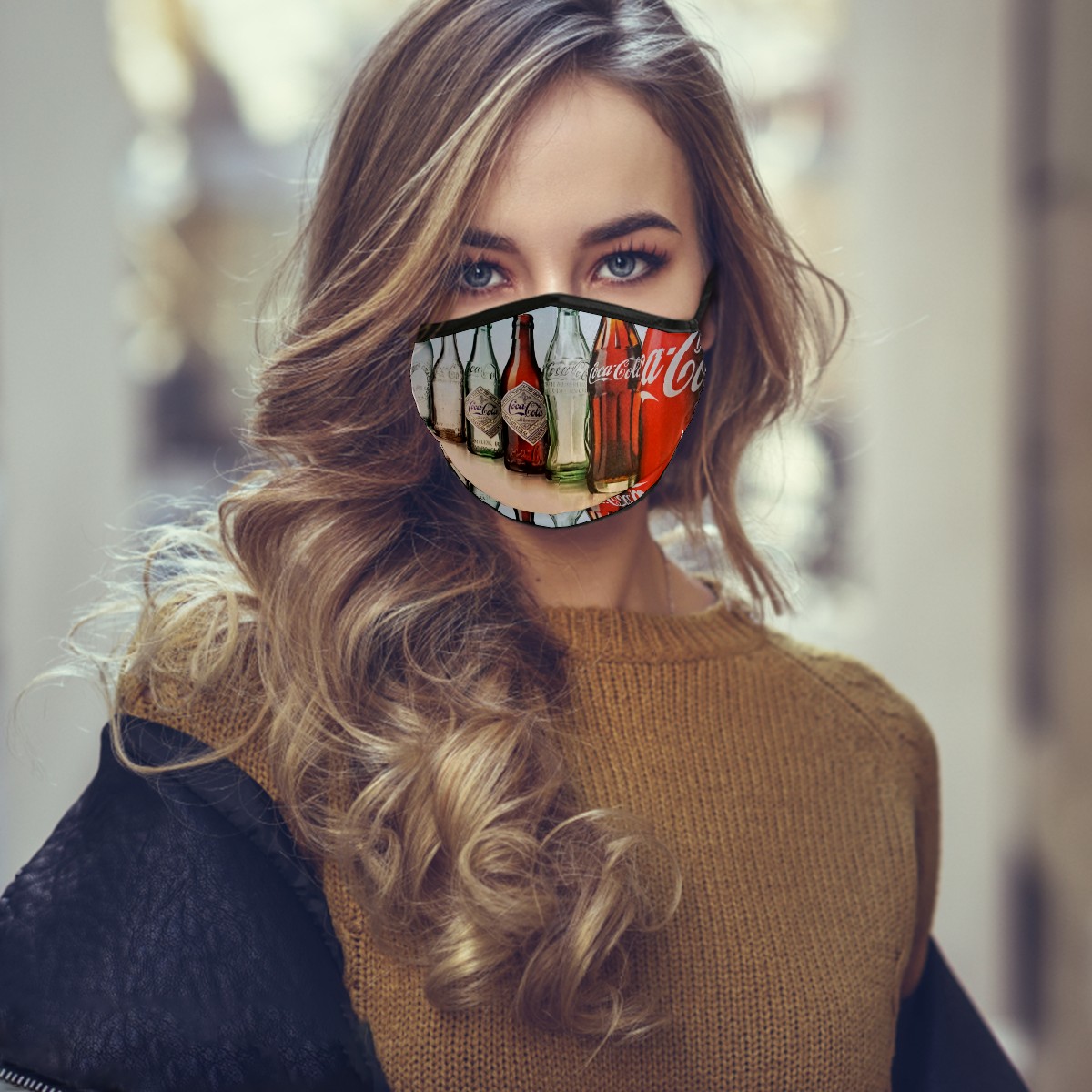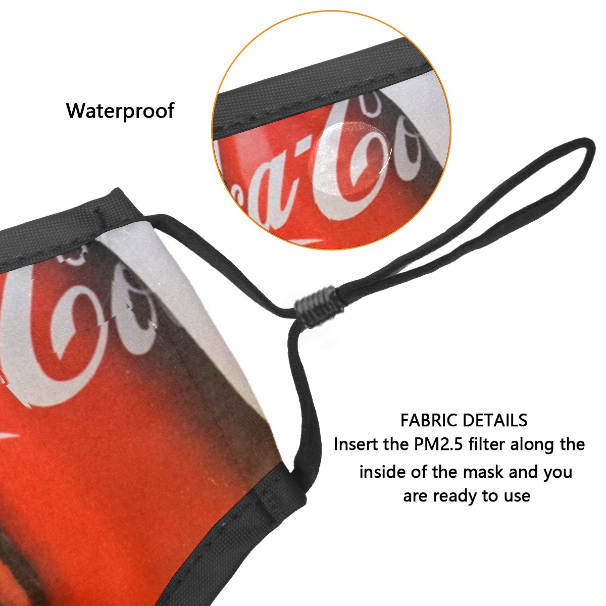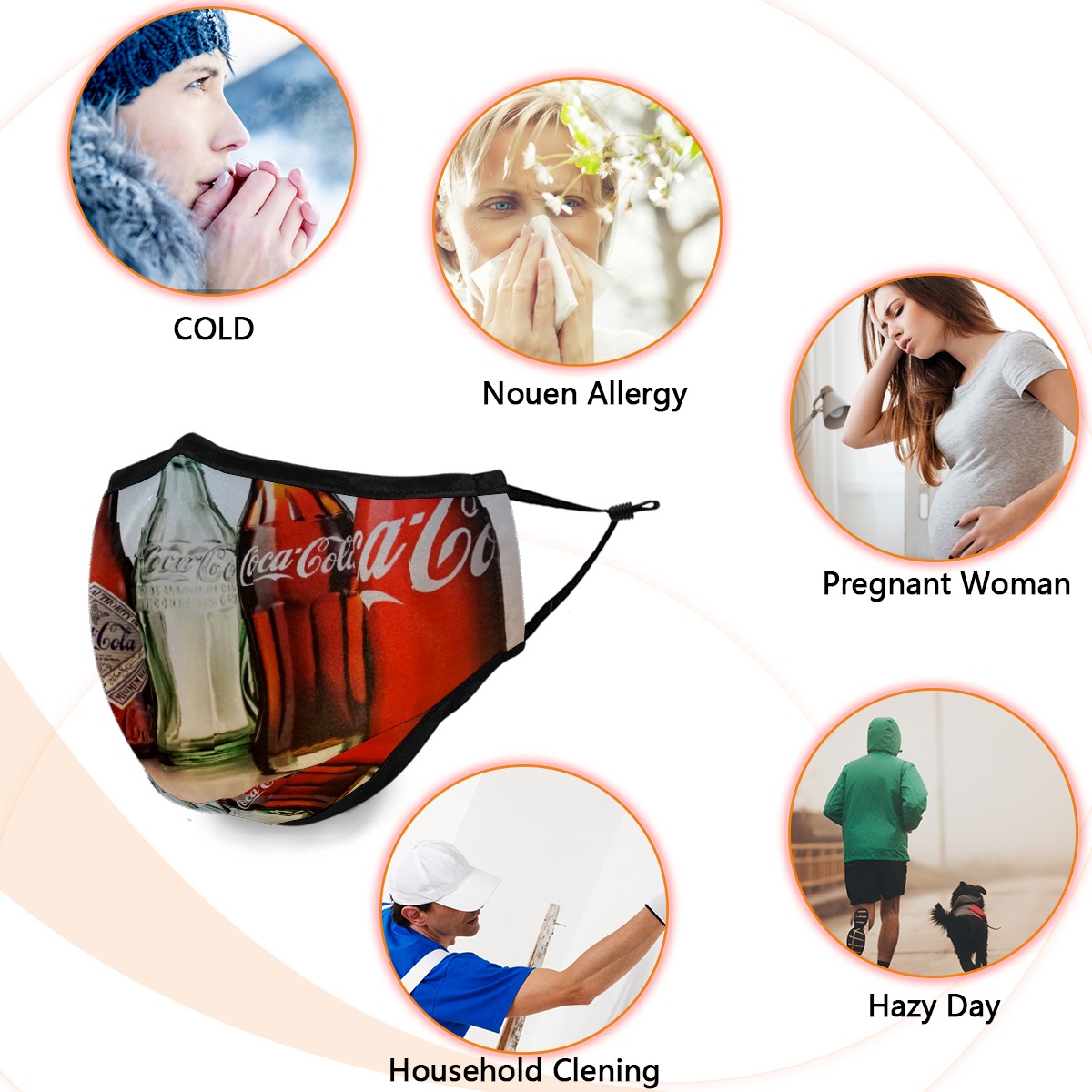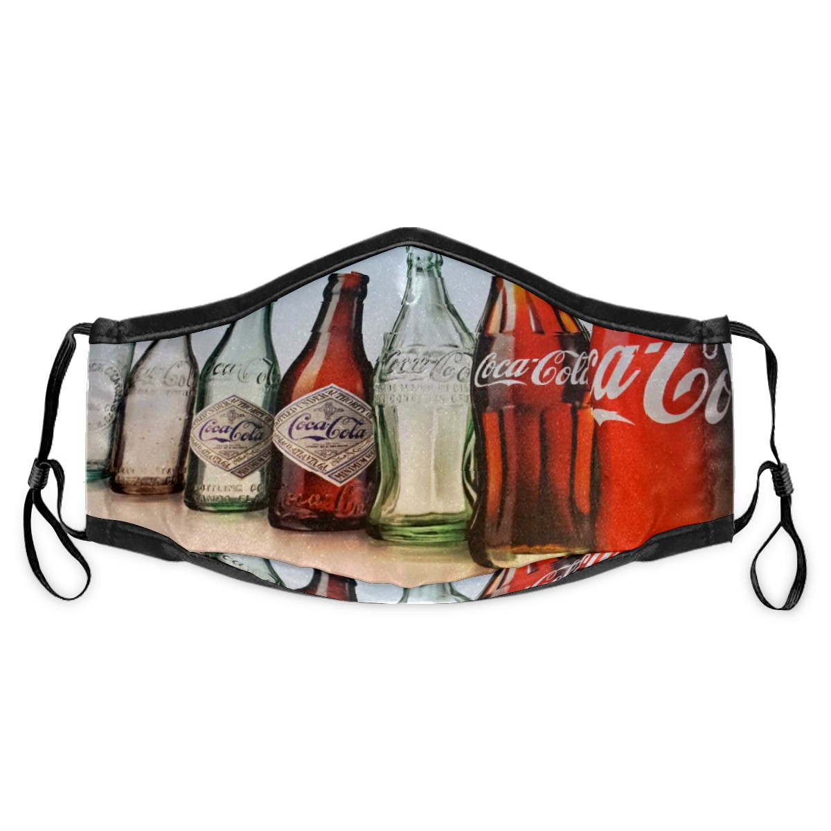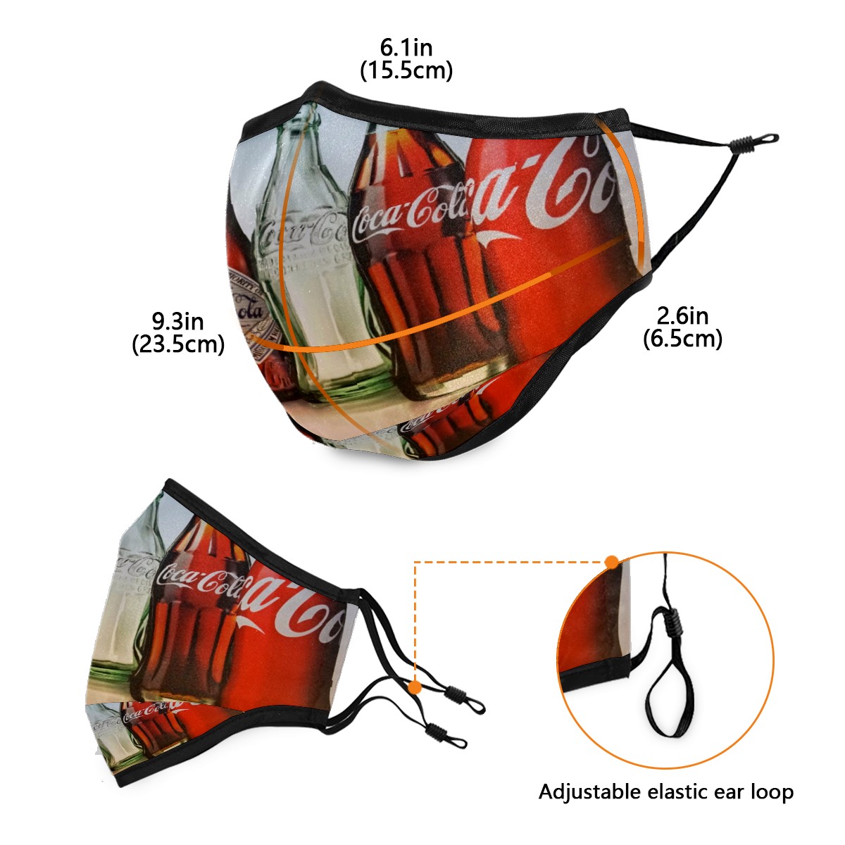 Washable Cloth Face Cover Mask Classic Coca Cola Bottle Vintage Reusable Dust Windproof Mask Face Protection Adjustable Ear Loops & Nose Wire Bandana with 6 Pcs Filter for Women Men Kids