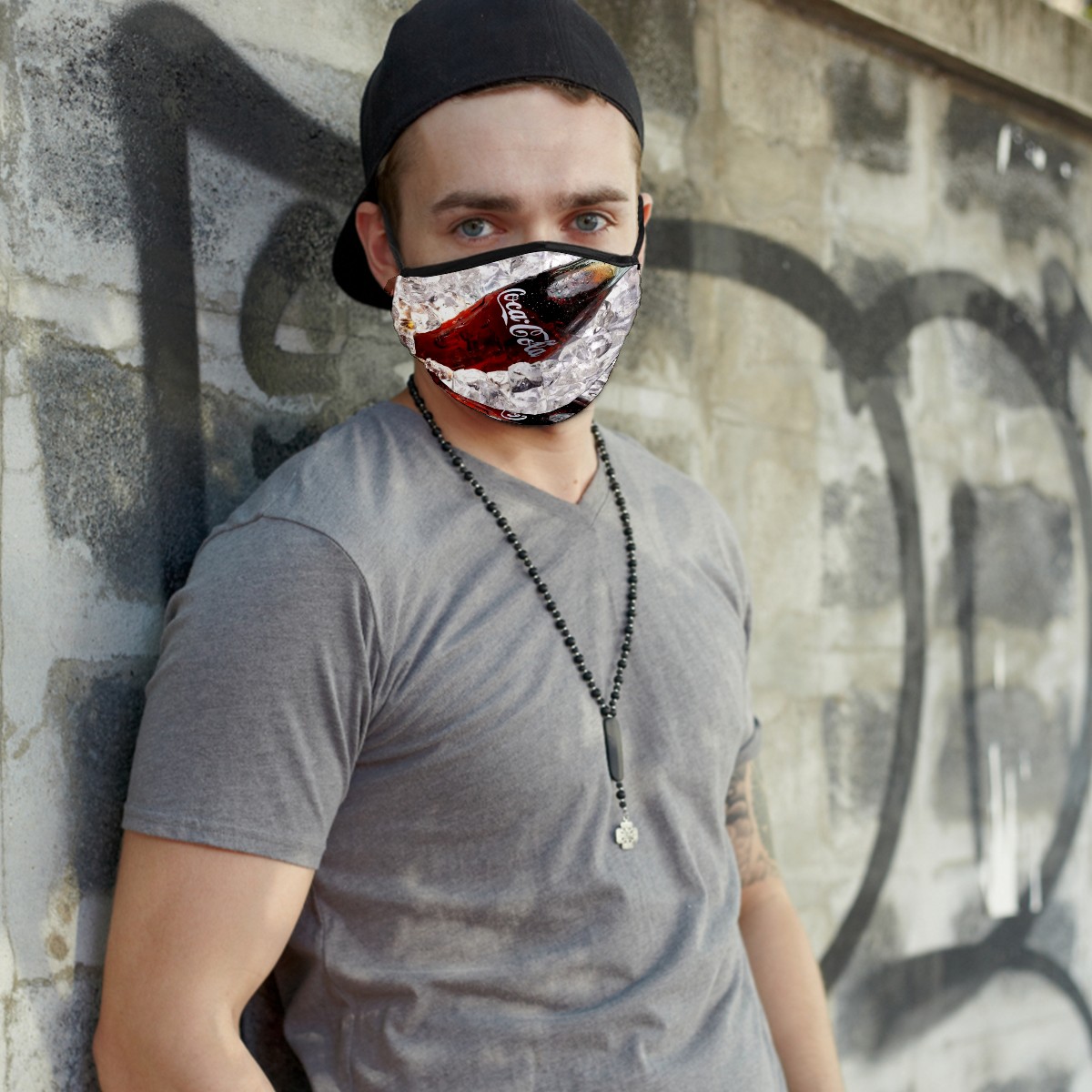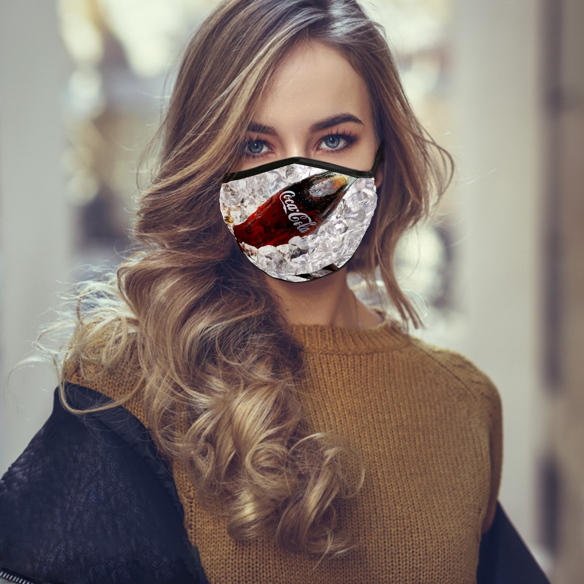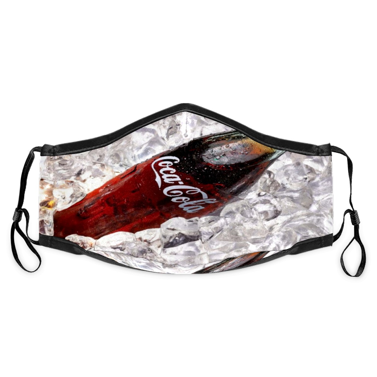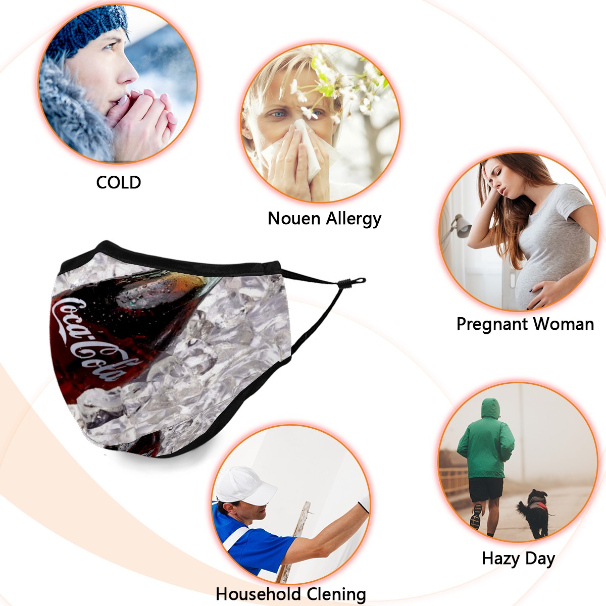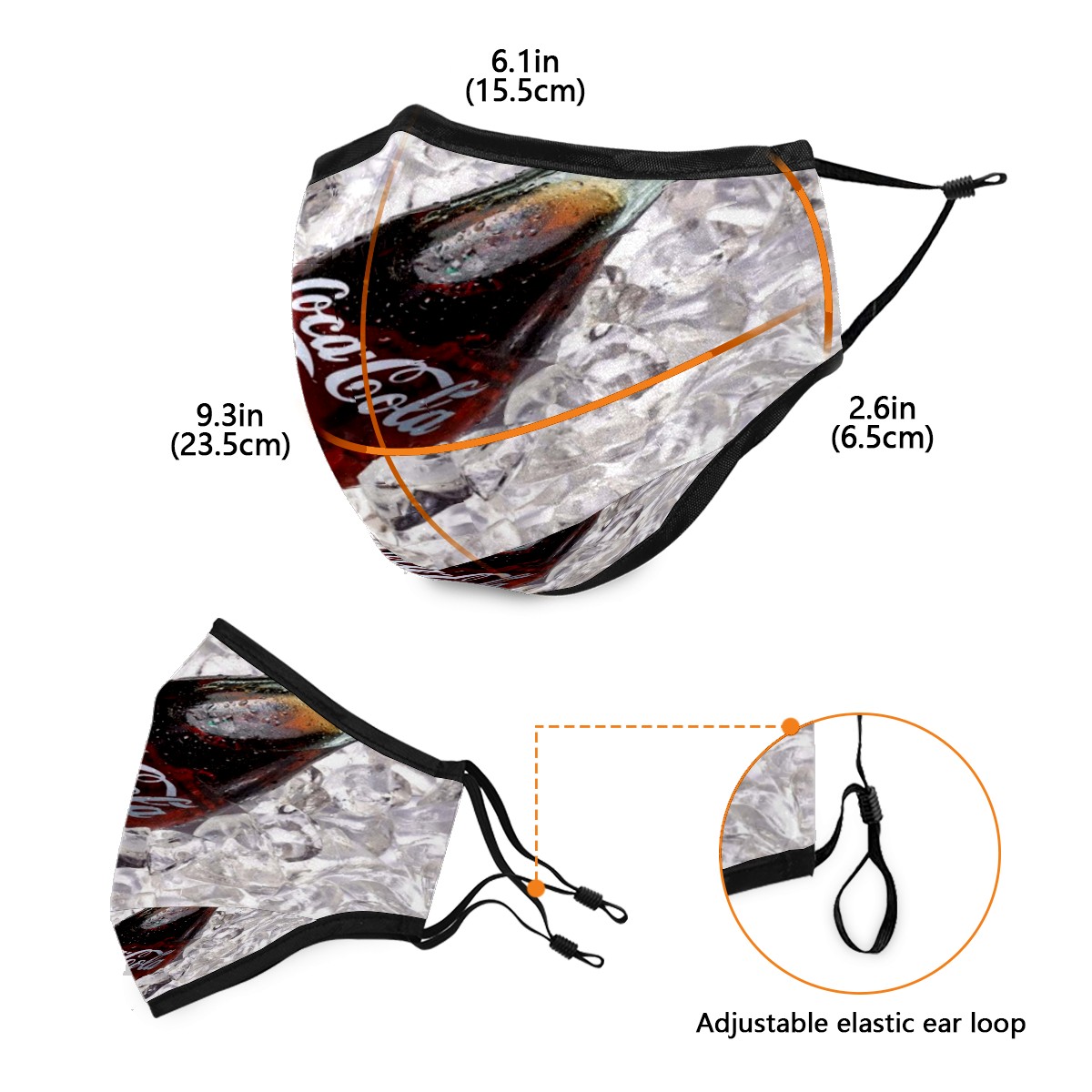 Washable Cloth Face Cover Mask Abstract Coca Cola On Ice Reusable Dust Windproof Mask Face Protection Adjustable Ear Loops & Nose Wire Bandana with 6 Pcs Filter for Women Men Kids