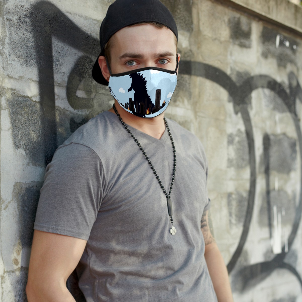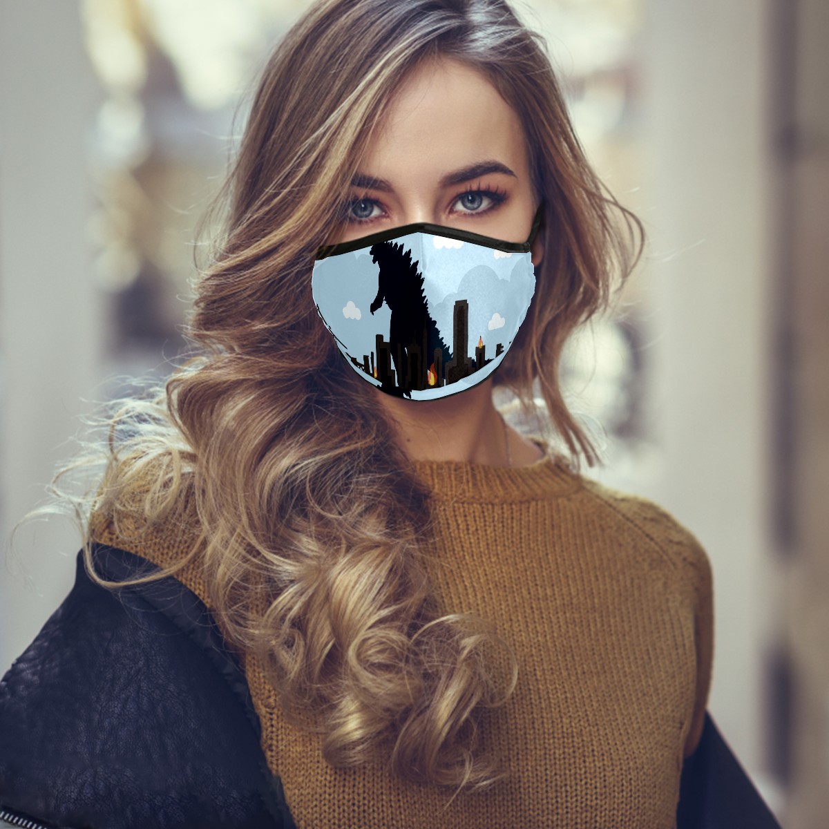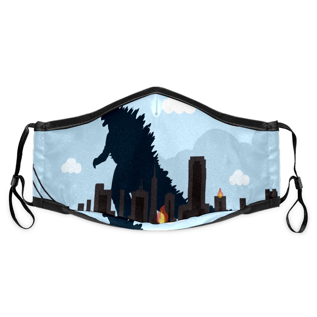 Washable Cloth Face Cover Mask Monster Godzilla Dinosaur Blue Reusable Dust Windproof Mask Face Protection Adjustable Ear Loops & Nose Wire Bandana with 6 Pcs Filter for Women Men Kids