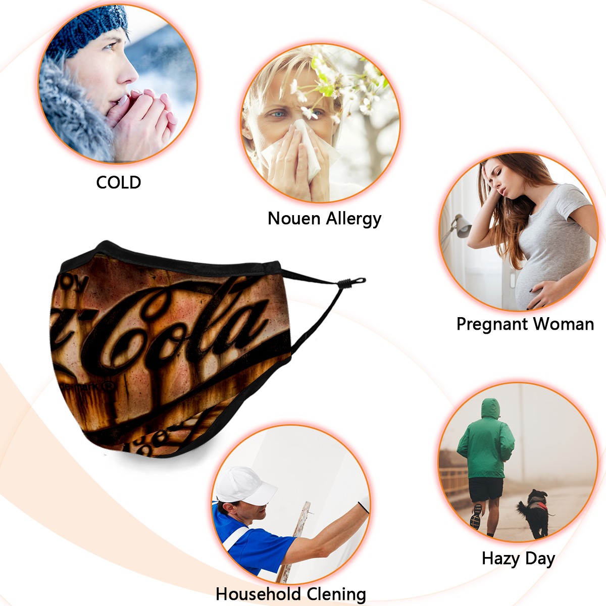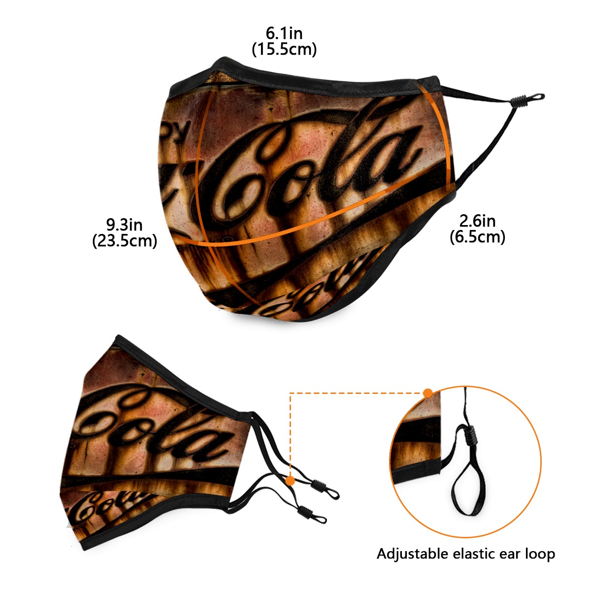 Washable Cloth Face Cover Mask Vintage Coca Cola Classic Reusable Dust Windproof Mask Face Protection Adjustable Ear Loops & Nose Wire Bandana with 6 Pcs Filter for Women Men Kids