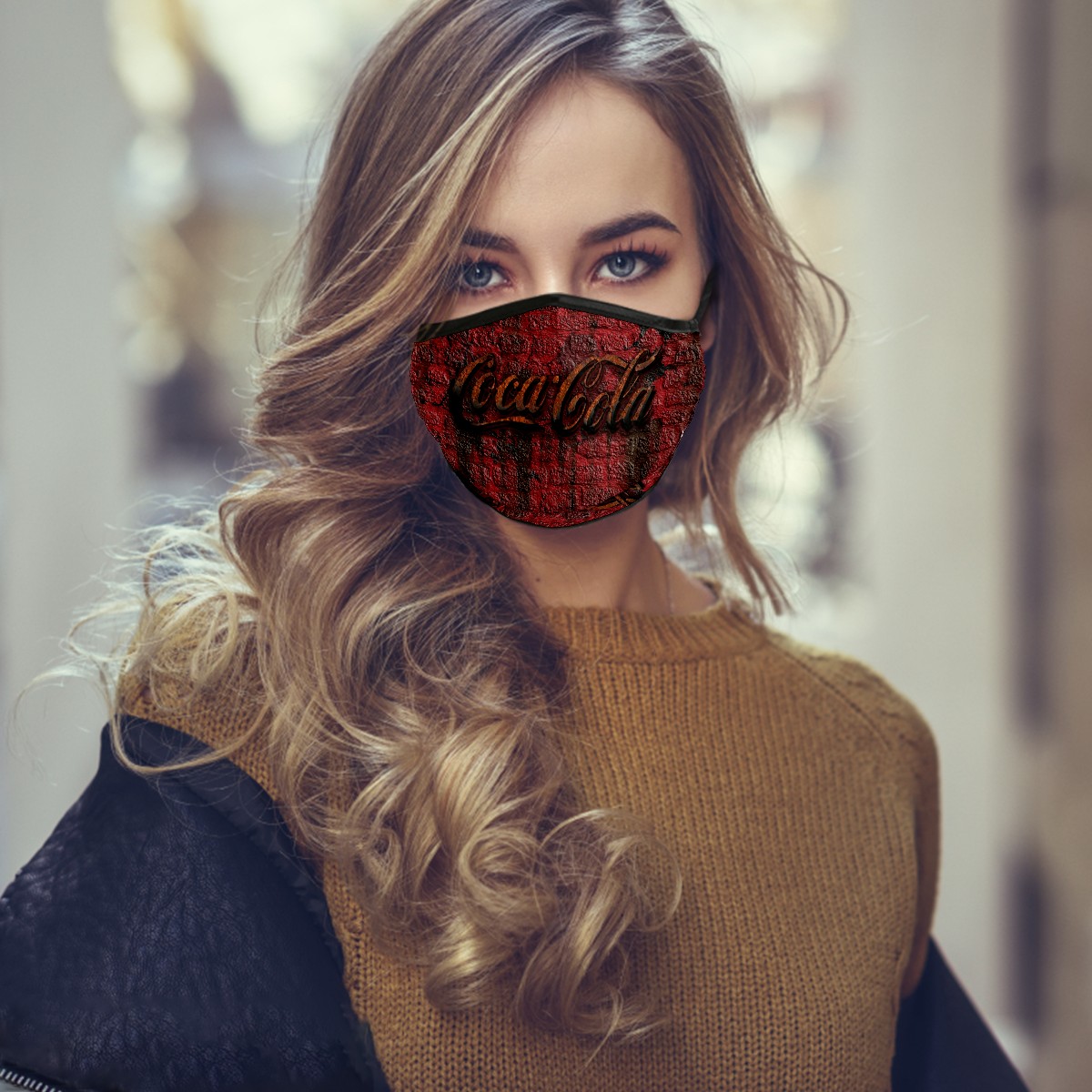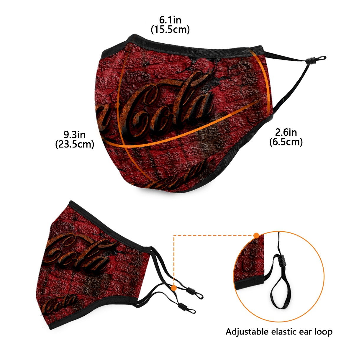 Washable Cloth Face Cover Mask Rustic Coca Cola Retro Reusable Dust Windproof Mask Face Protection Adjustable Ear Loops & Nose Wire Bandana with 6 Pcs Filter for Women Men Kids