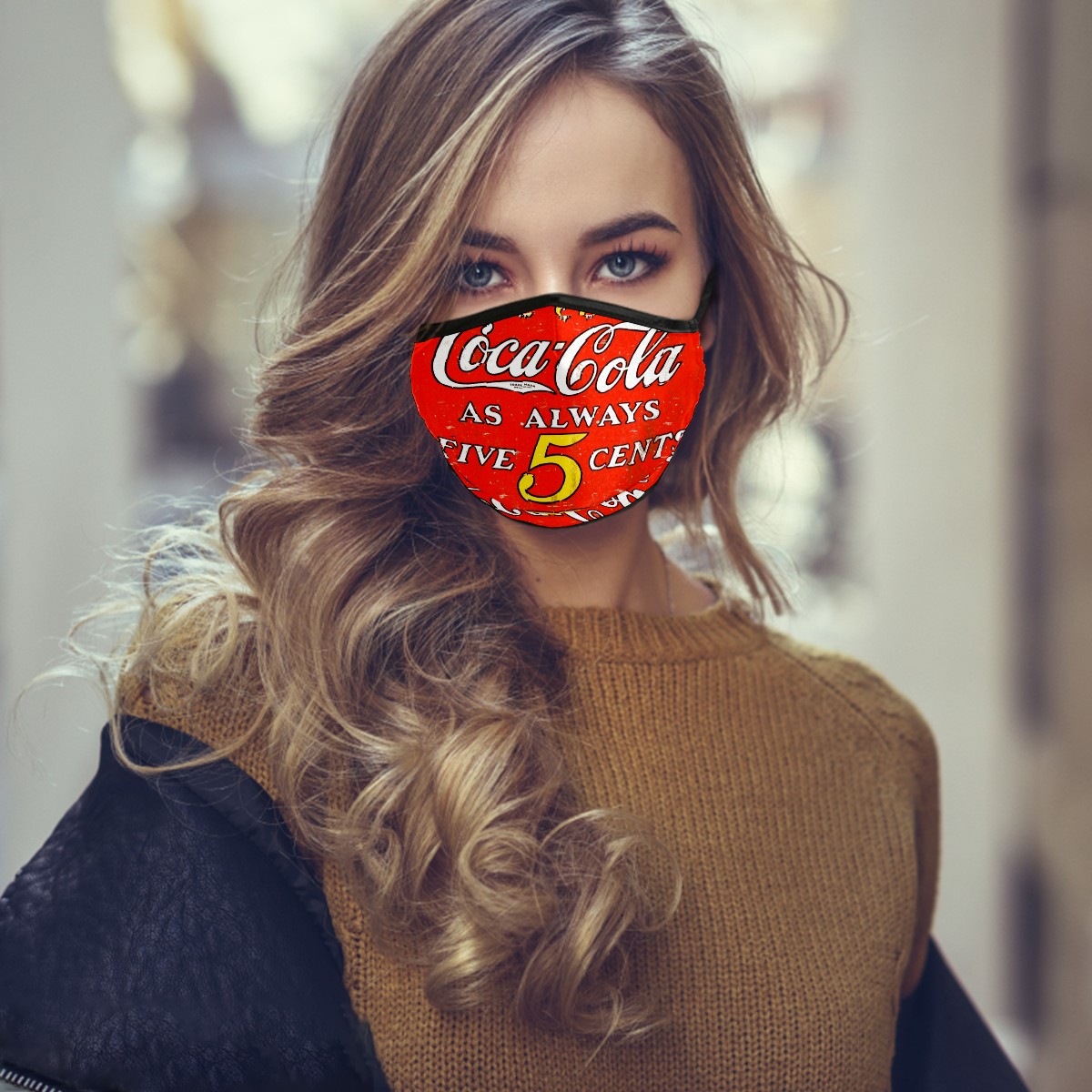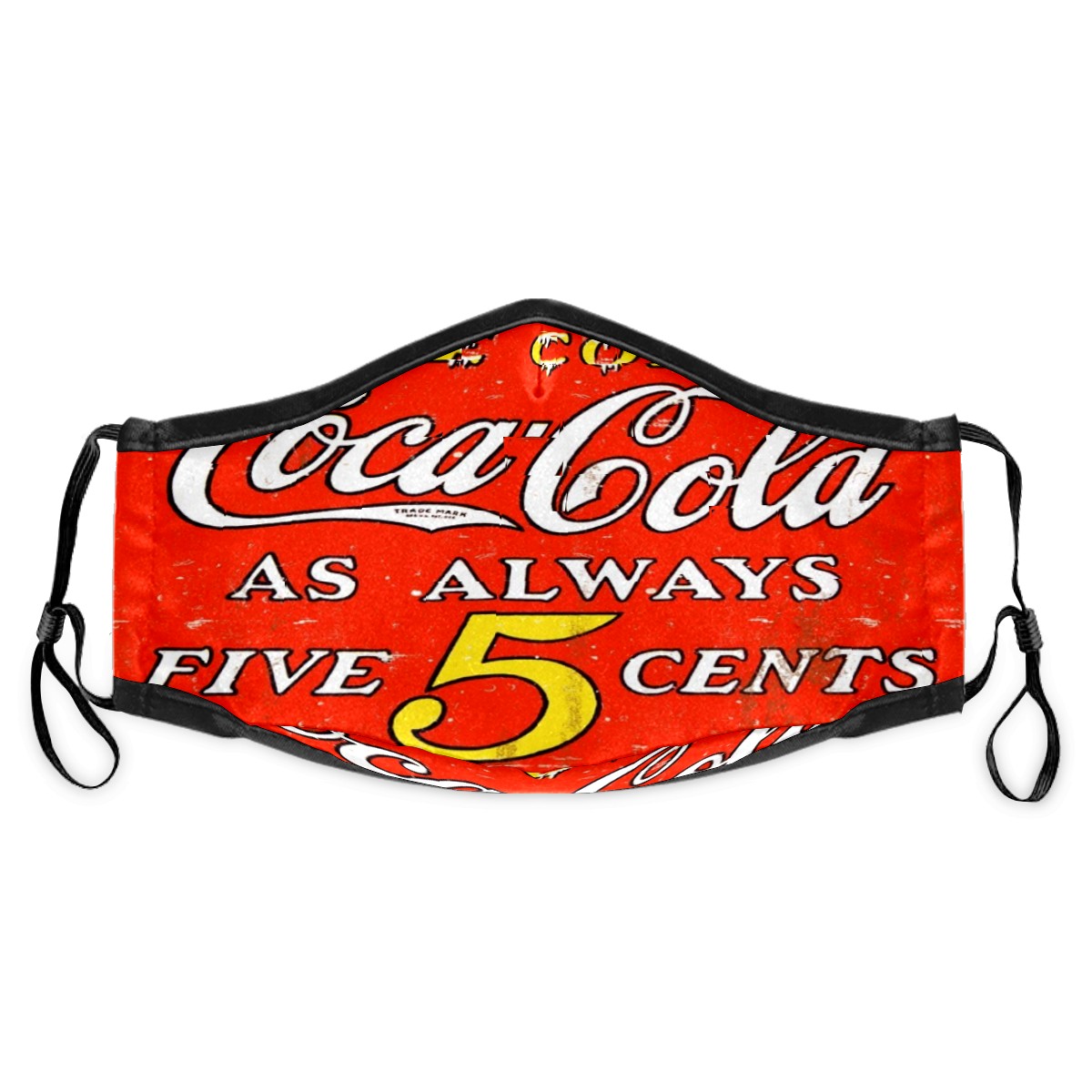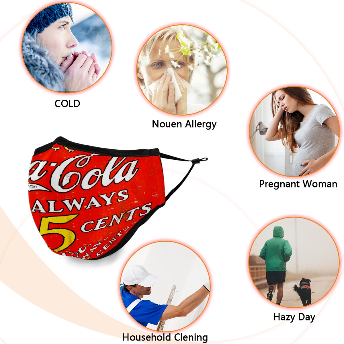 Washable Cloth Face Cover Mask Vintage Coca Cola Sign Retro Reusable Dust Windproof Mask Face Protection Adjustable Ear Loops & Nose Wire Bandana with 6 Pcs Filter for Women Men Kids