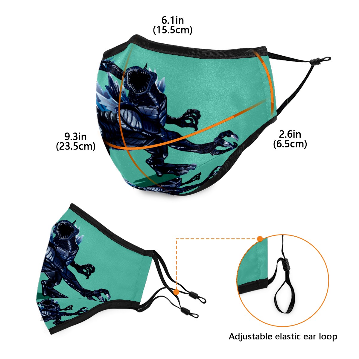 Washable Cloth Face Cover Mask Godzilla Dinosaur Predator Howl Reusable Dust Windproof Mask Face Protection Adjustable Ear Loops & Nose Wire Bandana with 6 Pcs Filter for Women Men Kids