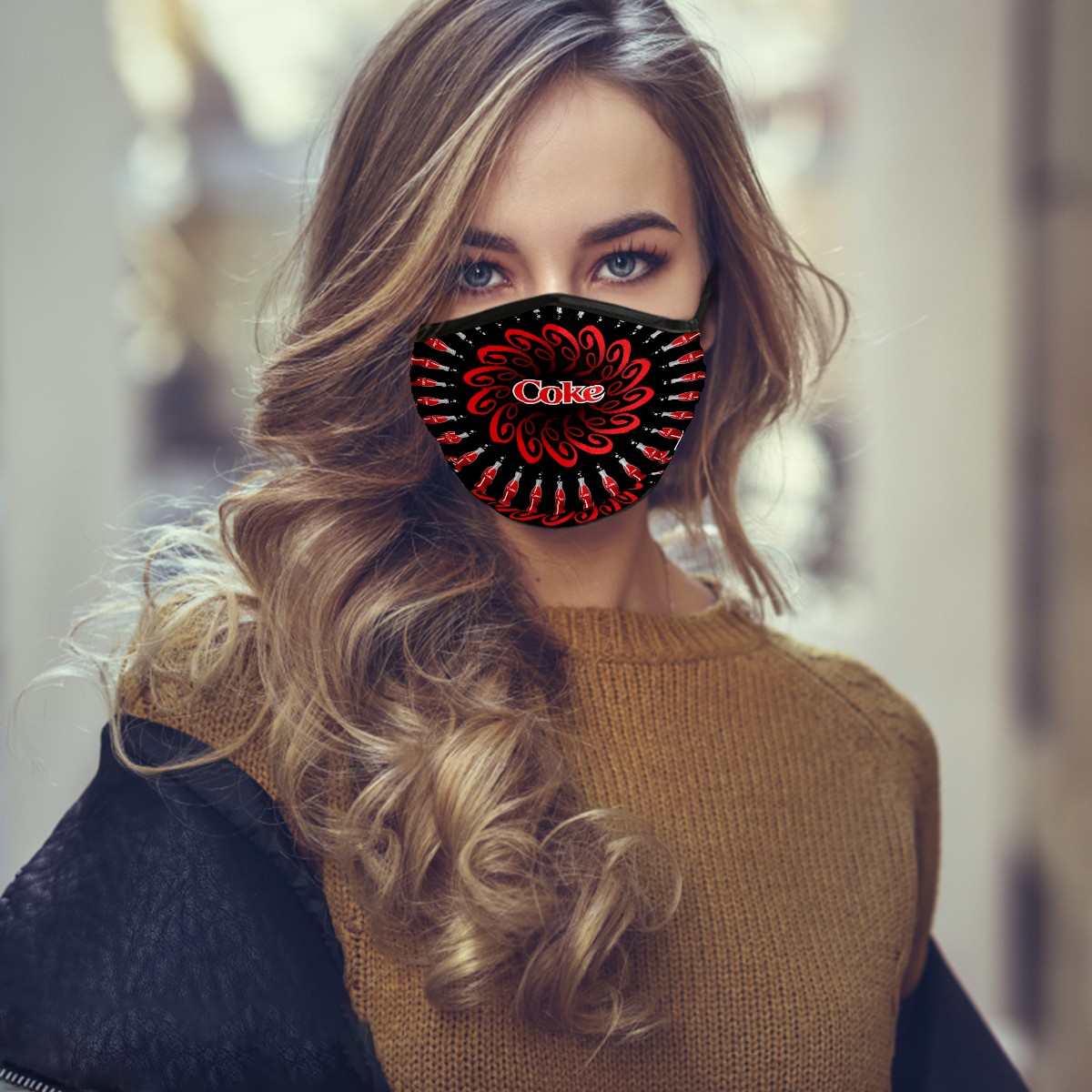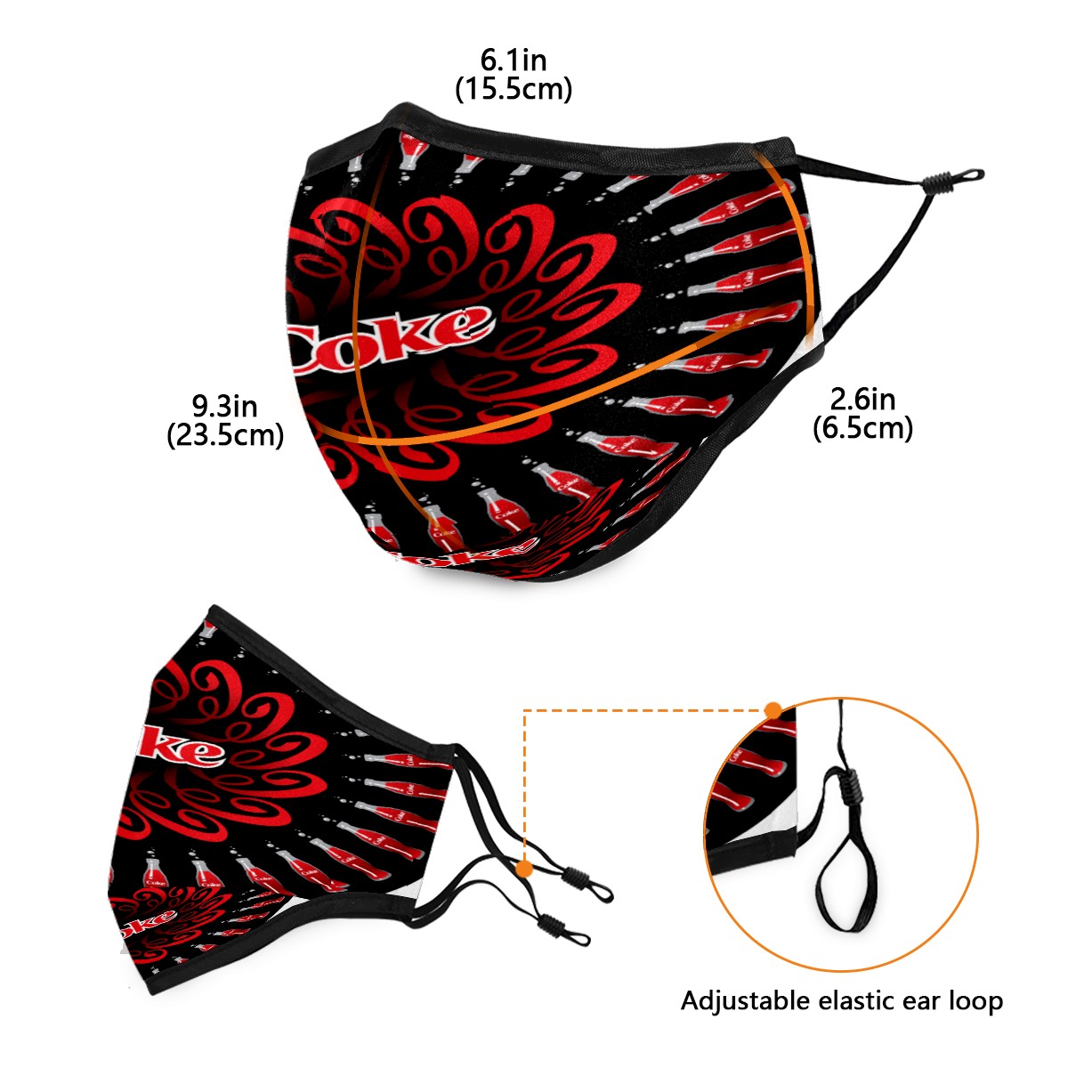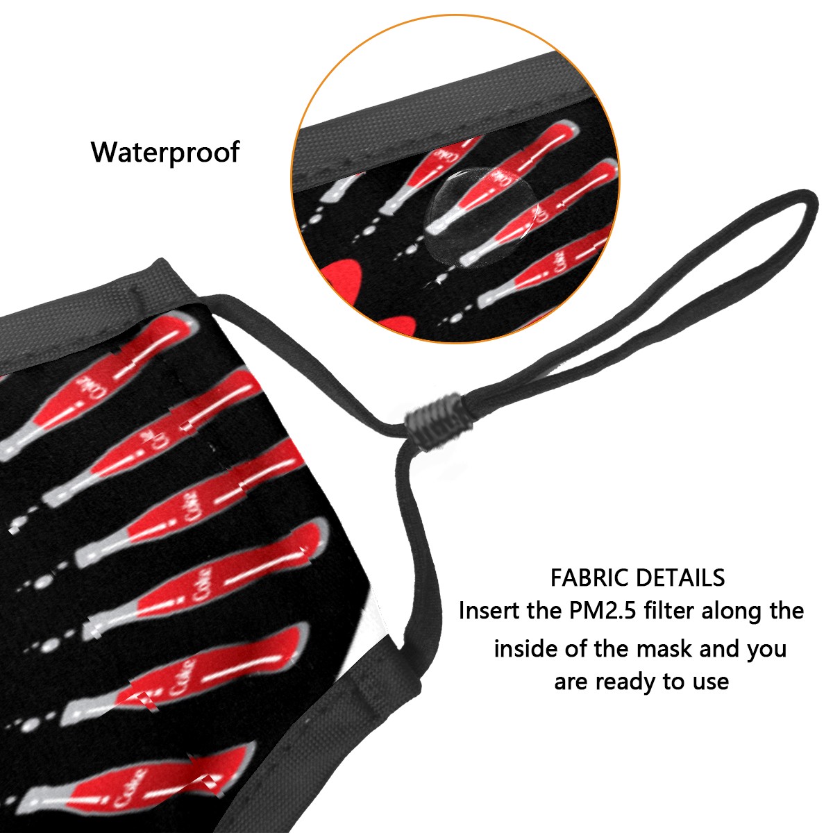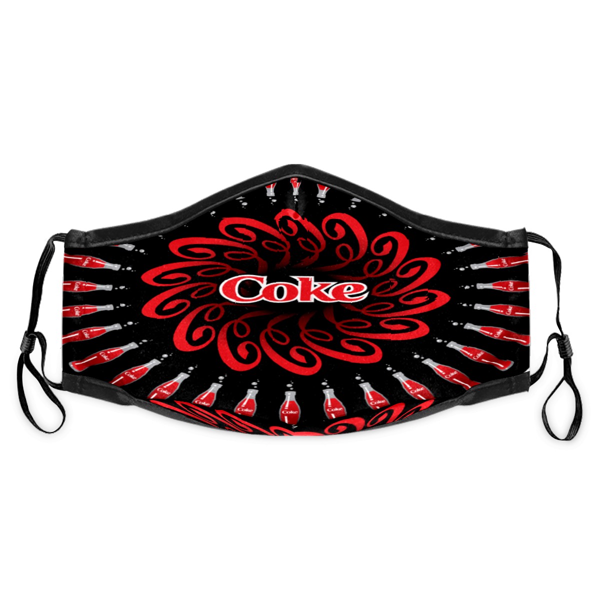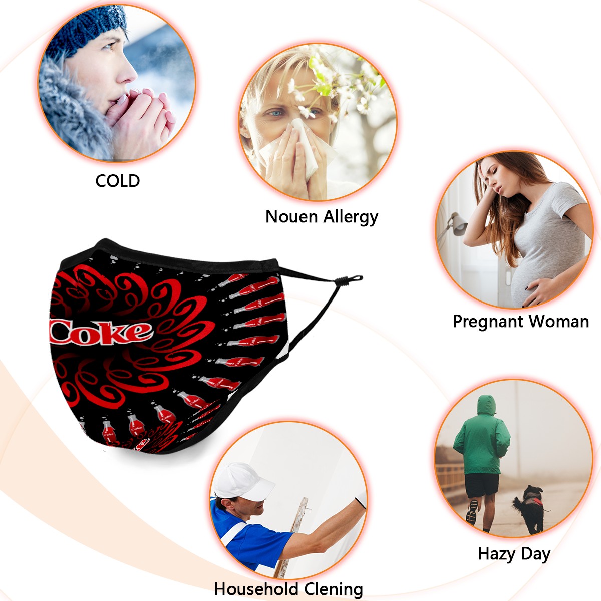 Washable Cloth Face Cover Mask Coke Coca Cola Circle Reusable Dust Windproof Mask Face Protection Adjustable Ear Loops & Nose Wire Bandana with 6 Pcs Filter for Women Men Kids