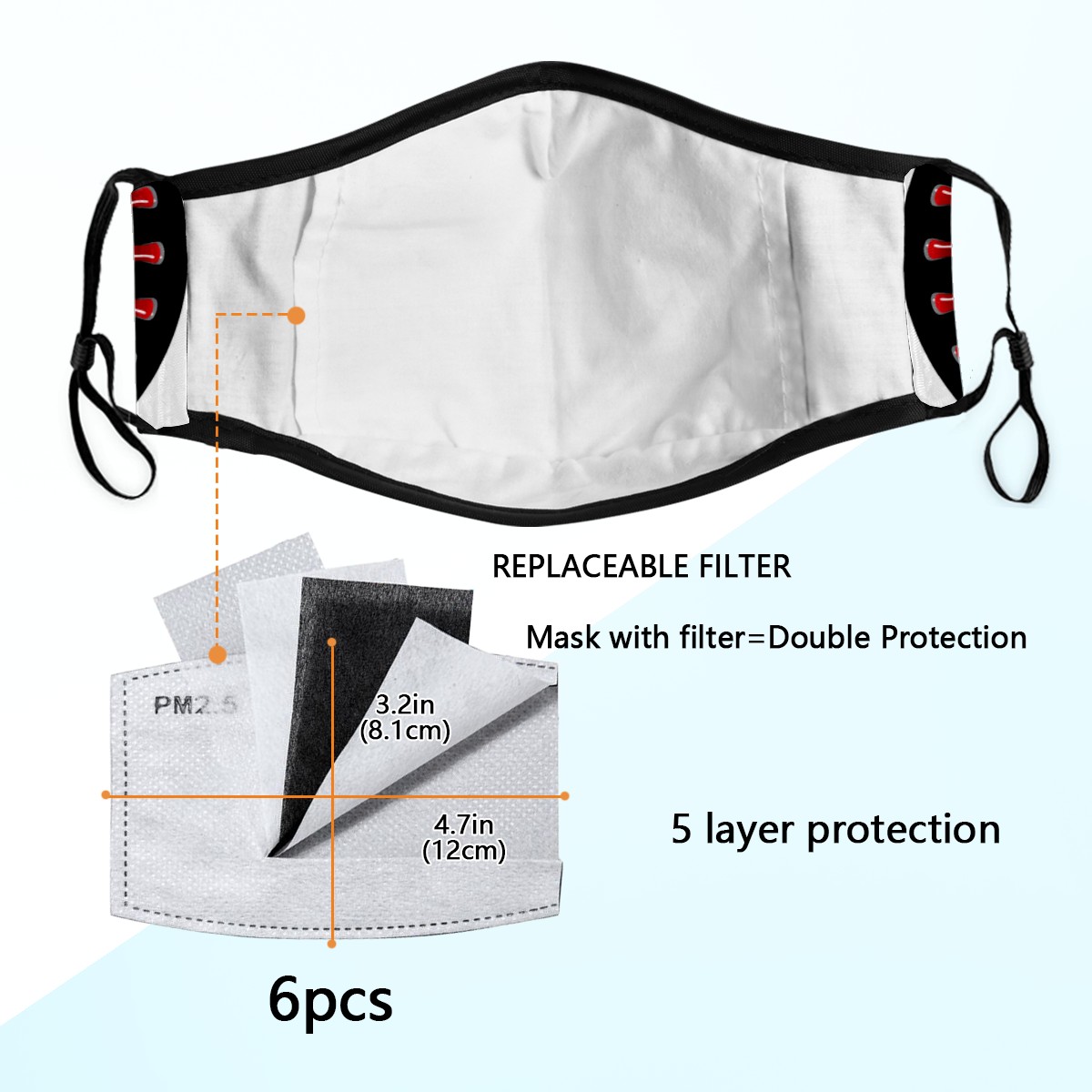 • <p><b>Adjustable ear loops &amp; Nose Wire Face Cover Masks,provide better snug fit and comfort for Men/Women/Family/Friends/Boys/Girls/Kids. Comfortable,Washable and reusable characteristic bring you convenience in daily use.</b></p> <p></p> <p>Specification of Face mask cover</p> <p><b>Material: outer polyester + inner cotton.</b></p> <p><b>One Size Fits All: 9.3x6.1 inch.</b></p> <p><b>Package includes: one mouth shield with 6pcs filter carbon sheet.Each respirator is crafted with five layers.</b></p> <p>Print: High Quality Printing.</p> <p></p> <p>Features of Face Covering</p> <p>Washable.Easy to Clean.</p> <p><b>Adjustable ear loops &amp; Nose Wire.</b></p> <p>Lightweight,durable and especially safe</p> <p>Ideal Gift: Our dustproof shield cute patterns and a variety of colors, perfect gift for your family, friends,colleague and husband/wife in thanksgiving, Christmas, new year and birthday.&nbsp;</p> <p>Occasion: Our Popularity and personality face masks suitable for sport, school,shopping, hiking,cycling,fishing, surfing skiing,party, daily life using and other indoor/outdoor activities.</p> <p>we value our customers and hope you enjoy a pleasant shopping experience!If you have any questions, please feel free to contact us.</p>