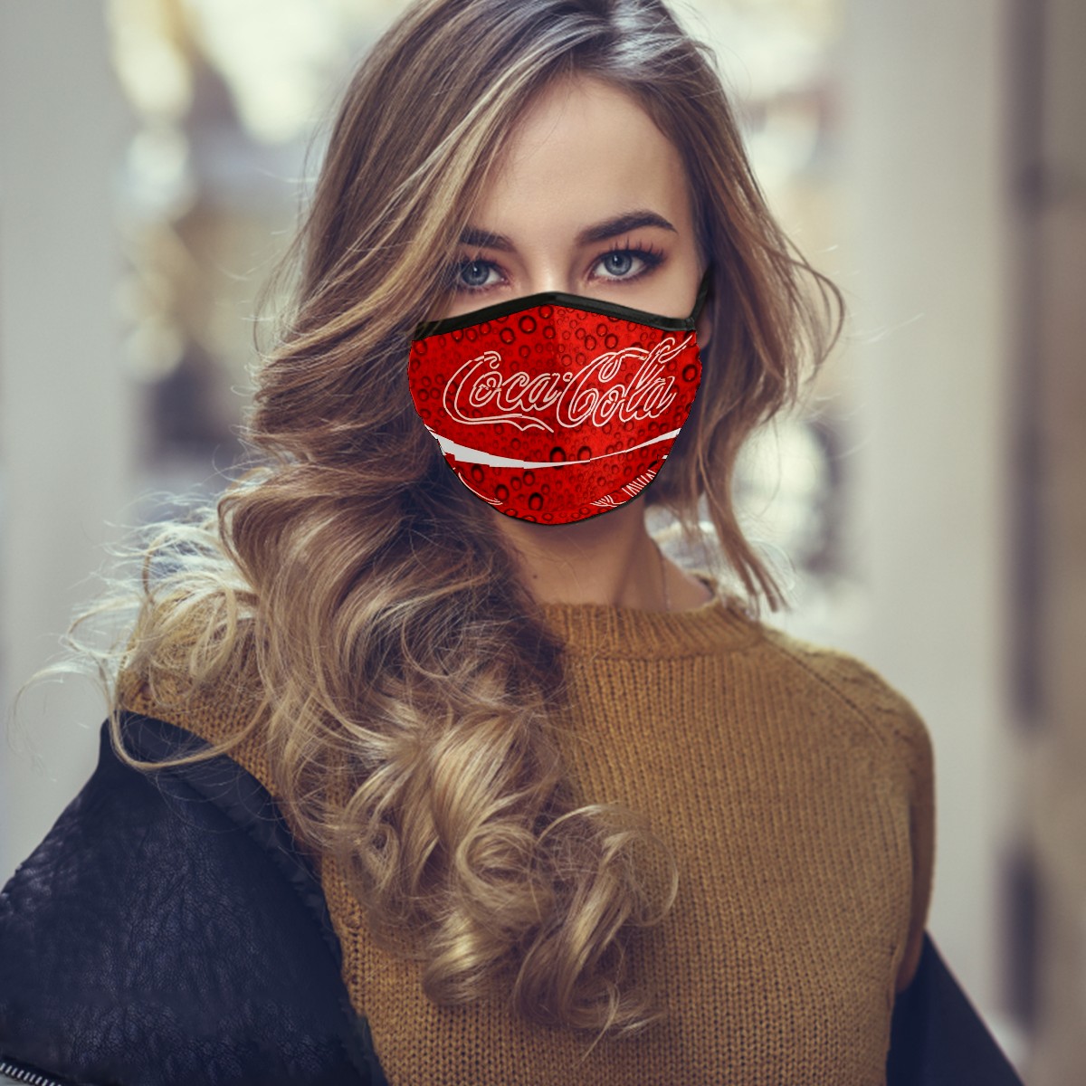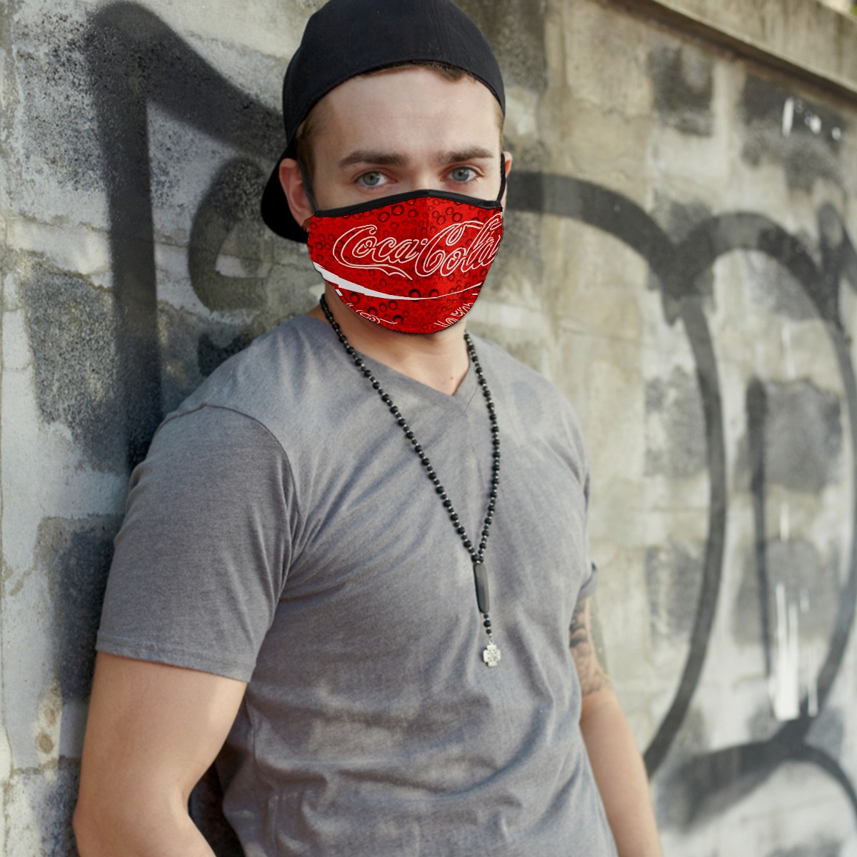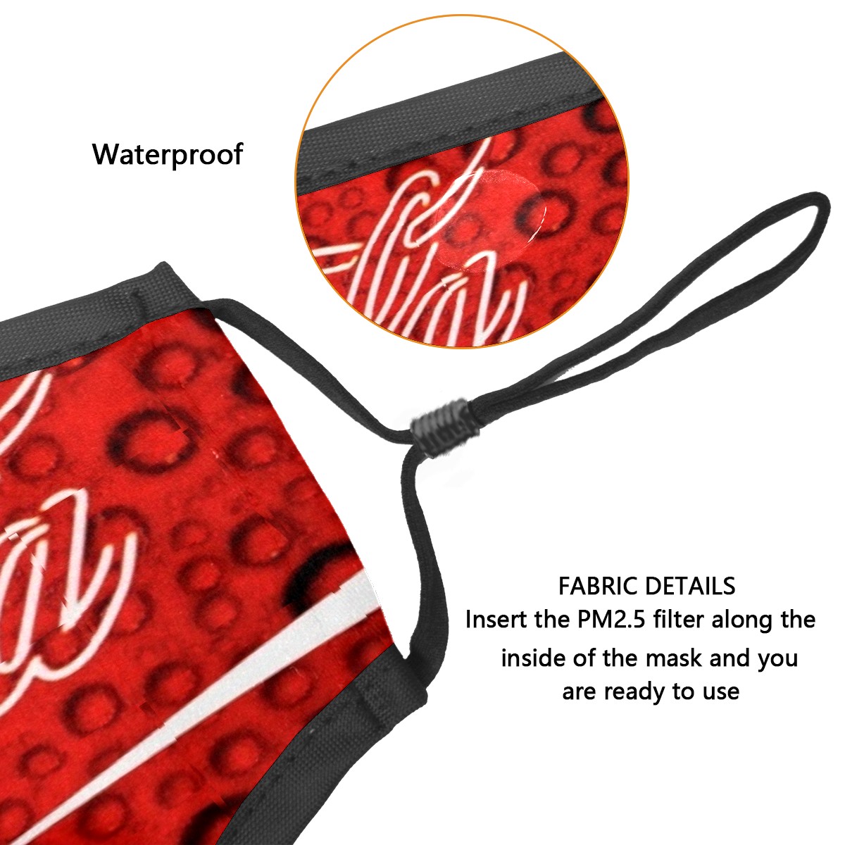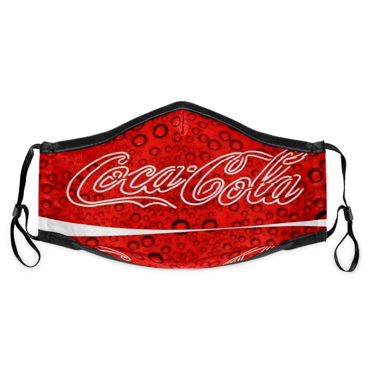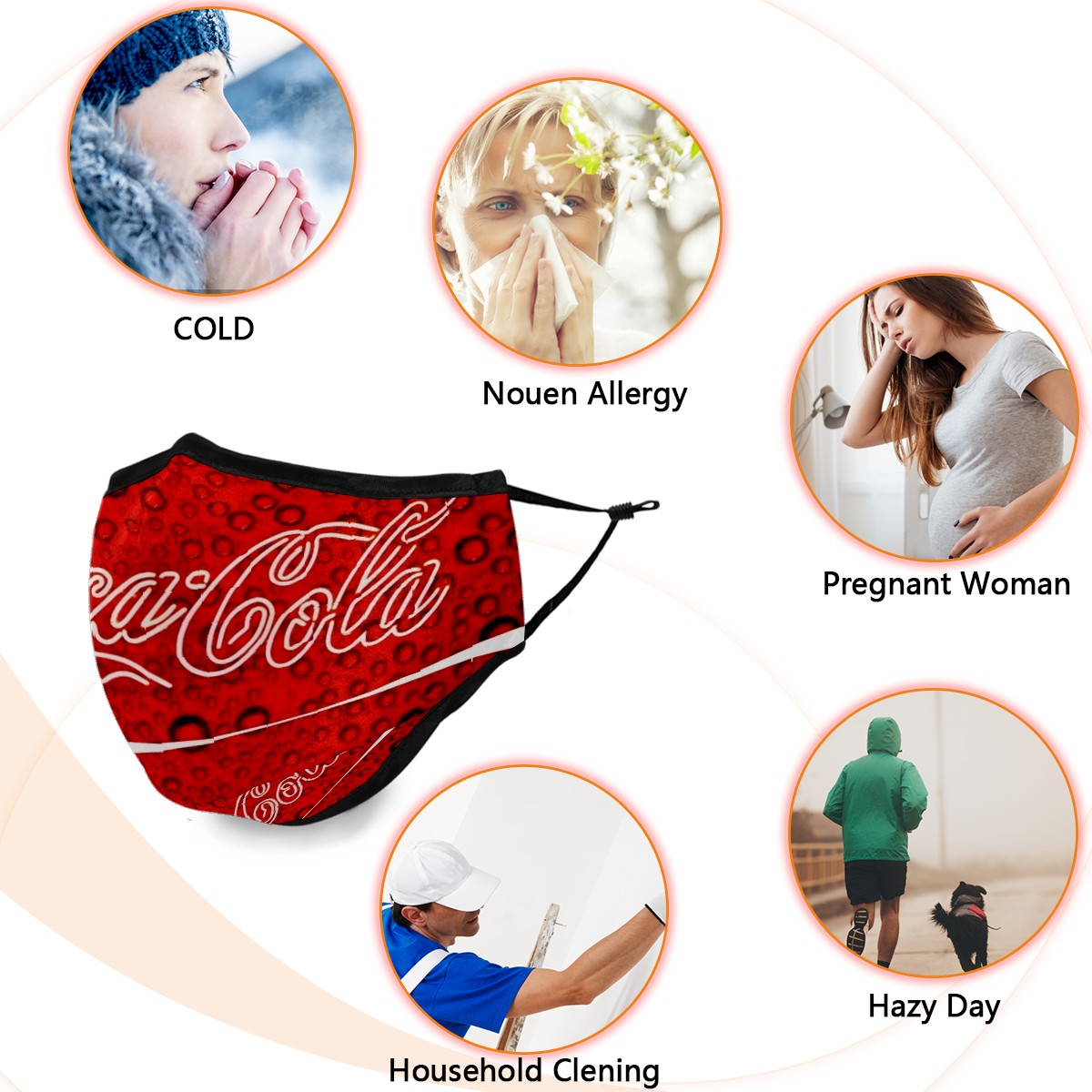Washable Cloth Face Cover Mask Coca Cola Reusable Dust Windproof Mask Face Protection Adjustable Ear Loops & Nose Wire Bandana with 6 Pcs Filter for Women Men Kids