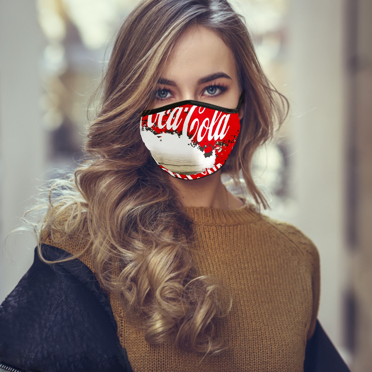 Washable Cloth Face Cover Mask Coca Cola On Wood Reusable Dust Windproof Mask Face Protection Adjustable Ear Loops & Nose Wire Bandana with 6 Pcs Filter for Women Men Kids