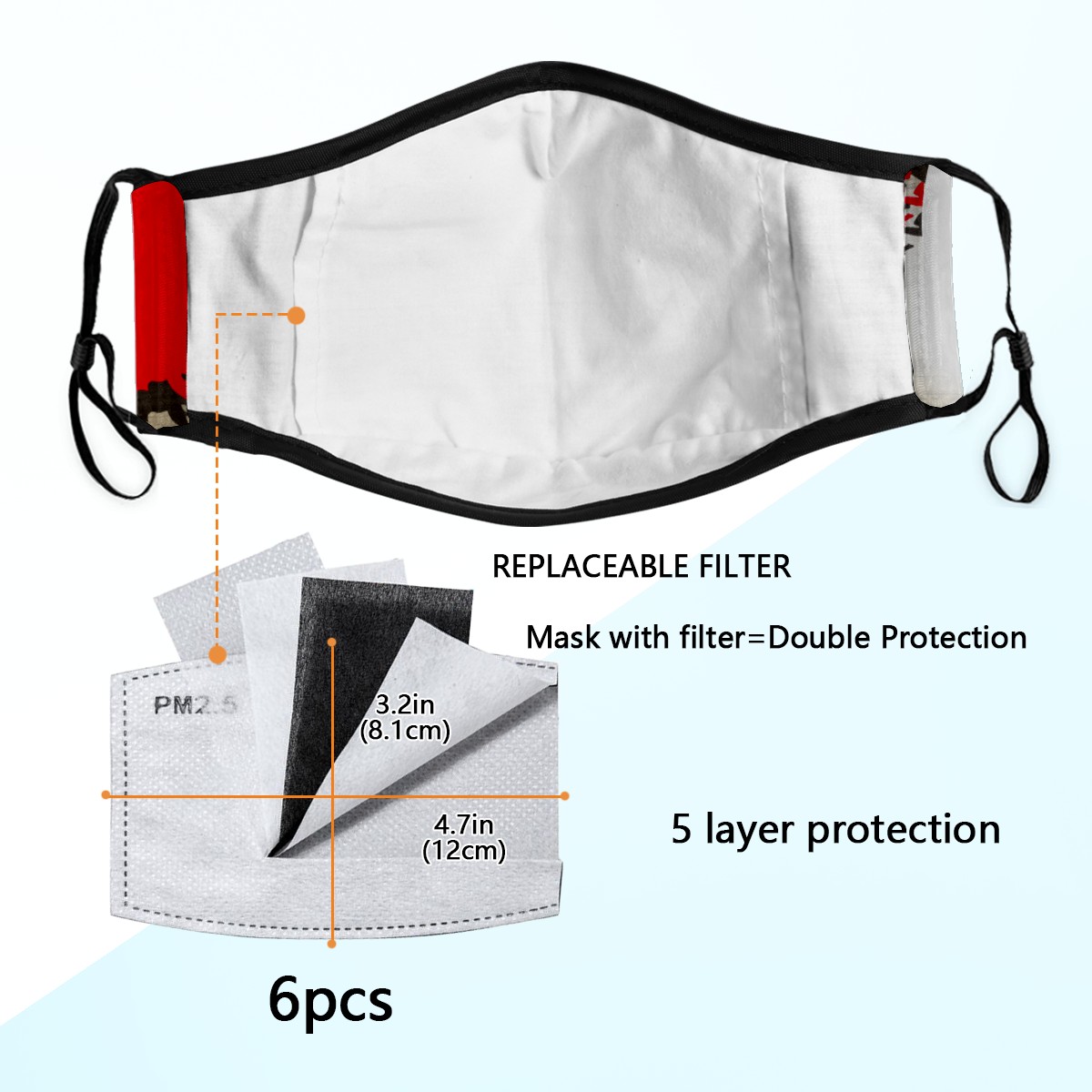 • <p><b>Adjustable ear loops &amp; Nose Wire Face Cover Masks,provide better snug fit and comfort for Men/Women/Family/Friends/Boys/Girls/Kids. Comfortable,Washable and reusable characteristic bring you convenience in daily use.</b></p> <p></p> <p>Specification of Face mask cover</p> <p><b>Material: outer polyester + inner cotton.</b></p> <p><b>One Size Fits All: 9.3x6.1 inch.</b></p> <p><b>Package includes: one mouth shield with 6pcs filter carbon sheet.Each respirator is crafted with five layers.</b></p> <p>Print: High Quality Printing.</p> <p></p> <p>Features of Face Covering</p> <p>Washable.Easy to Clean.</p> <p><b>Adjustable ear loops &amp; Nose Wire.</b></p> <p>Lightweight,durable and especially safe</p> <p>Ideal Gift: Our dustproof shield cute patterns and a variety of colors, perfect gift for your family, friends,colleague and husband/wife in thanksgiving, Christmas, new year and birthday.&nbsp;</p> <p>Occasion: Our Popularity and personality face masks suitable for sport, school,shopping, hiking,cycling,fishing, surfing skiing,party, daily life using and other indoor/outdoor activities.</p> <p>we value our customers and hope you enjoy a pleasant shopping experience!If you have any questions, please feel free to contact us.</p>