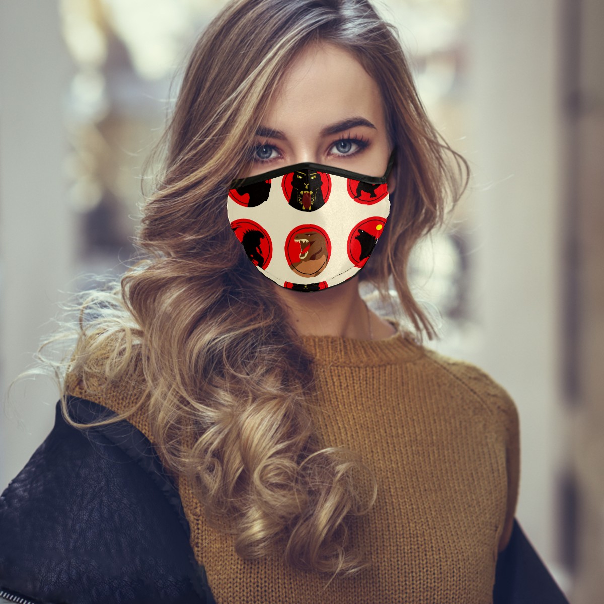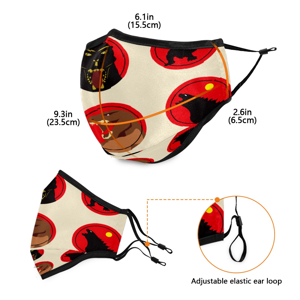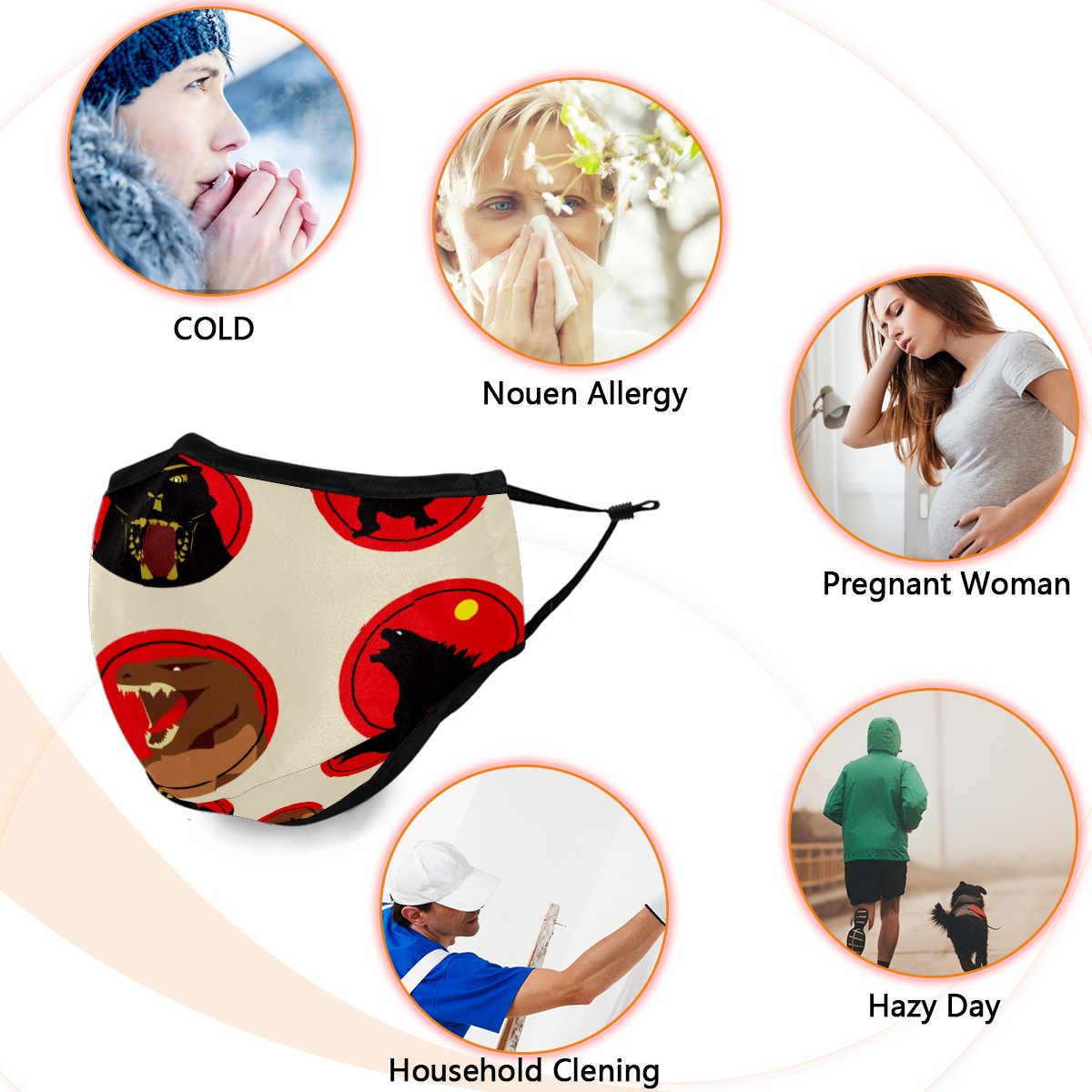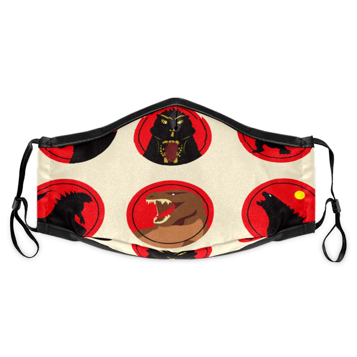Washable Cloth Face Cover Mask Godzilla Dinosaur Icons Reusable Dust Windproof Mask Face Protection Adjustable Ear Loops & Nose Wire Bandana with 6 Pcs Filter for Women Men Kids