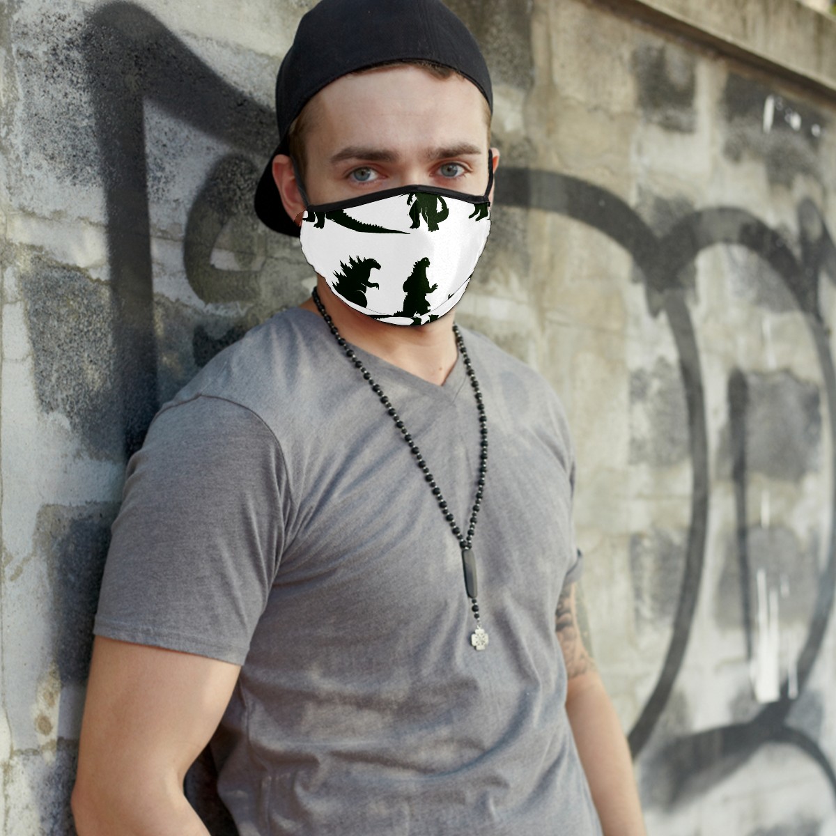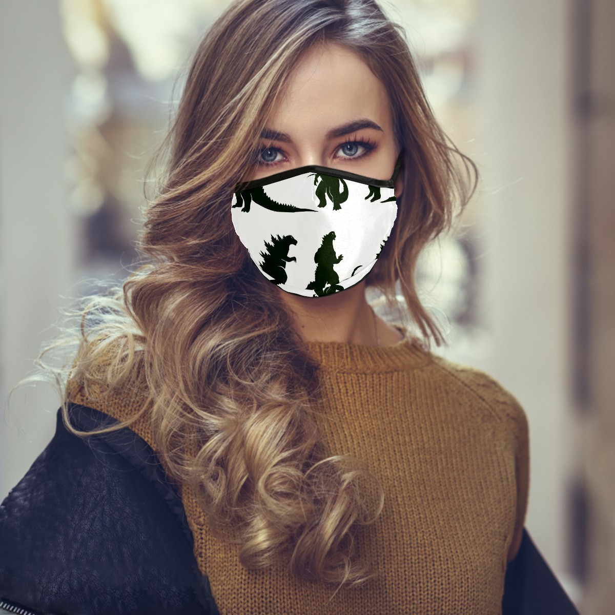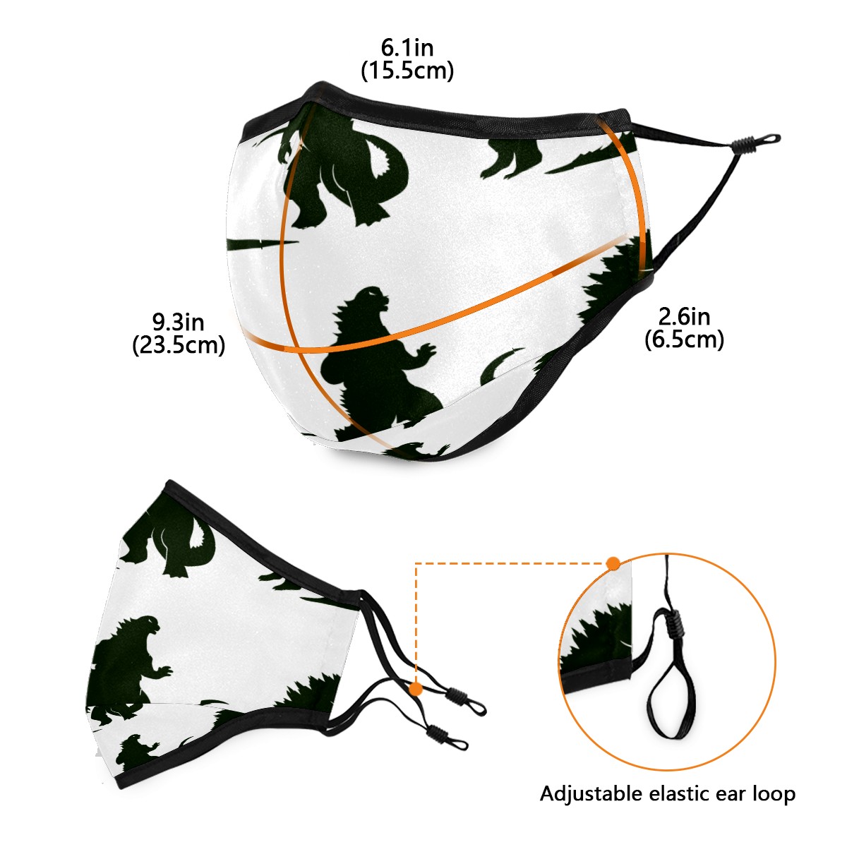 Washable Cloth Face Cover Mask Godzilla Dinosaur Japanese Monster Reusable Dust Windproof Mask Face Protection Adjustable Ear Loops & Nose Wire Bandana with 6 Pcs Filter for Women Men Kids