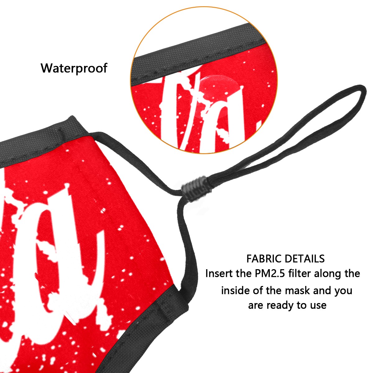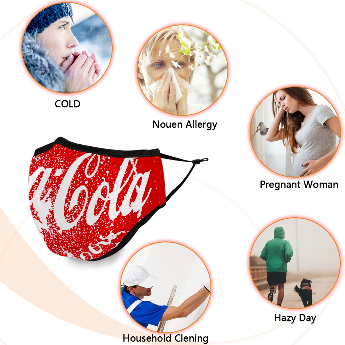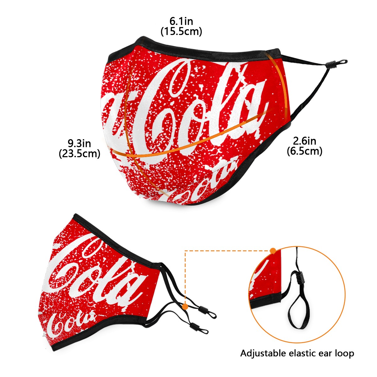 Washable Cloth Face Cover Mask Classic Coca Cola Red Abstract Reusable Dust Windproof Mask Face Protection Adjustable Ear Loops & Nose Wire Bandana with 6 Pcs Filter for Women Men Kids