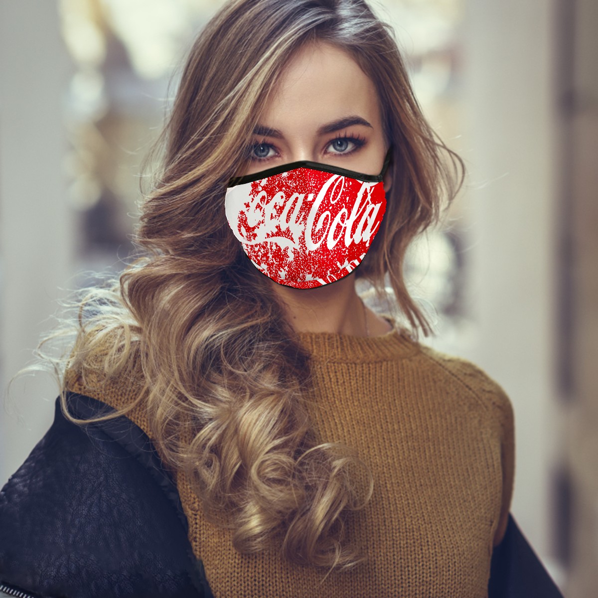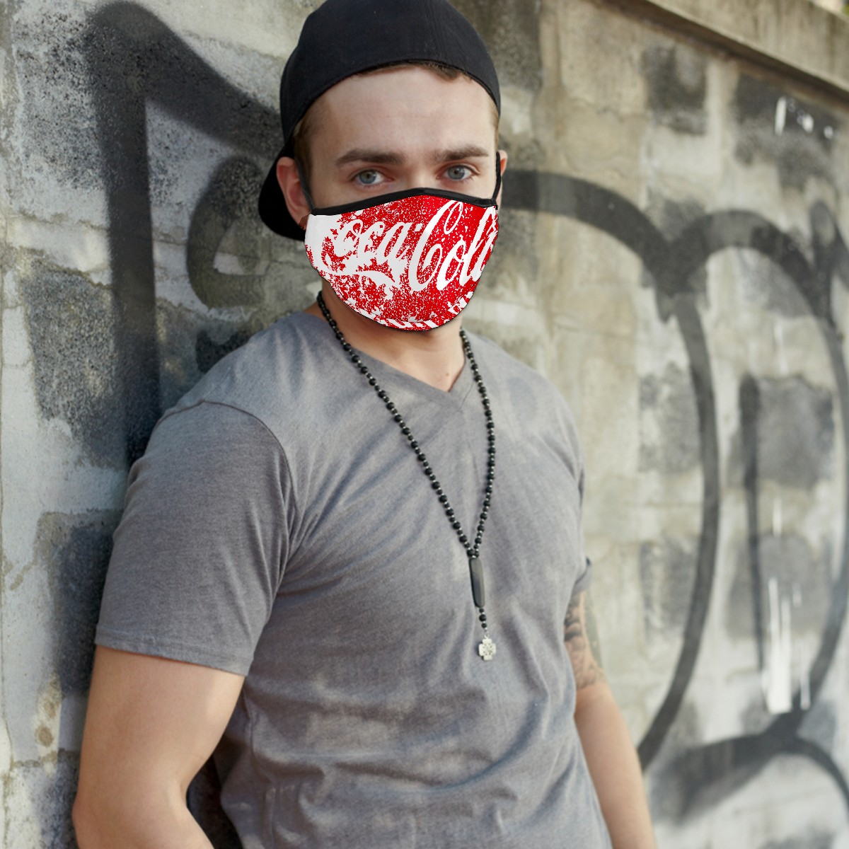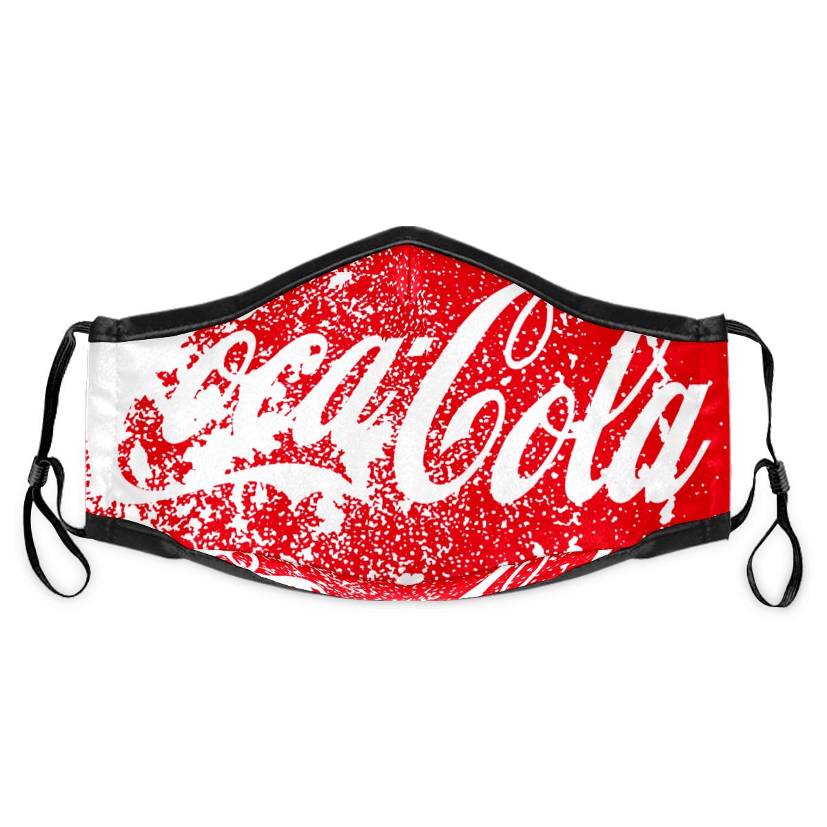 Washable Cloth Face Cover Mask Classic Coca Cola Red Abstract Reusable Dust Windproof Mask Face Protection Adjustable Ear Loops & Nose Wire Bandana with 6 Pcs Filter for Women Men Kids