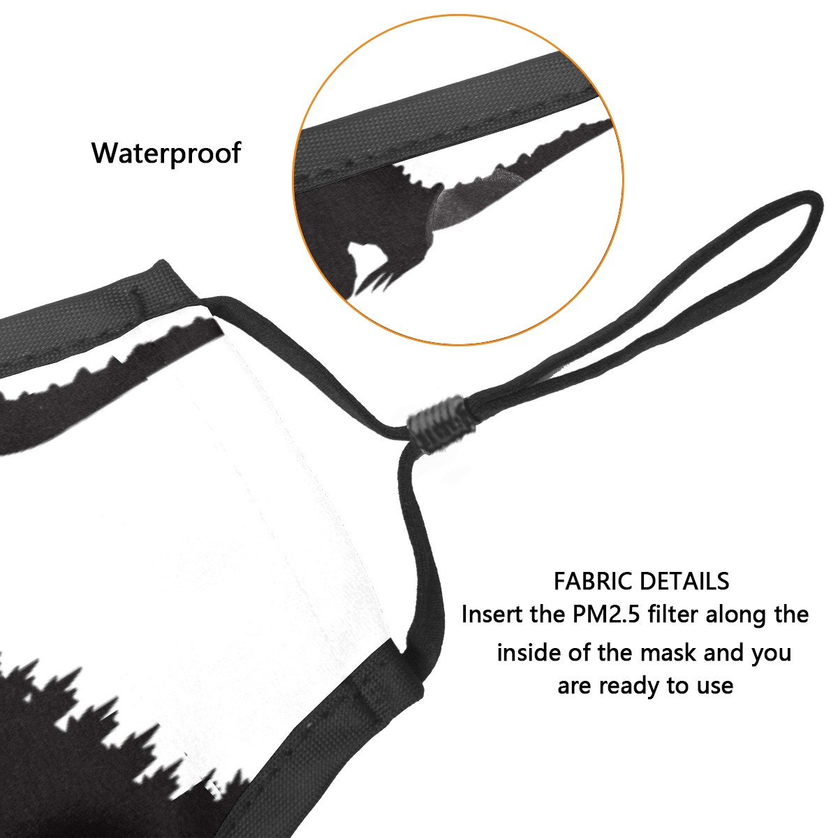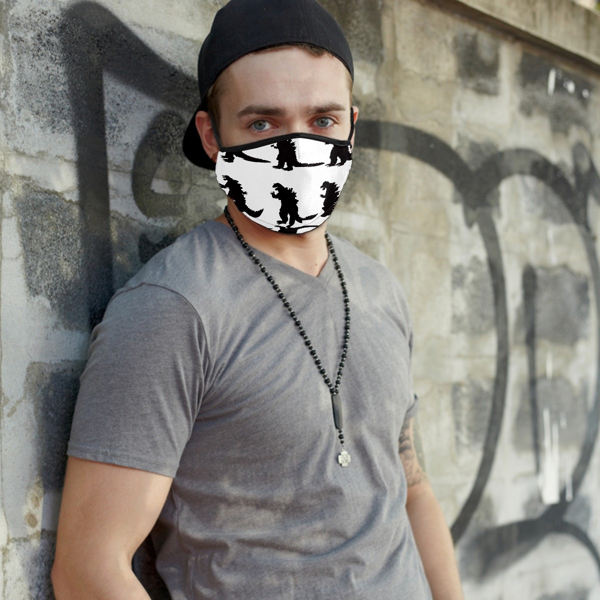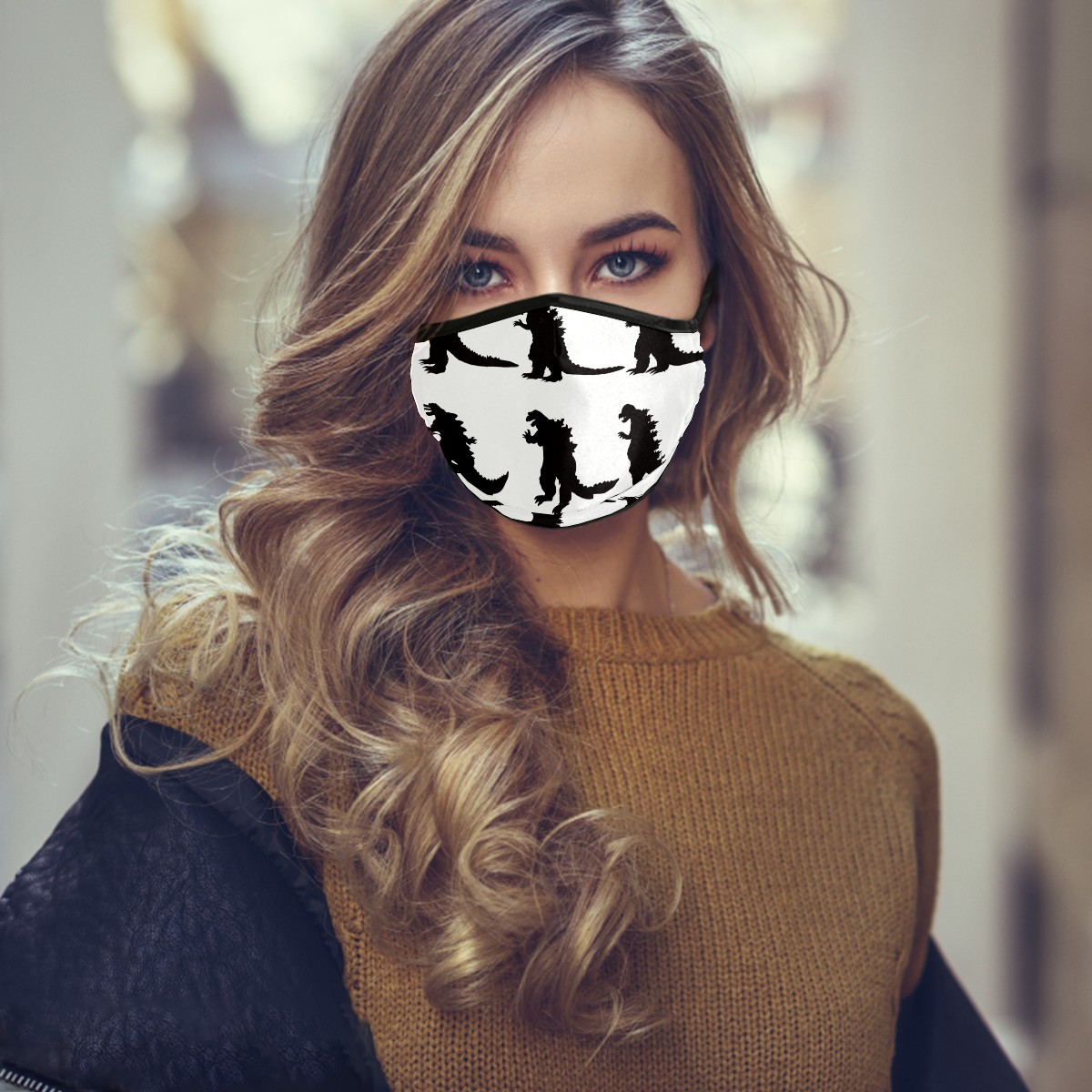 Washable Cloth Face Cover Mask Black Godzilla Dinosaur Silhouette Reusable Dust Windproof Mask Face Protection Adjustable Ear Loops & Nose Wire Bandana with 6 Pcs Filter for Women Men Kids