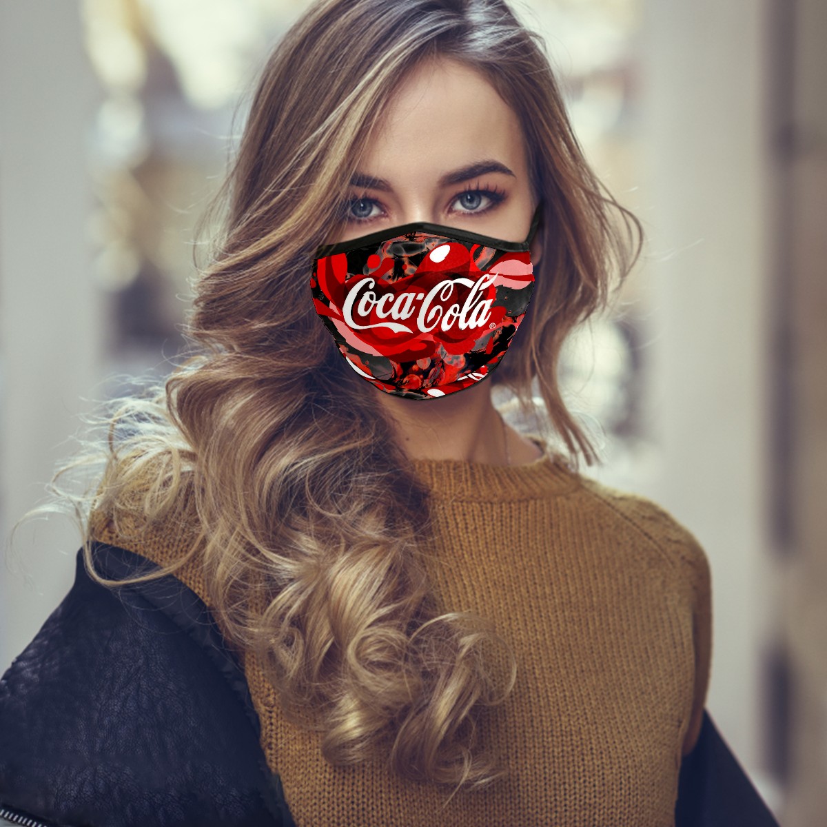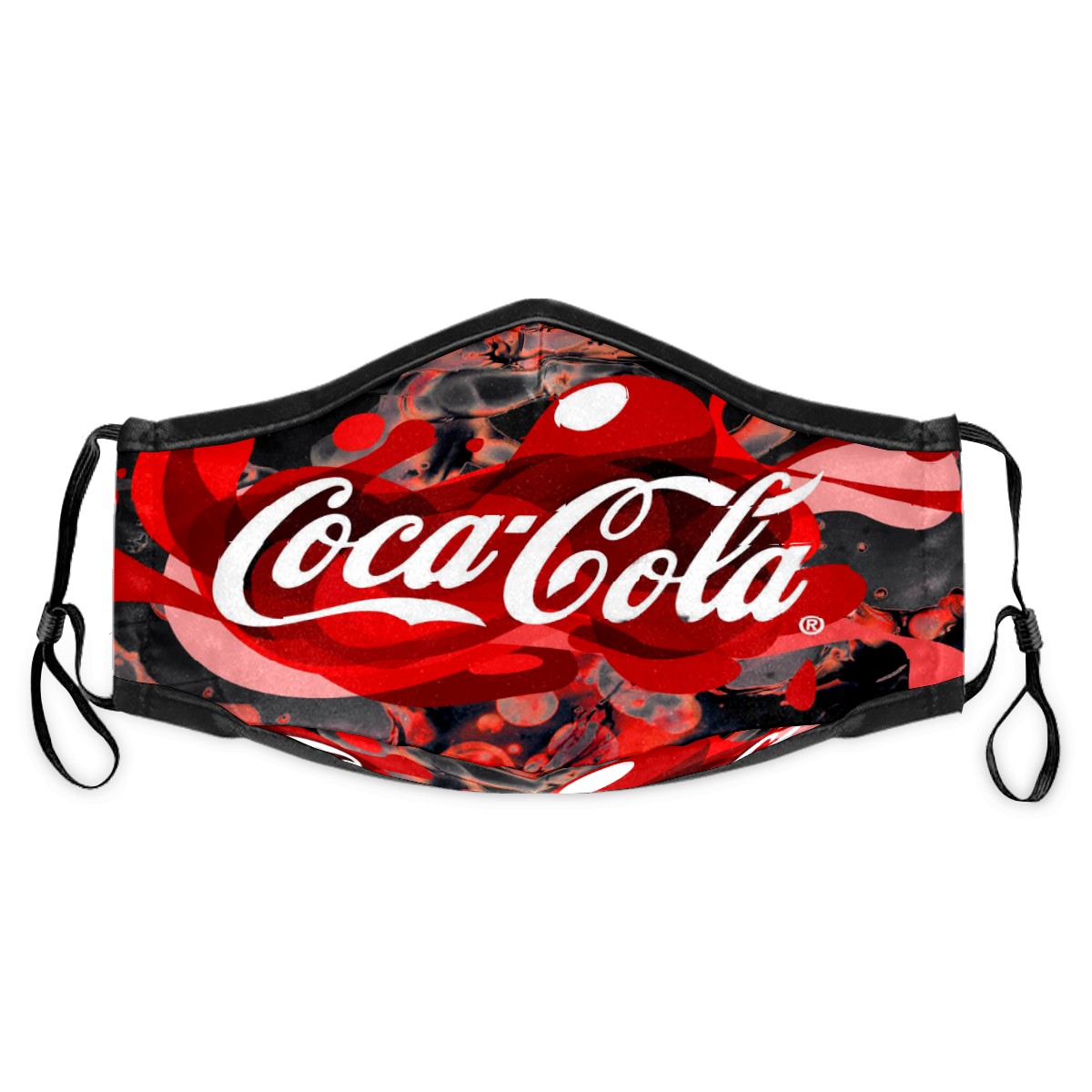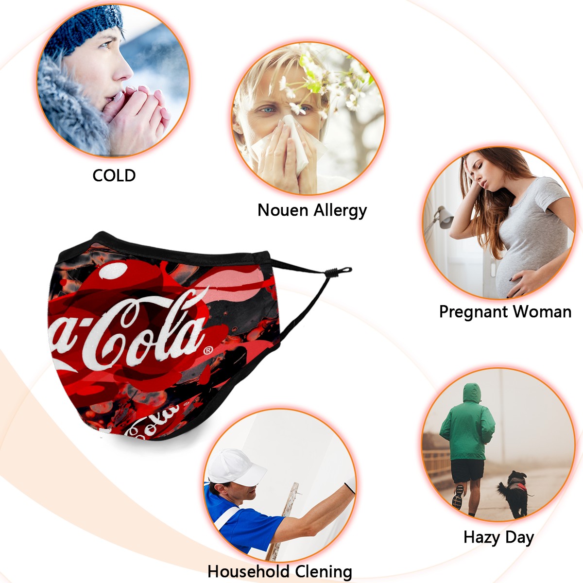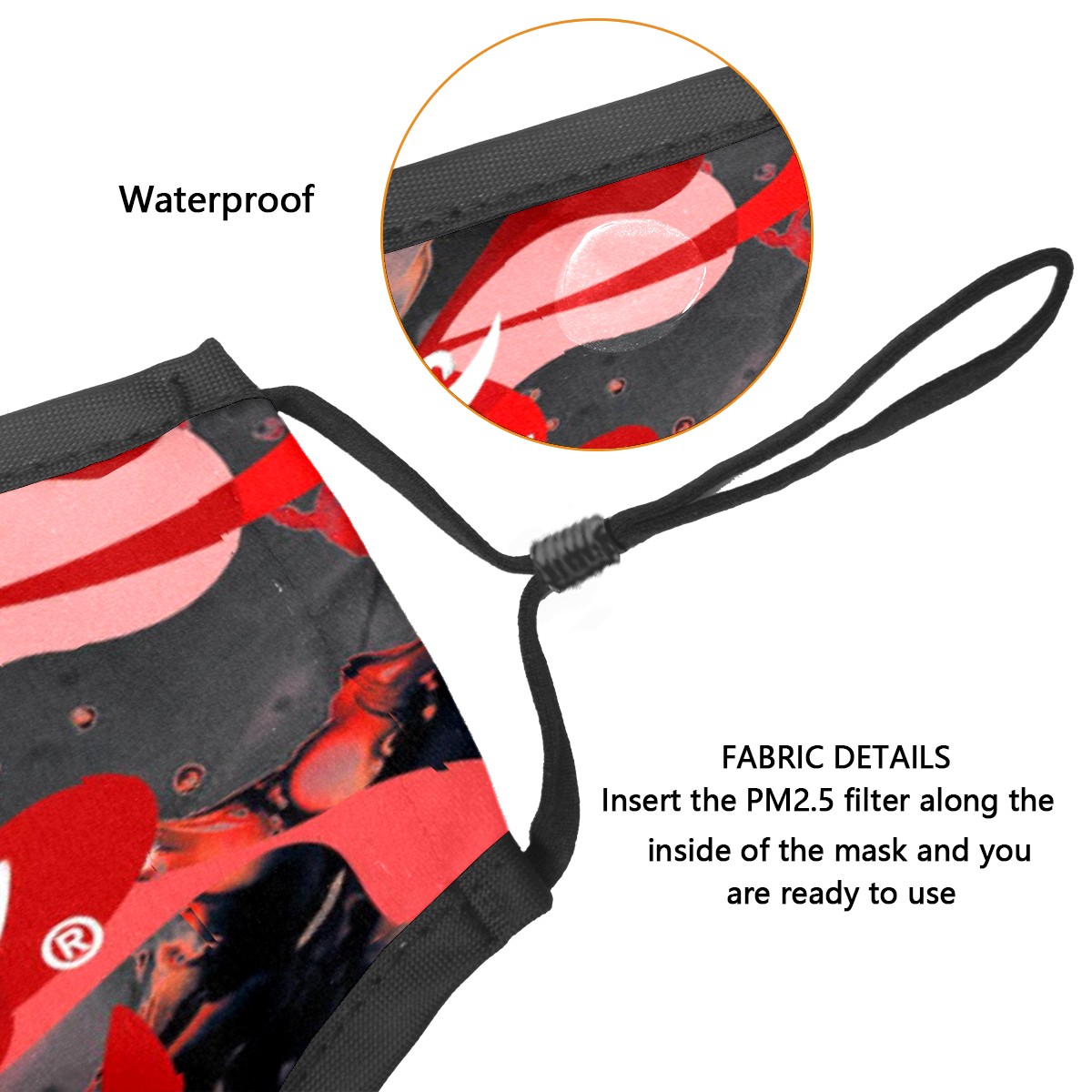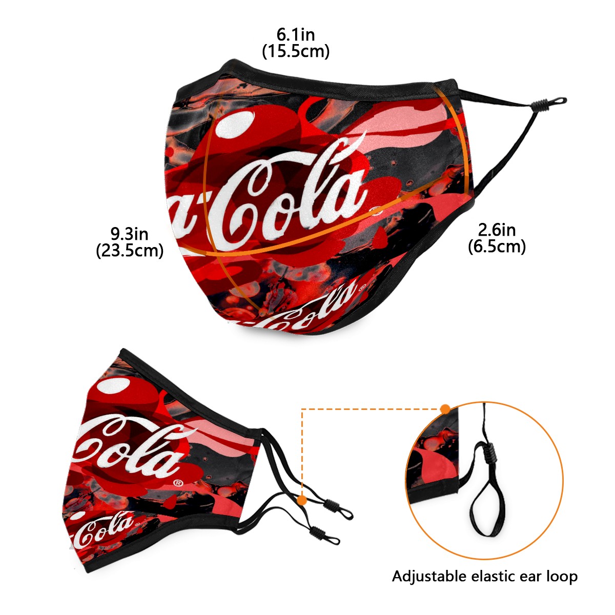 Washable Cloth Face Cover Mask Coca Cola Marble Reusable Dust Windproof Mask Face Protection Adjustable Ear Loops & Nose Wire Bandana with 6 Pcs Filter for Women Men Kids