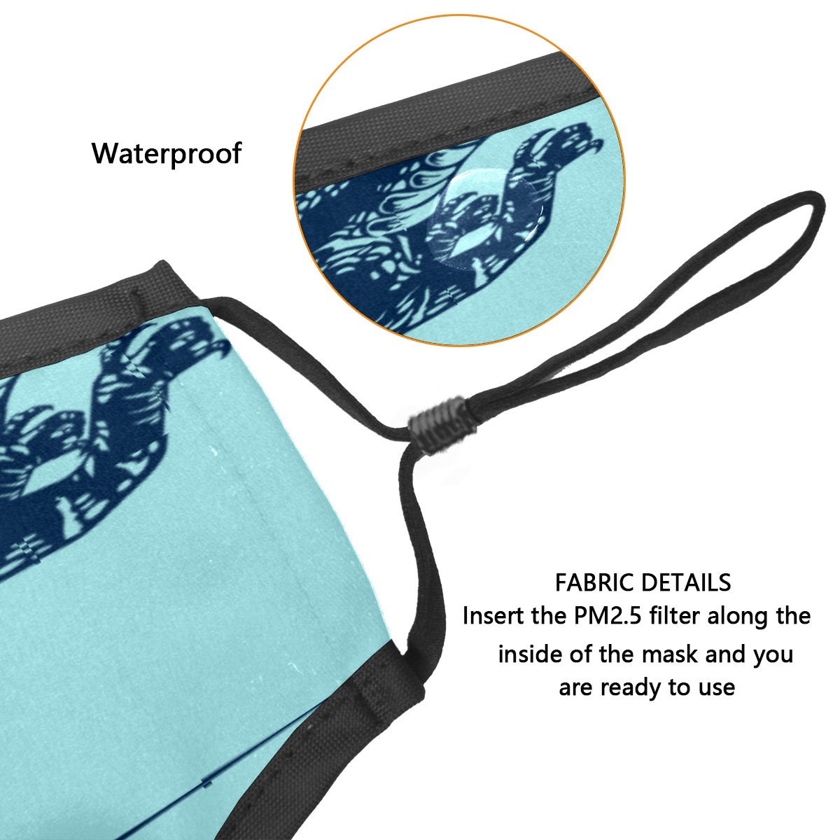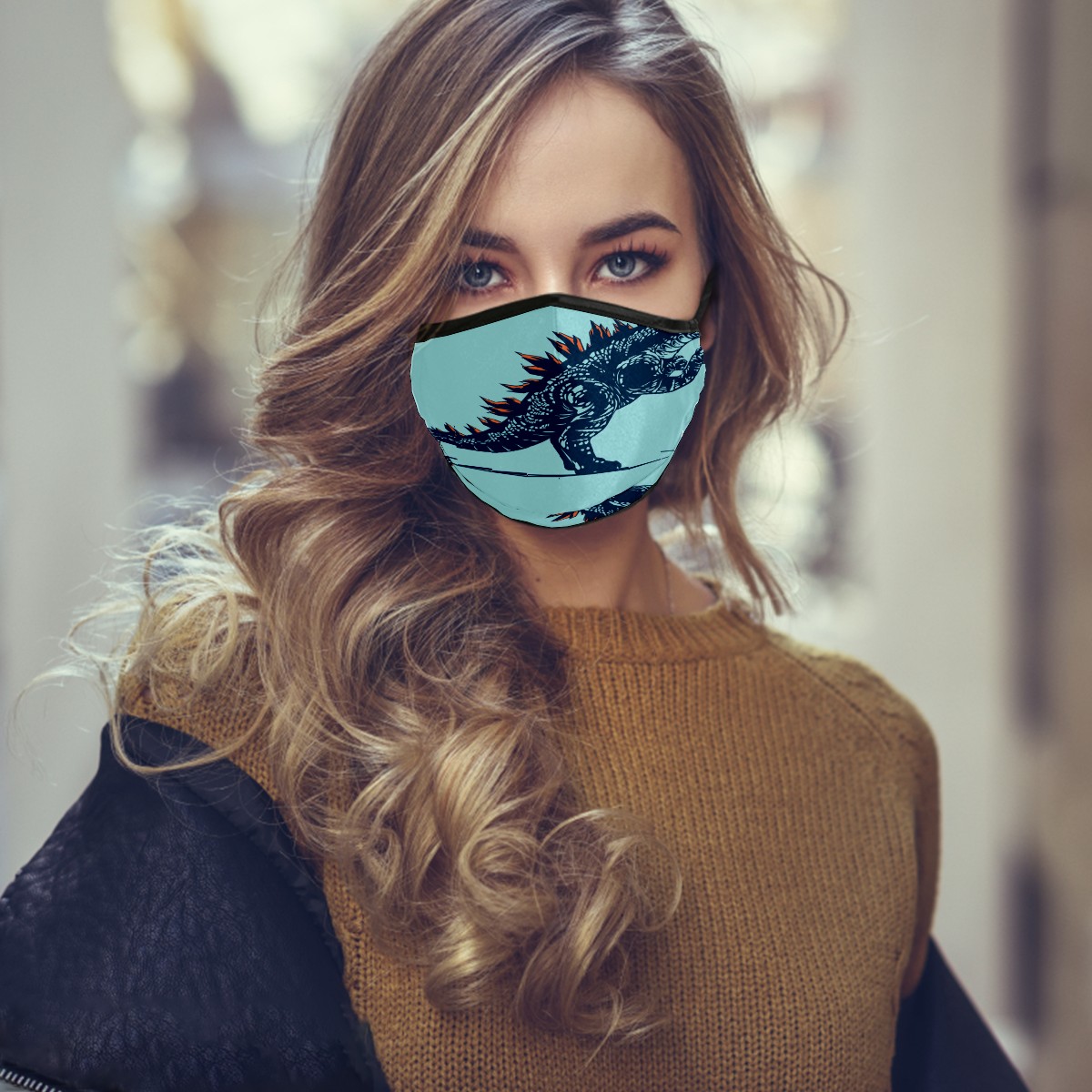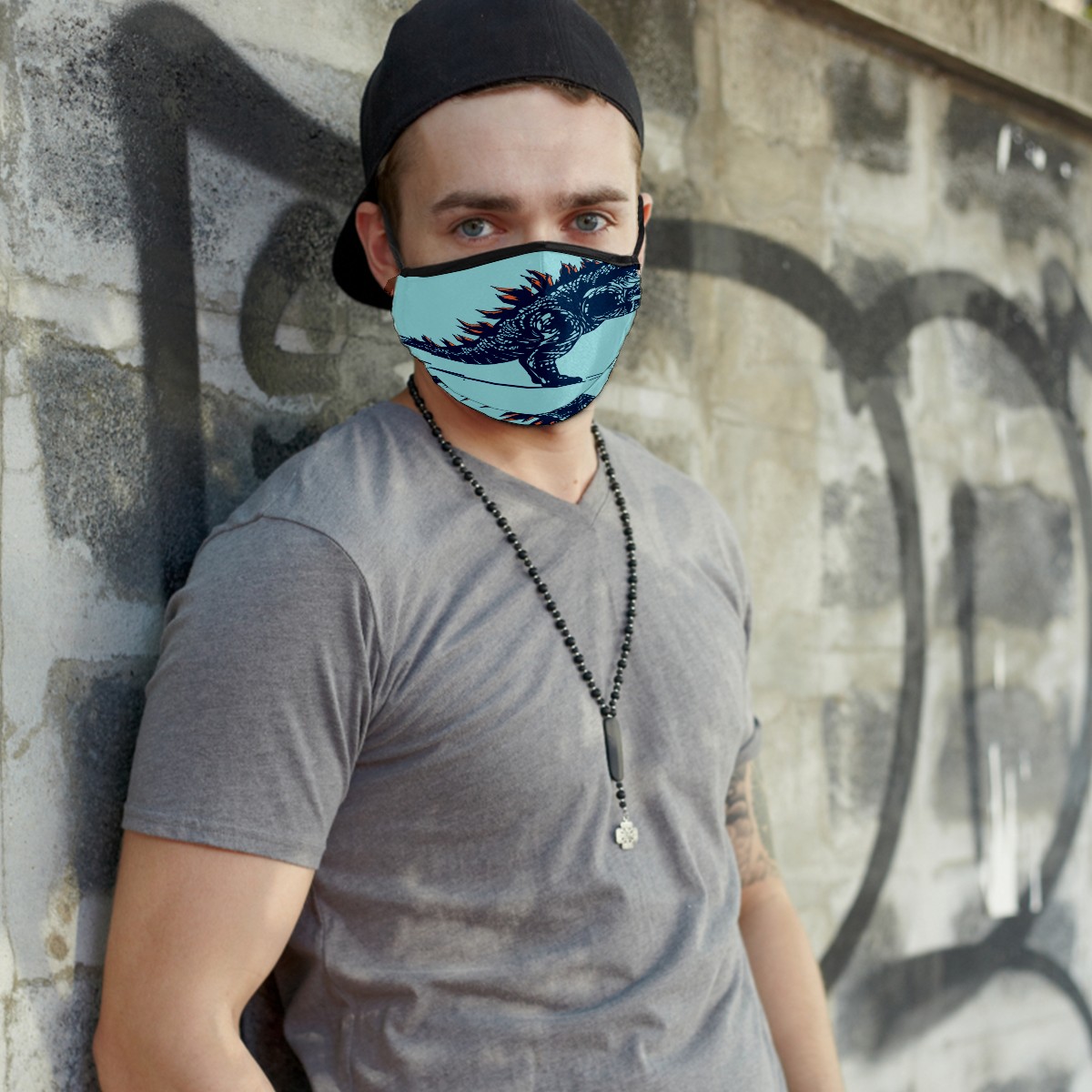 Washable Cloth Face Cover Mask Bulky Godzilla Dinosaur Blue Reusable Dust Windproof Mask Face Protection Adjustable Ear Loops & Nose Wire Bandana with 6 Pcs Filter for Women Men Kids