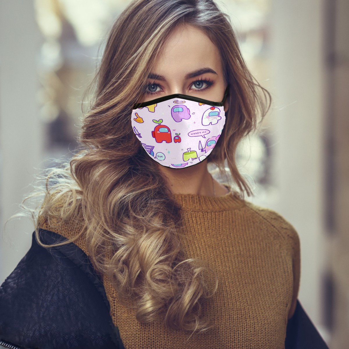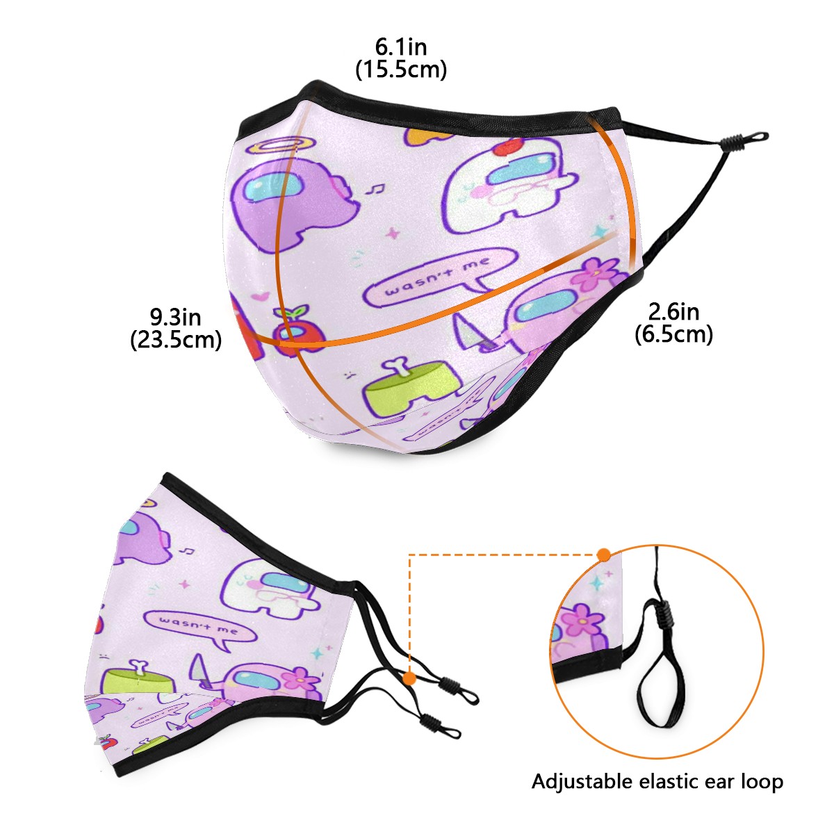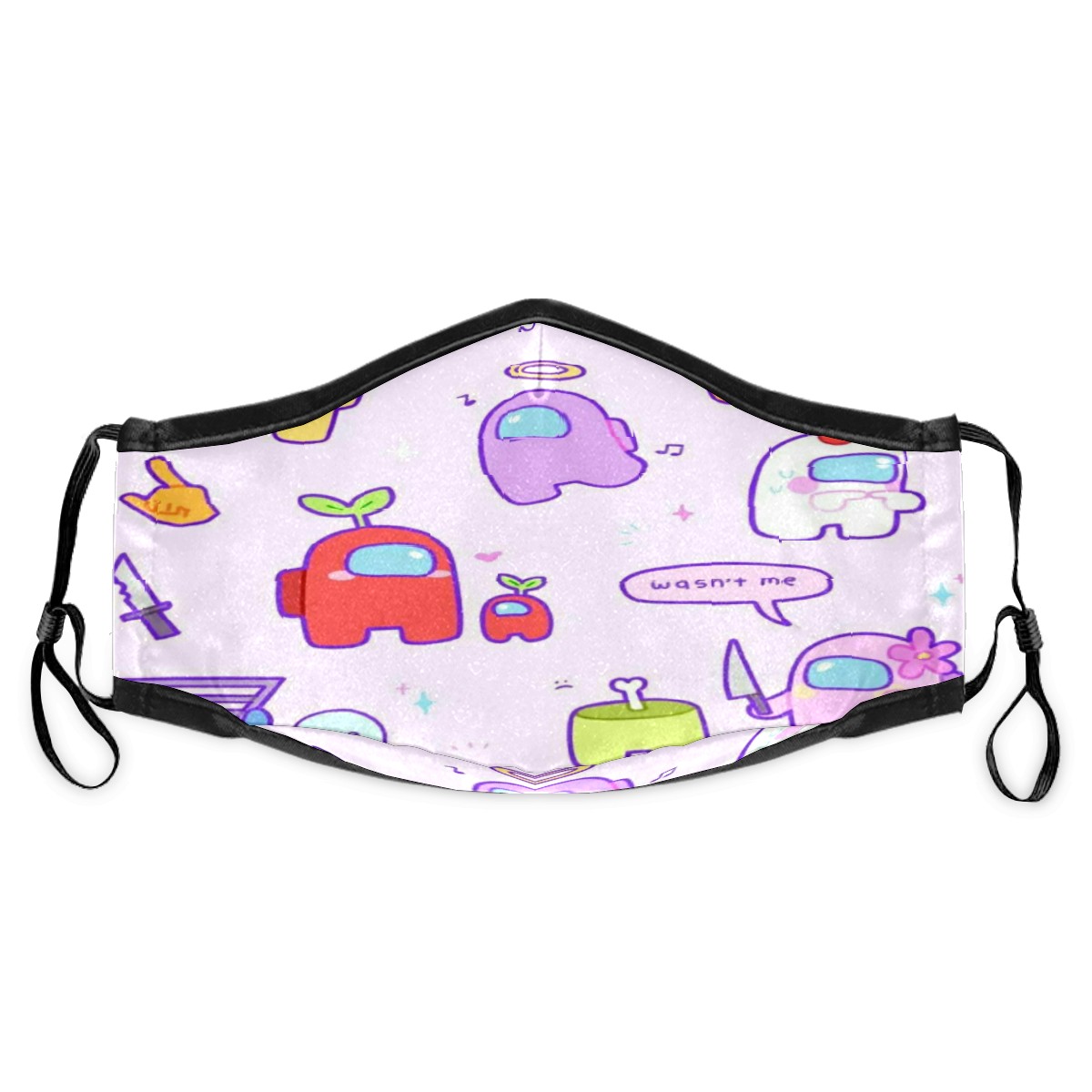 Washable Cloth Face Cover Mask Watercolor Among Us Girly Cartoon Reusable Dust Windproof Mask Face Protection Adjustable Ear Loops & Nose Wire Bandana with 6 Pcs Filter for Women Men Kids