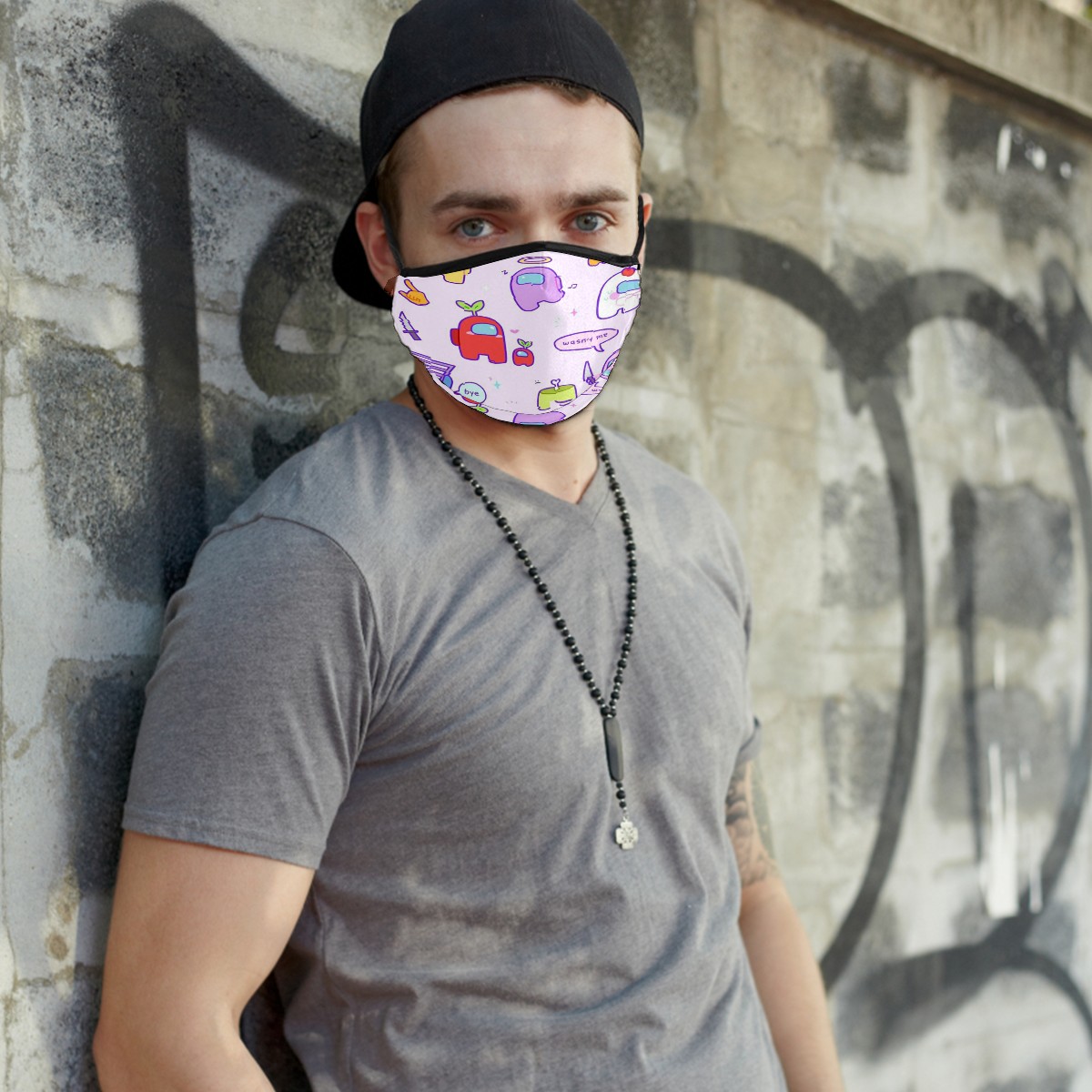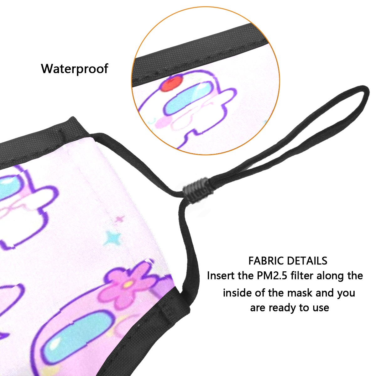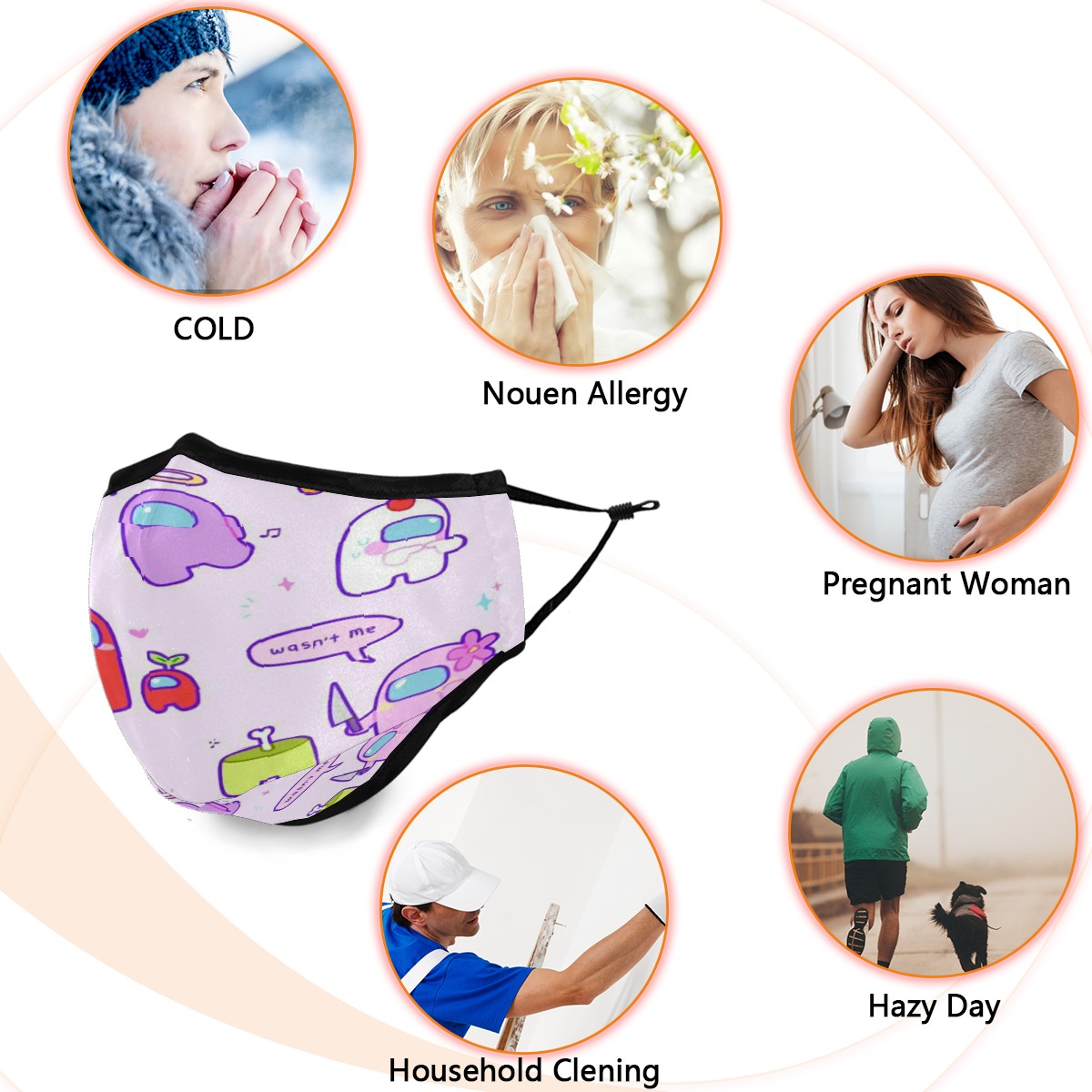 Washable Cloth Face Cover Mask Watercolor Among Us Girly Cartoon Reusable Dust Windproof Mask Face Protection Adjustable Ear Loops & Nose Wire Bandana with 6 Pcs Filter for Women Men Kids