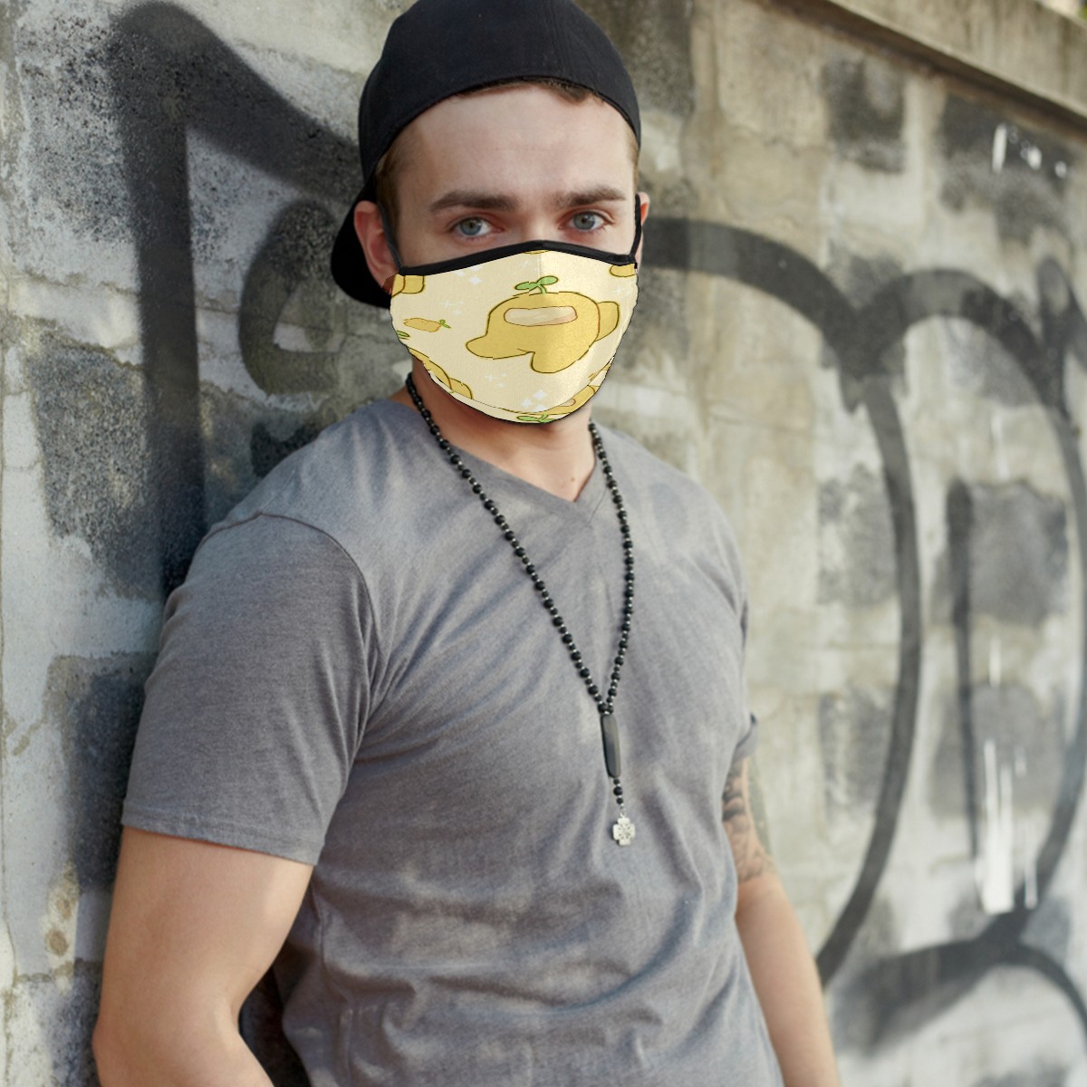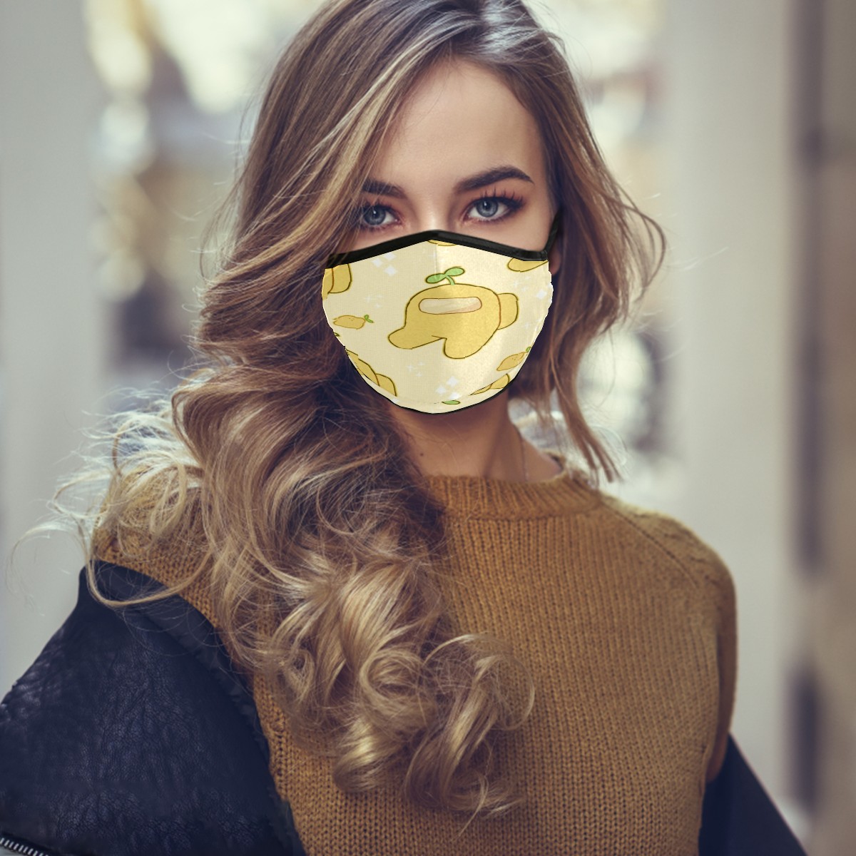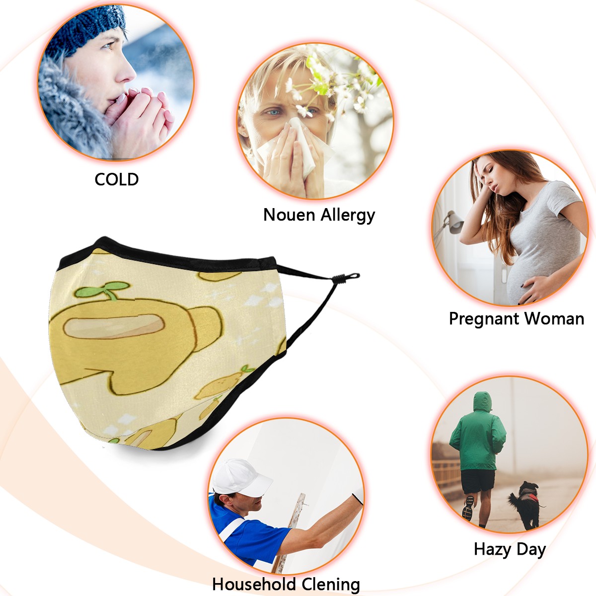 Washable Cloth Face Cover Mask Yellow Among Us Game Reusable Dust Windproof Mask Face Protection Adjustable Ear Loops & Nose Wire Bandana with 6 Pcs Filter for Women Men Kids