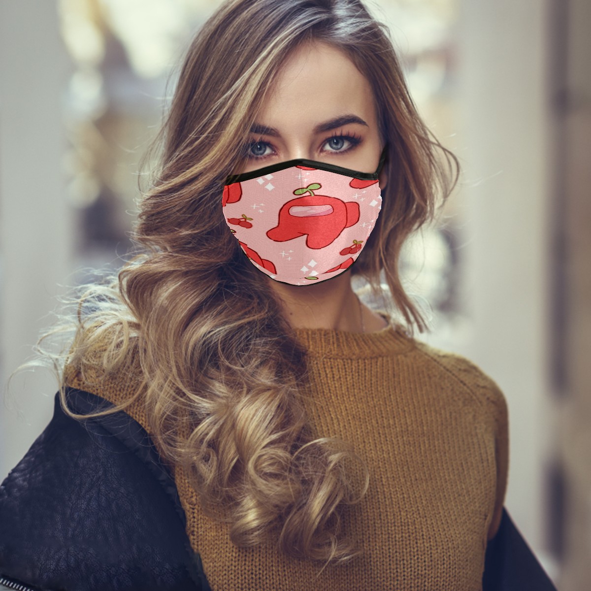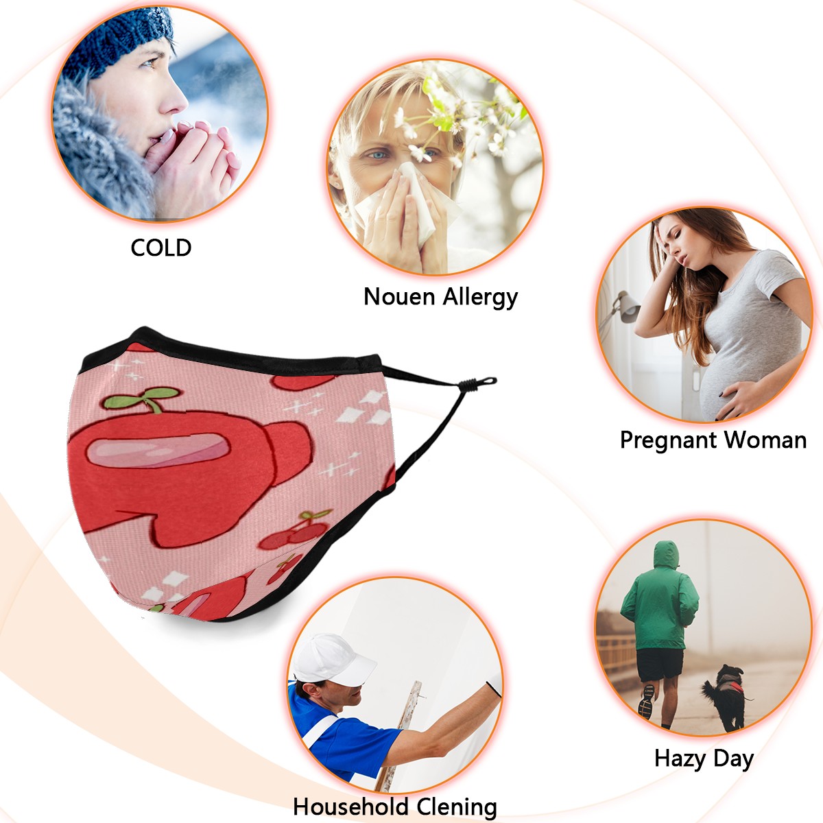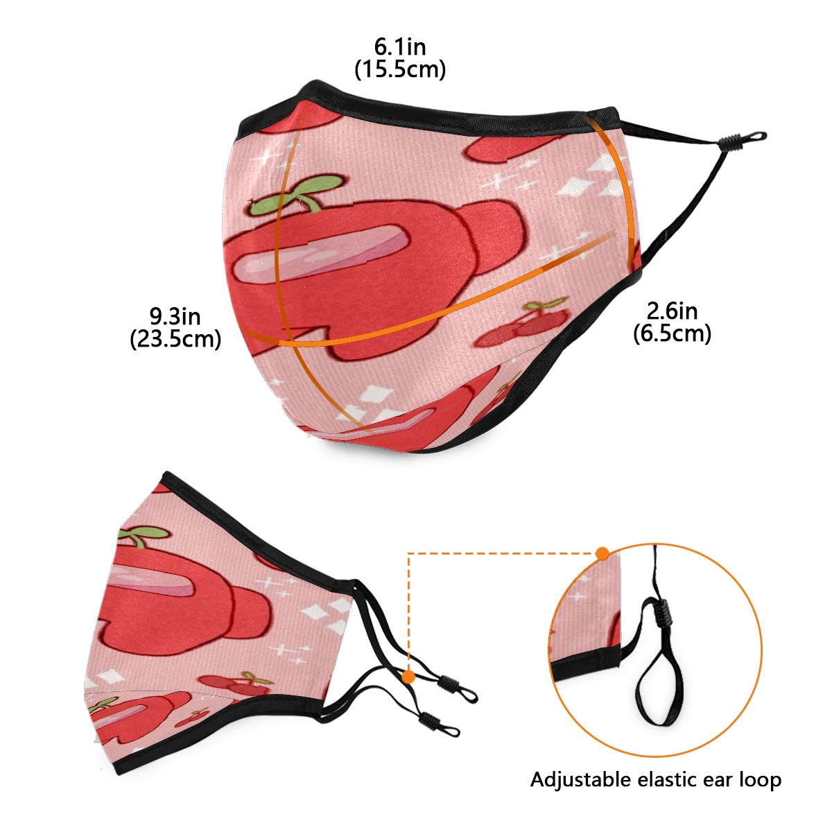 Washable Cloth Face Cover Mask Red Among Us Game Reusable Dust Windproof Mask Face Protection Adjustable Ear Loops & Nose Wire Bandana with 6 Pcs Filter for Women Men Kids