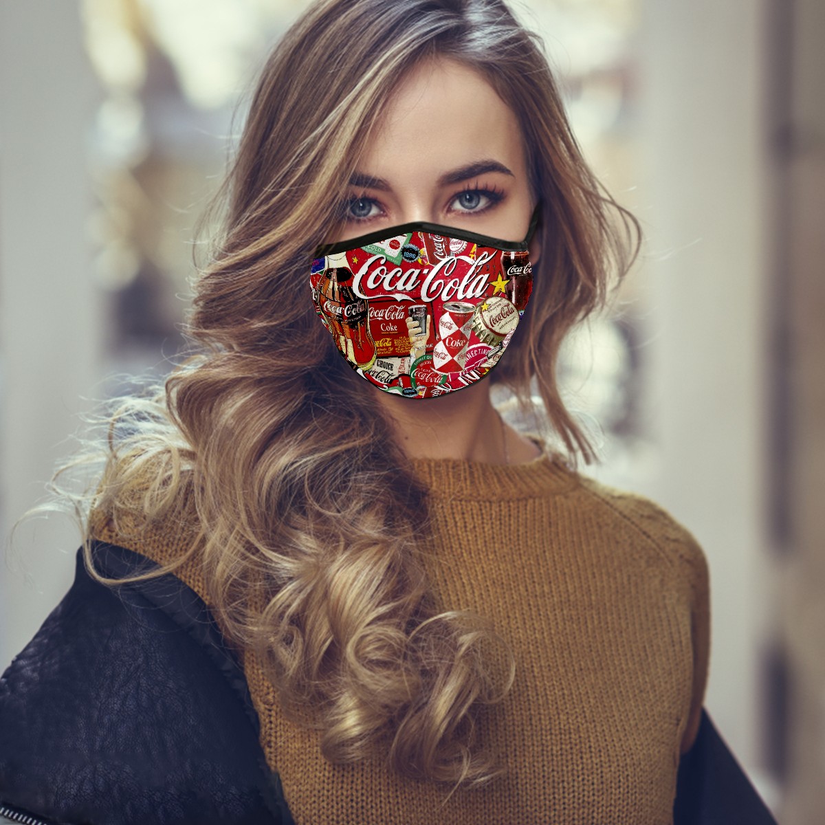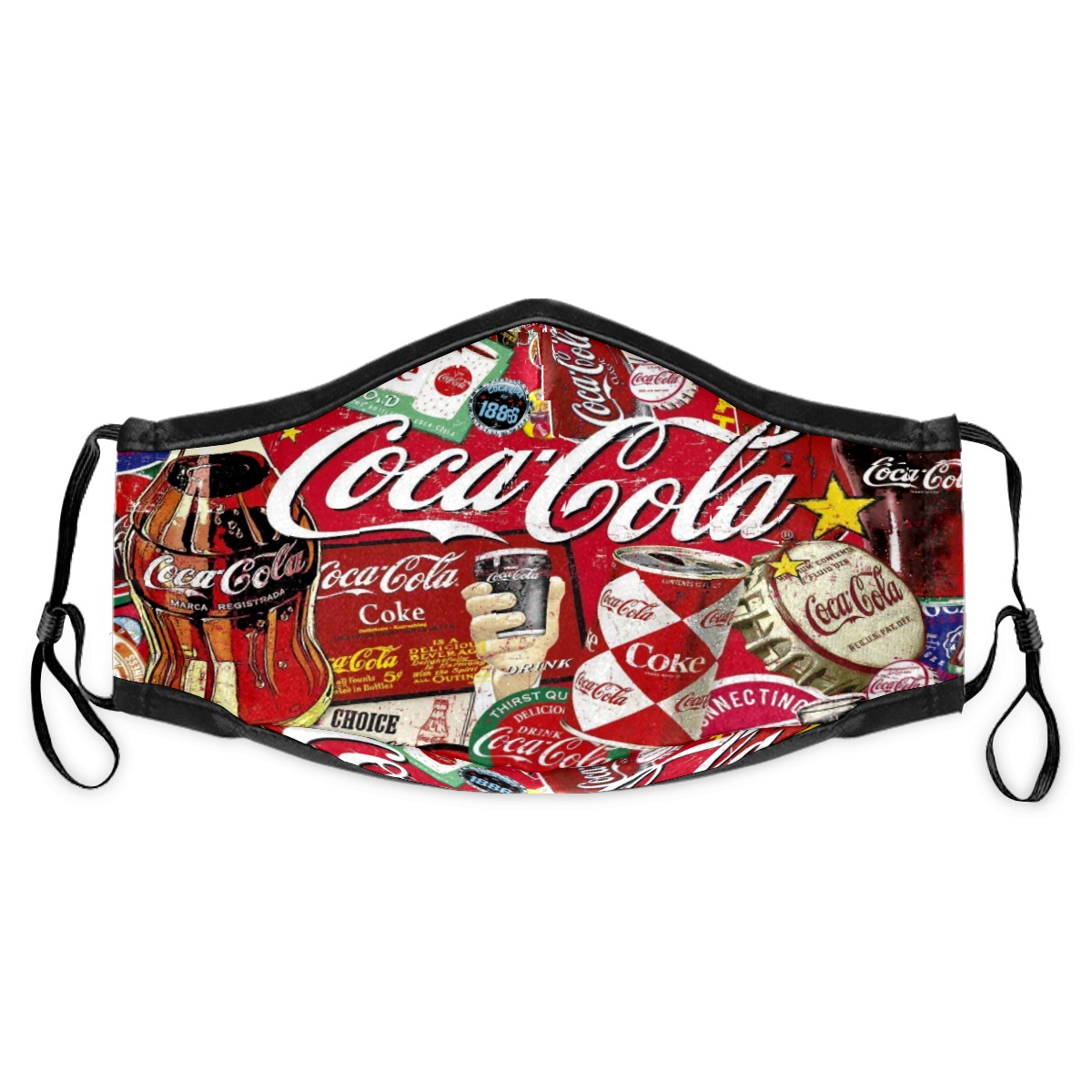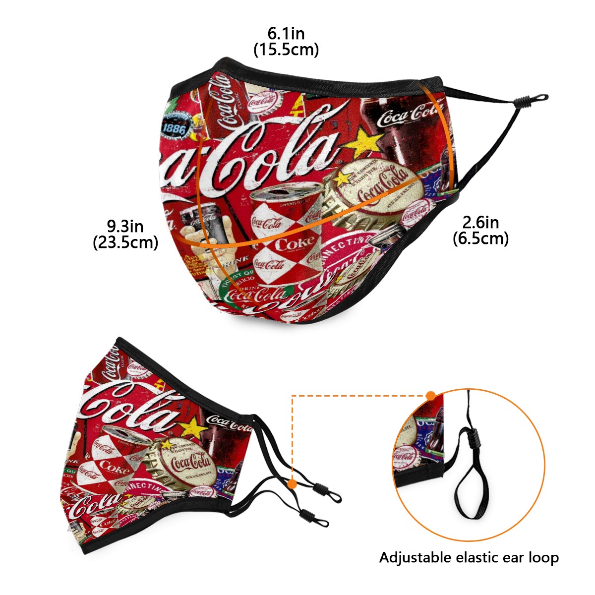 Washable Cloth Face Cover Mask Classic Coca Cola Poster Reusable Dust Windproof Mask Face Protection Adjustable Ear Loops & Nose Wire Bandana with 6 Pcs Filter for Women Men Kids