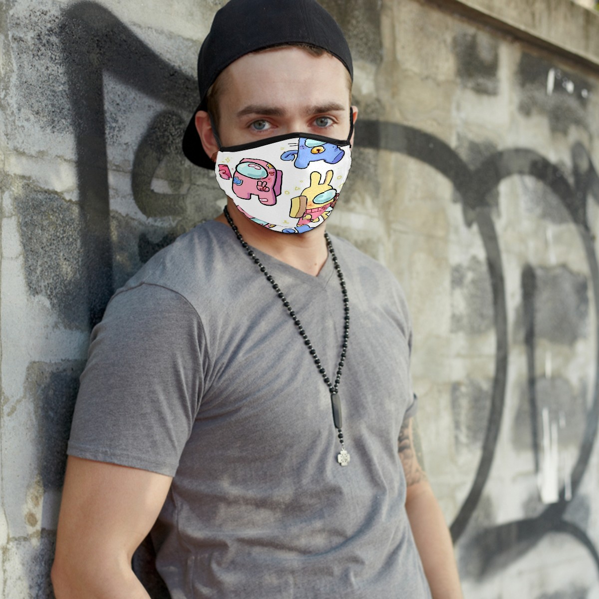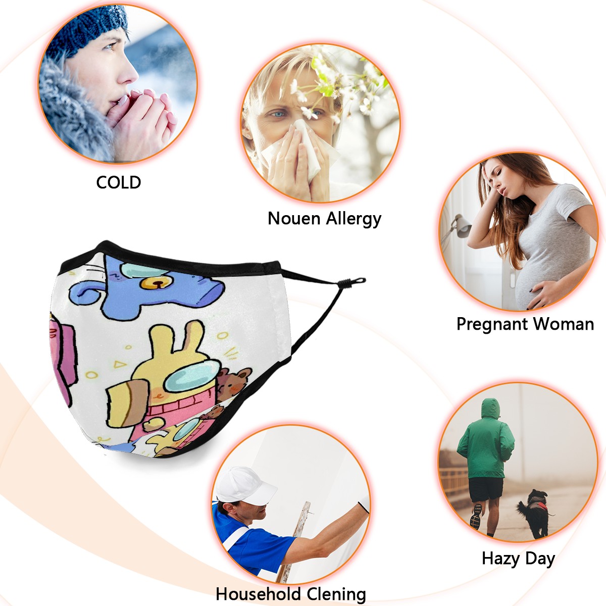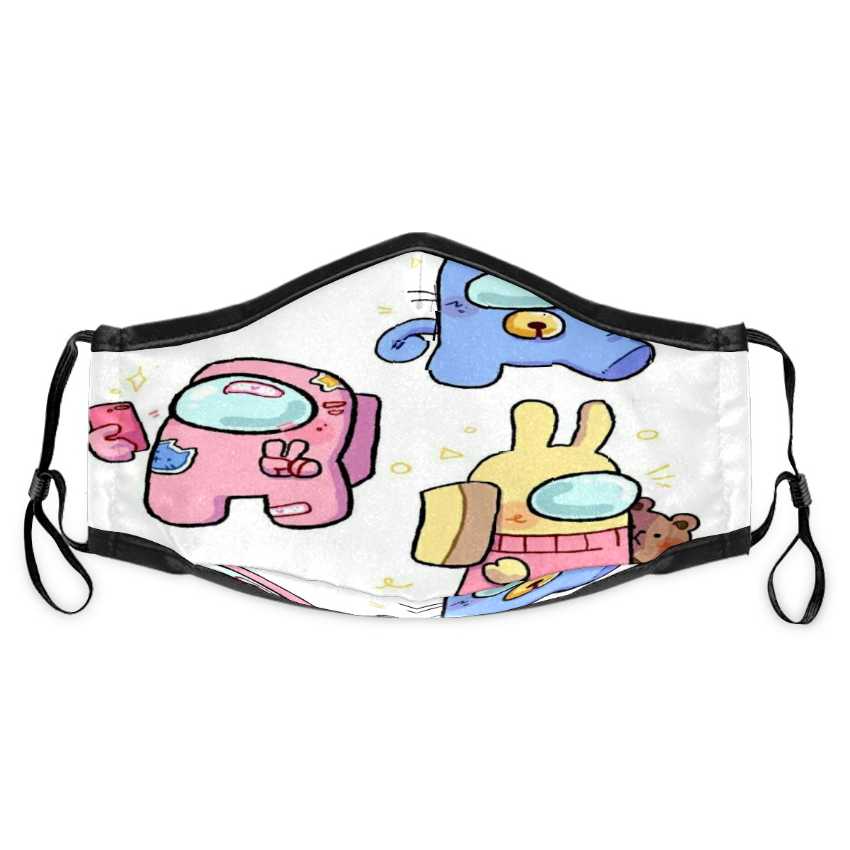 Washable Cloth Face Cover Mask Kawaii Among Us Reusable Dust Windproof Mask Face Protection Adjustable Ear Loops & Nose Wire Bandana with 6 Pcs Filter for Women Men Kids