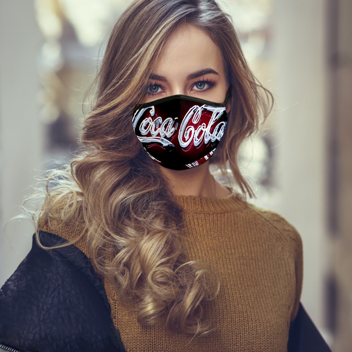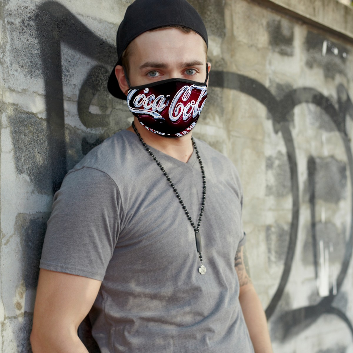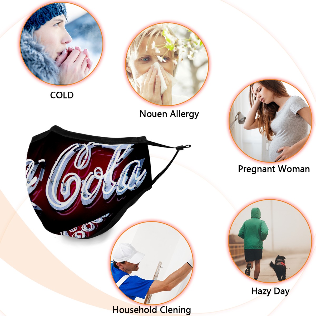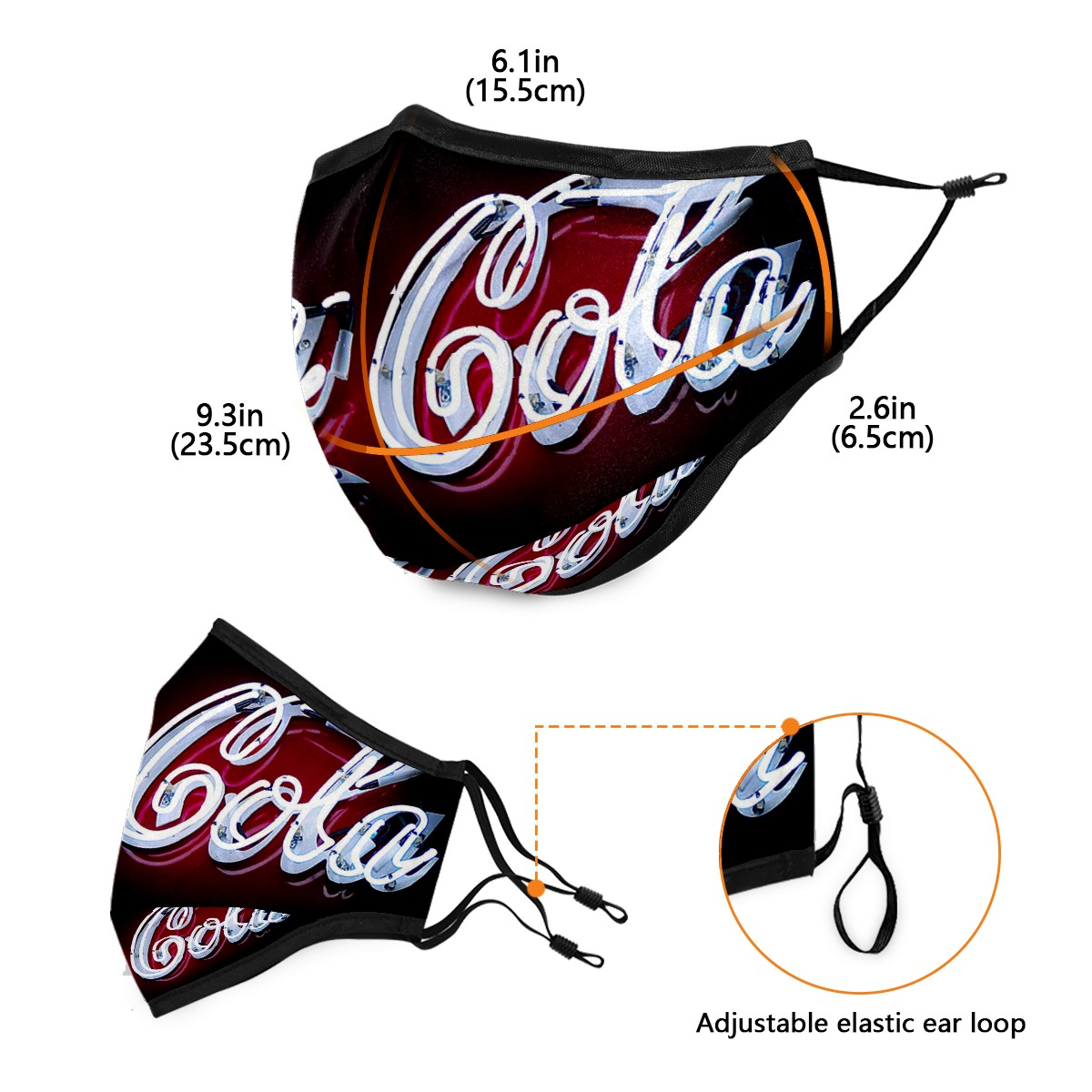 Washable Cloth Face Cover Mask Classic Coca Cola Reusable Dust Windproof Mask Face Protection Adjustable Ear Loops & Nose Wire Bandana with 6 Pcs Filter for Women Men Kids