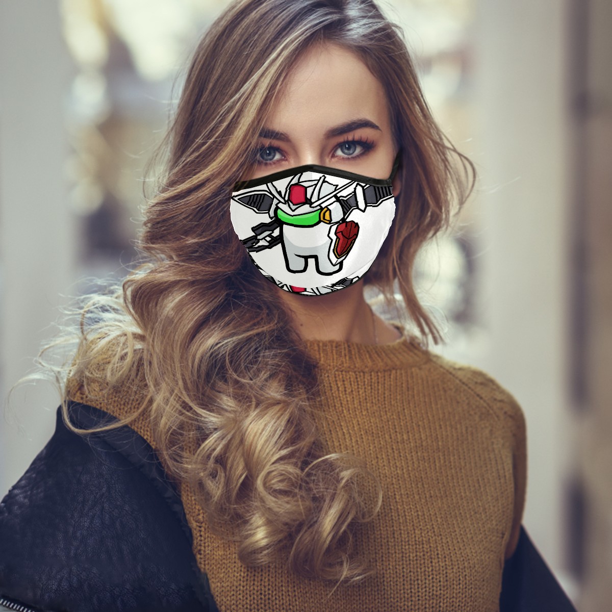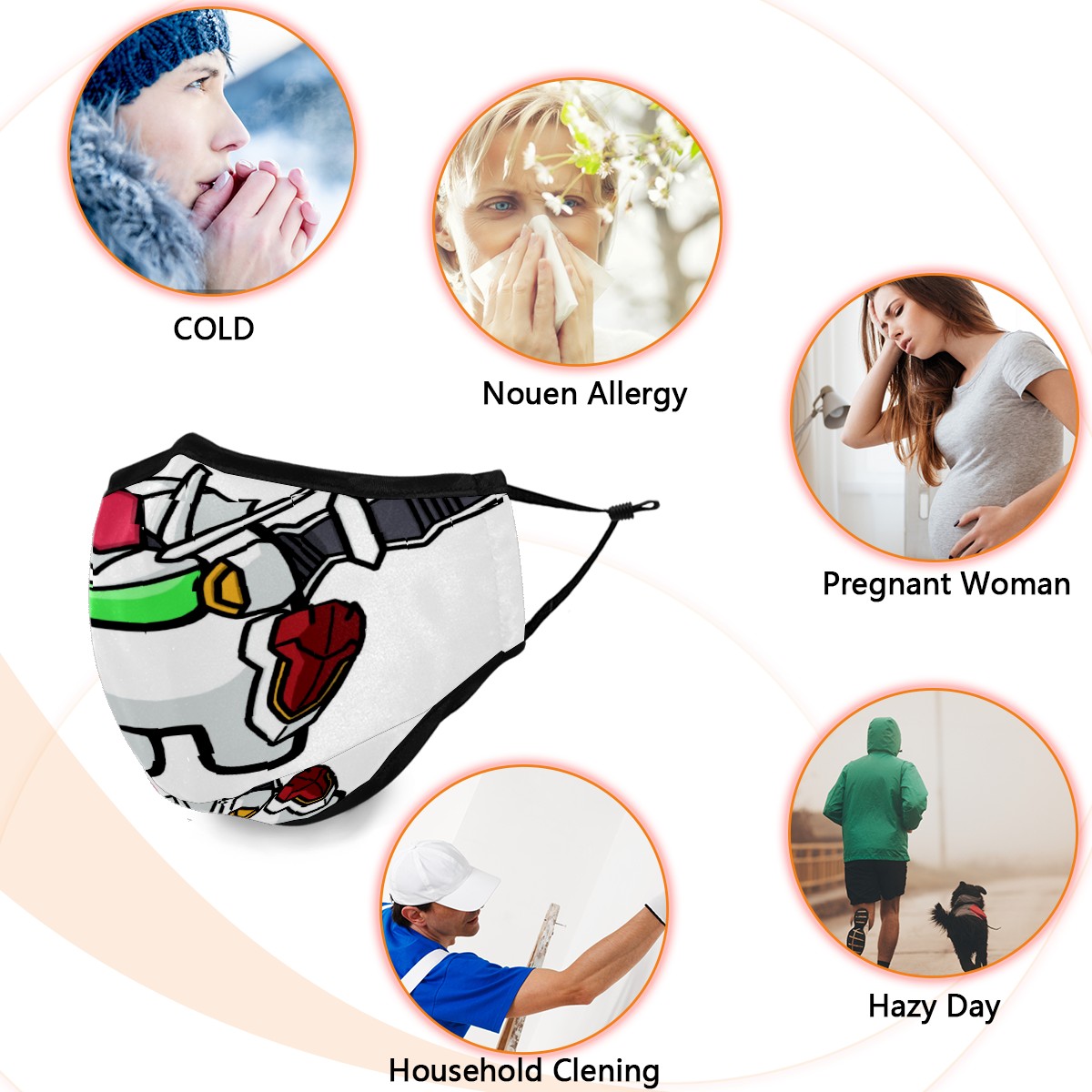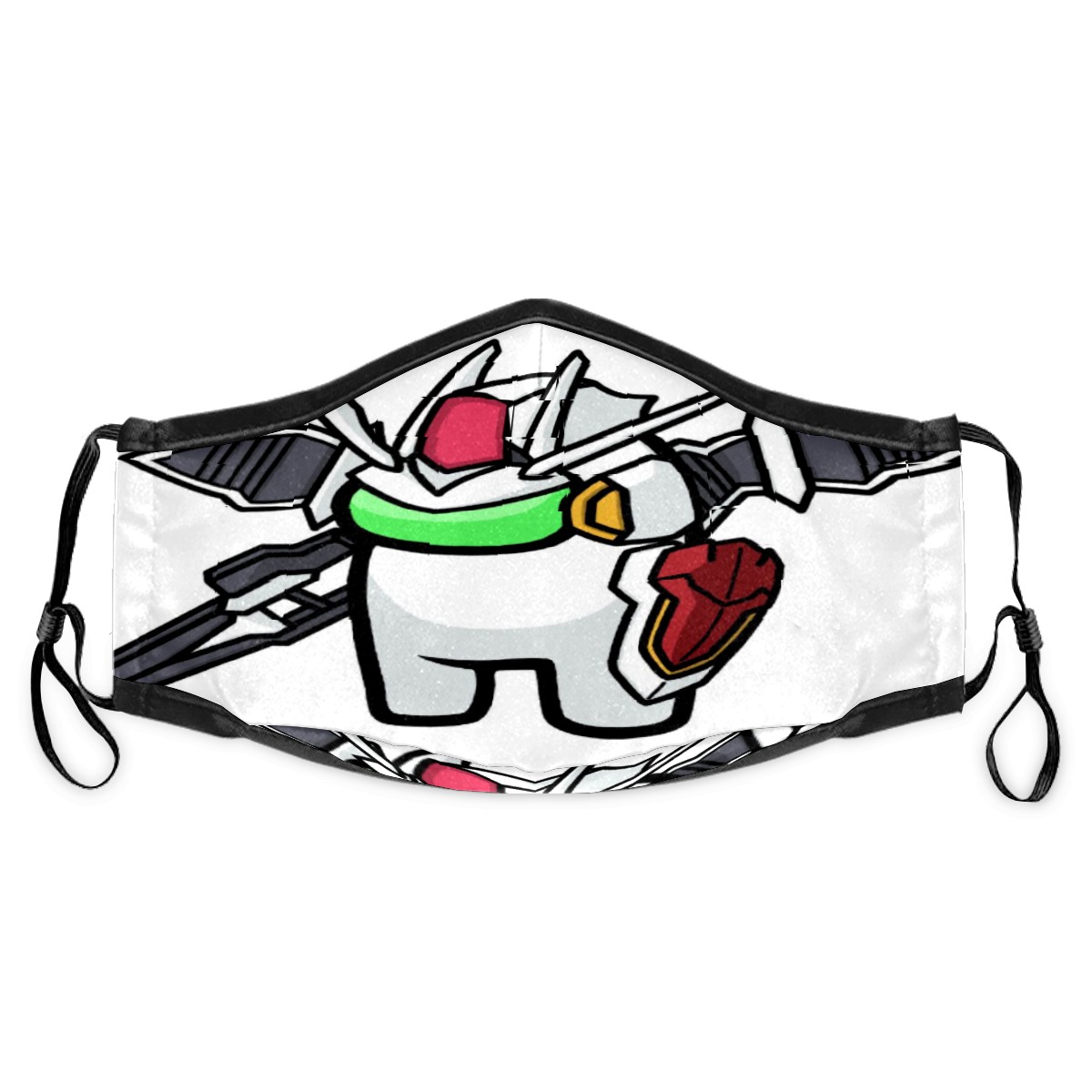 Washable Cloth Face Cover Mask White Cute Among Us Game Reusable Dust Windproof Mask Face Protection Adjustable Ear Loops & Nose Wire Bandana with 6 Pcs Filter for Women Men Kids