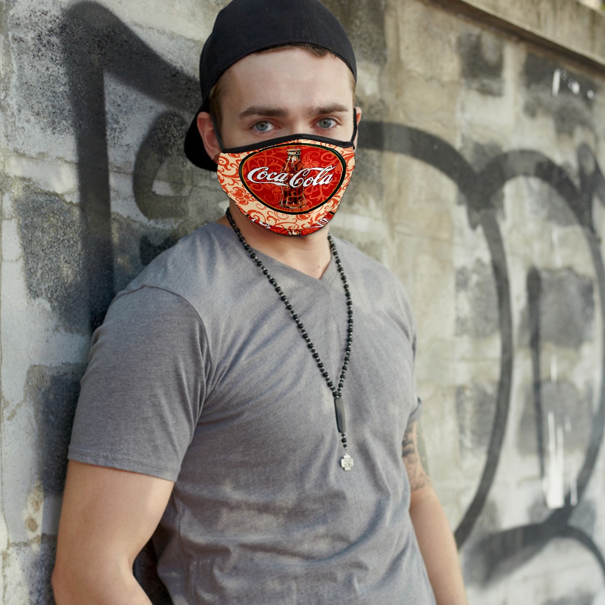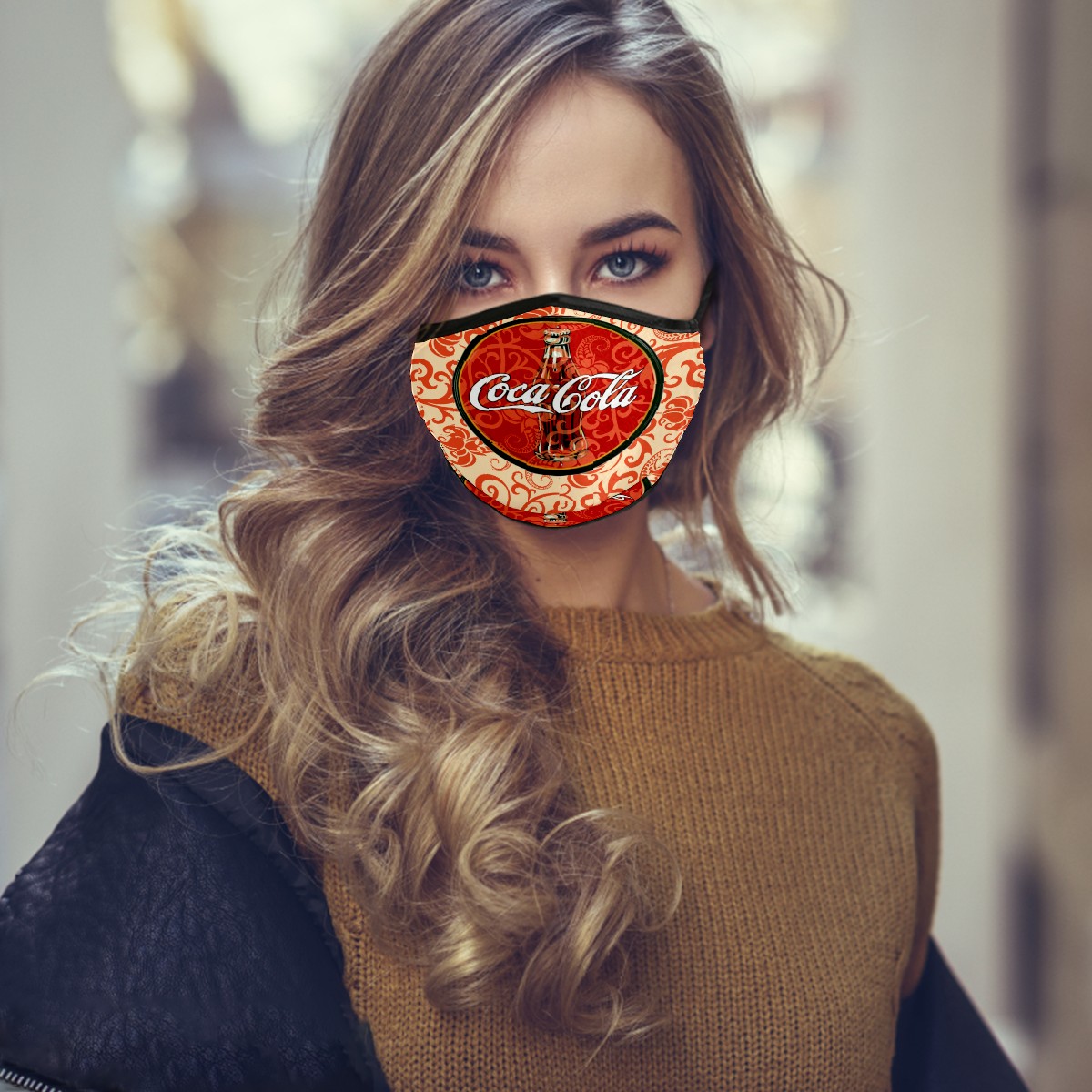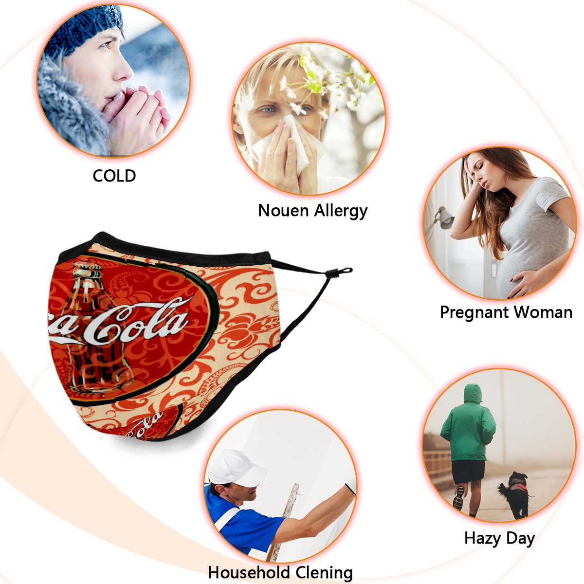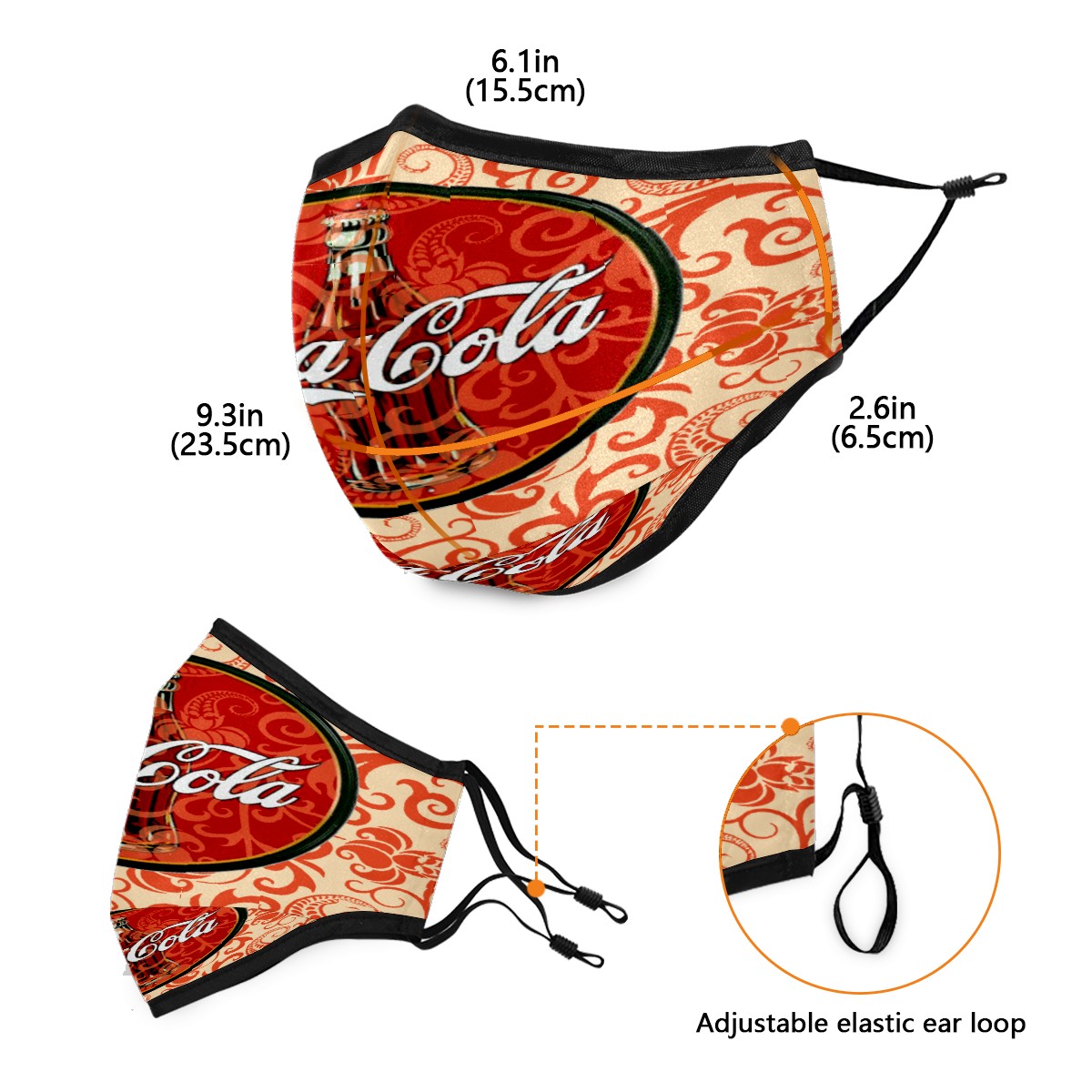 Washable Cloth Face Cover Mask Classic Coca-Cola Bohemian Pattern Reusable Dust Windproof Mask Face Protection Adjustable Ear Loops & Nose Wire Bandana with 6 Pcs Filter for Women Men Kids