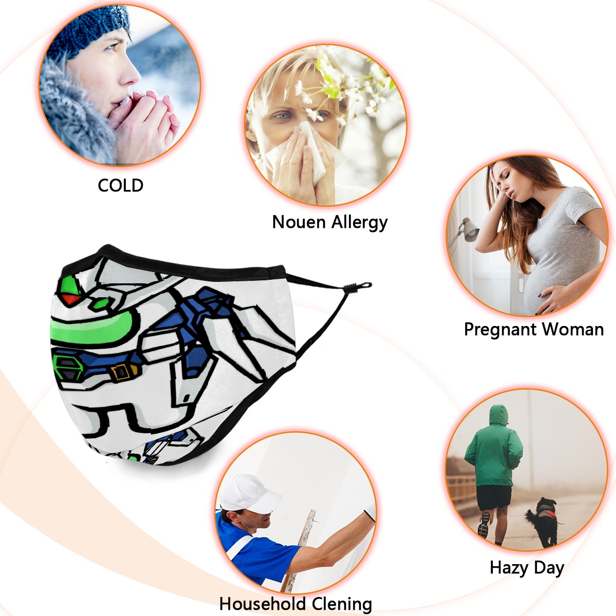 Washable Cloth Face Cover Mask White Among Us Fight Reusable Dust Windproof Mask Face Protection Adjustable Ear Loops & Nose Wire Bandana with 6 Pcs Filter for Women Men Kids