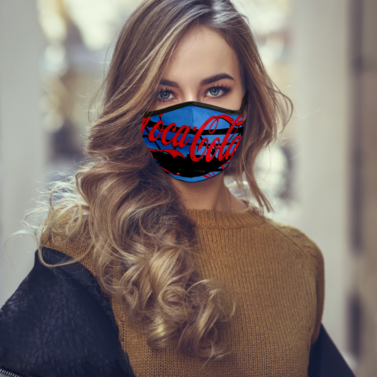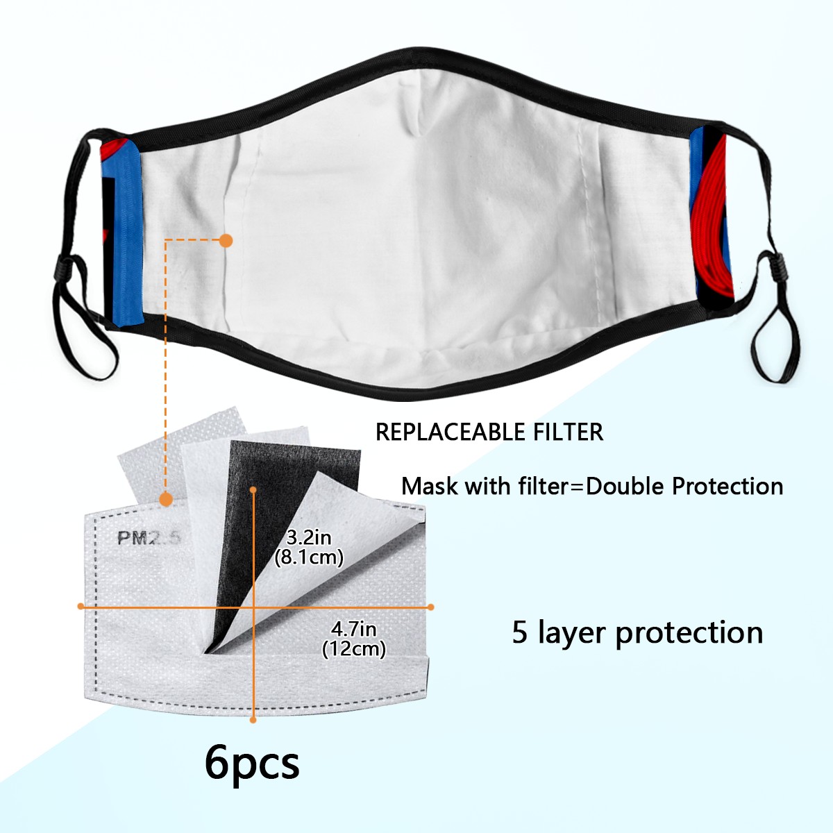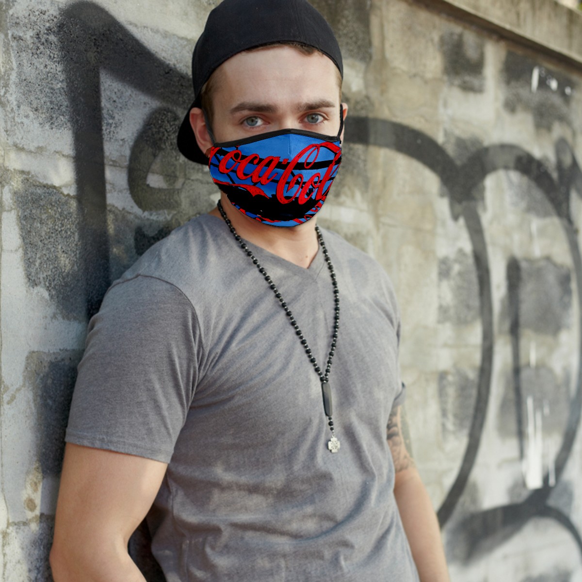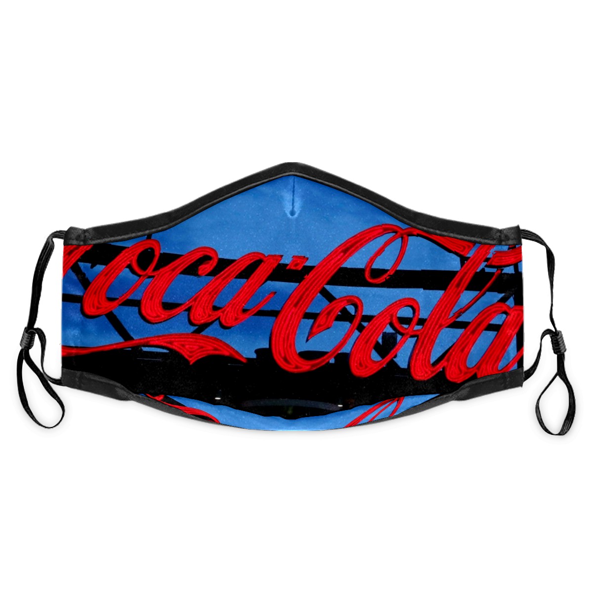 Washable Cloth Face Cover Mask Coca-Cola Sign Reusable Dust Windproof Mask Face Protection Adjustable Ear Loops & Nose Wire Bandana with 6 Pcs Filter for Women Men Kids
