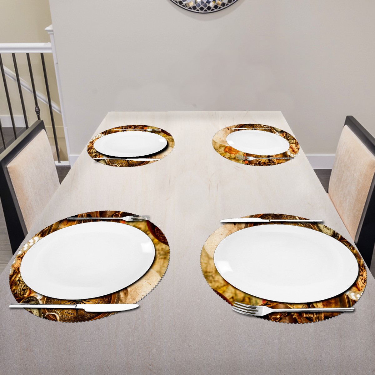 <p>Exquisite design placemats feel good would be the best decoration and Protection to your tables.</p> <p>Diameter: 15.3 Inch / 39 cm Weight: about 0.06 kg Package Included: 1 Pieces of Placemats.</p> <p>Material: 100% polyester, environmental protection material, can be washed directly.</p> <p>Protect: Isolate the table when there is a hot object to avoid scalding the table. Protect your table from scratches and stains ,liquid can go through placemats, clean it when finished.</p> <p>Easy to Care: Easy clean with wet cloth,or rinse with little cleaner would make them look as new. You can roll them up while you clean the table, convenient to care.</p> <p>Occasion: Great for dinner parties, housewarming, birthday celebrations, entertaining and family gatherings. They can be used indoor and outdoor. Use them in your home, garden, office, cafe, party house, restaurant, bar, hotel.</p> <p>Gift: Very practical and elegant gift for your wife, husband, parents, lover, colleague and friend for birthday, Valentine's Day, Thanksgiving, Halloween and Christmas.</p>