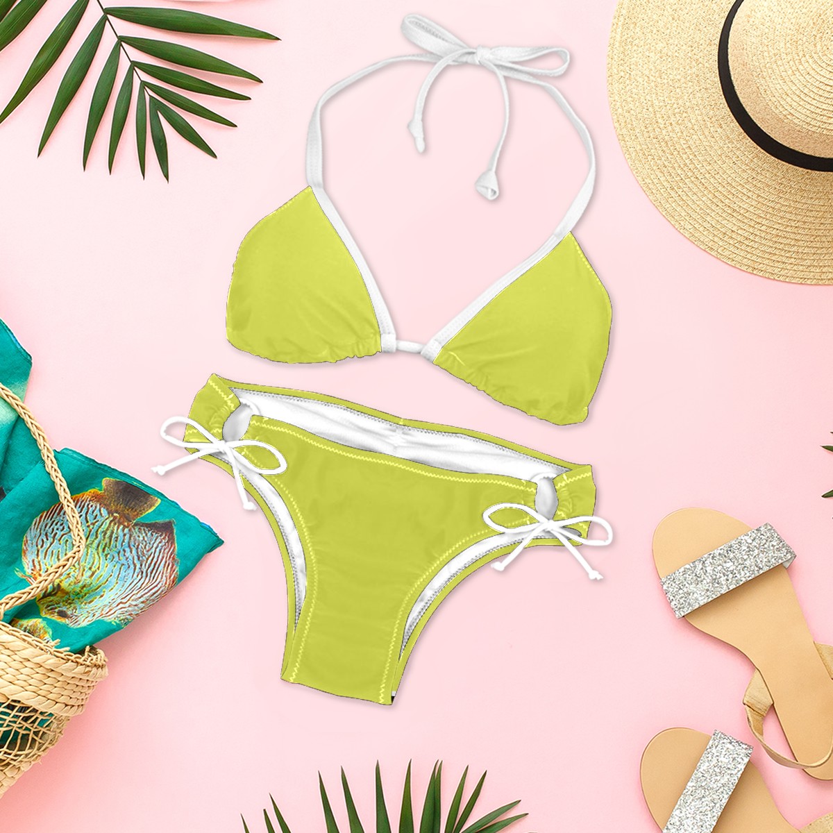 Women Swimsuit Pure Color Lemon Yellow Beach Bikini Set