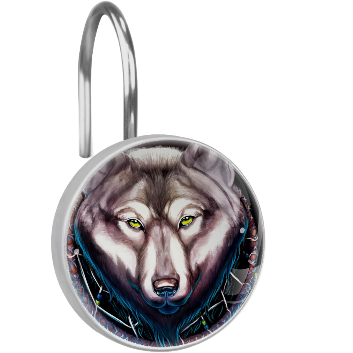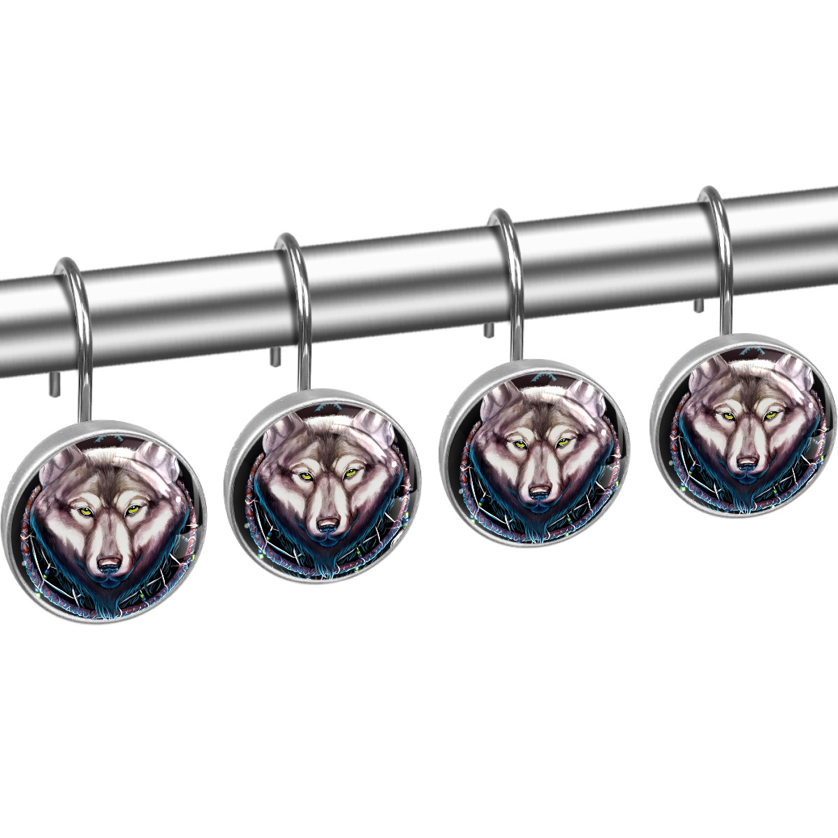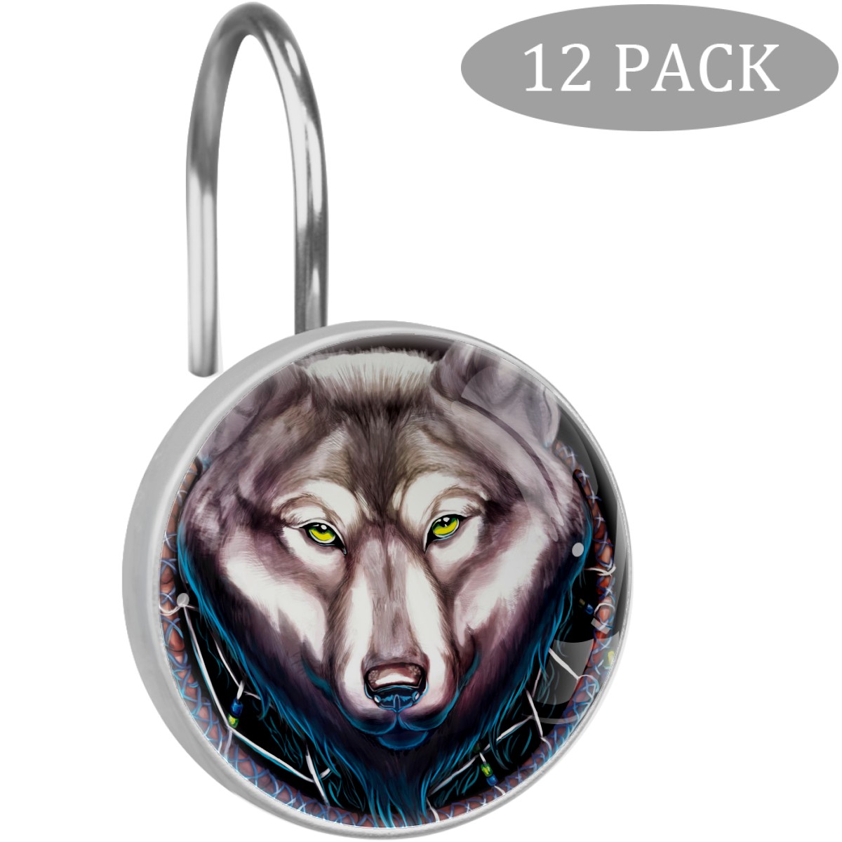 Decorative Shower Curtain Hooks Set of 12 Wolf Dream Catcher Resin Shower Hooks for Curtain Shower Rings for Bathroom Home Hotel Shower Rods