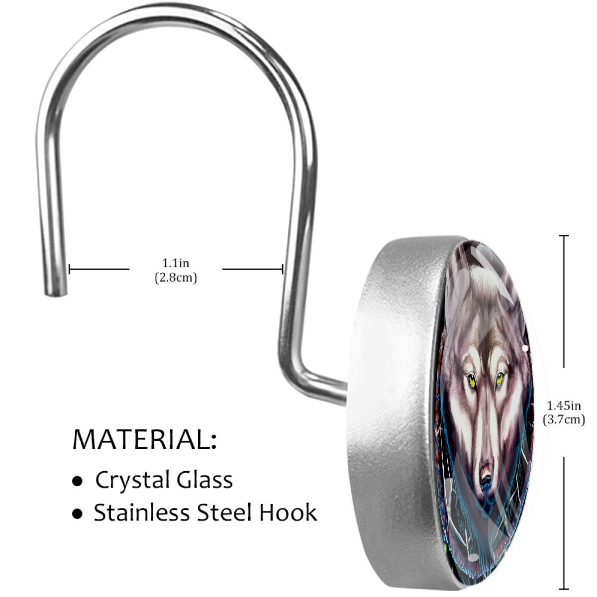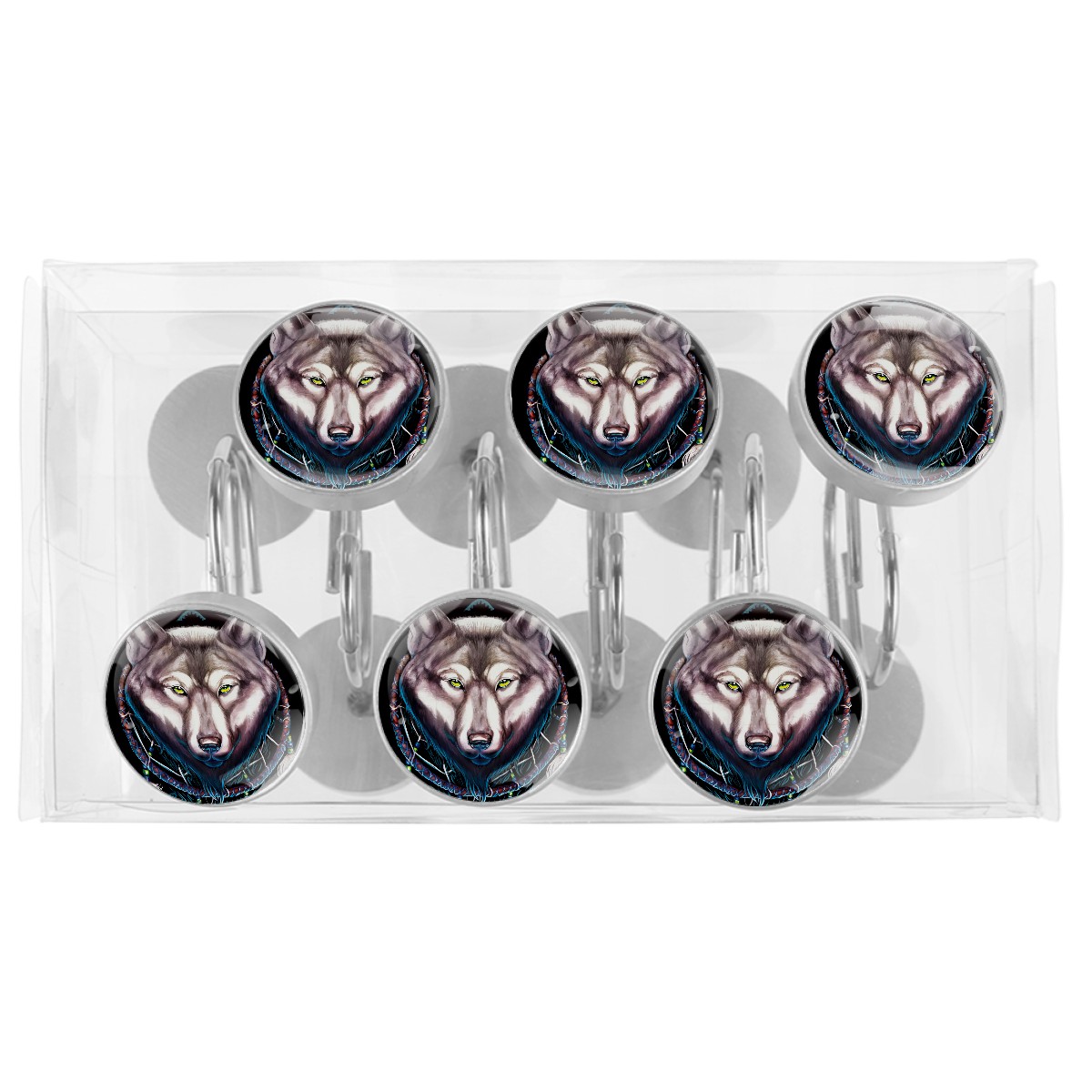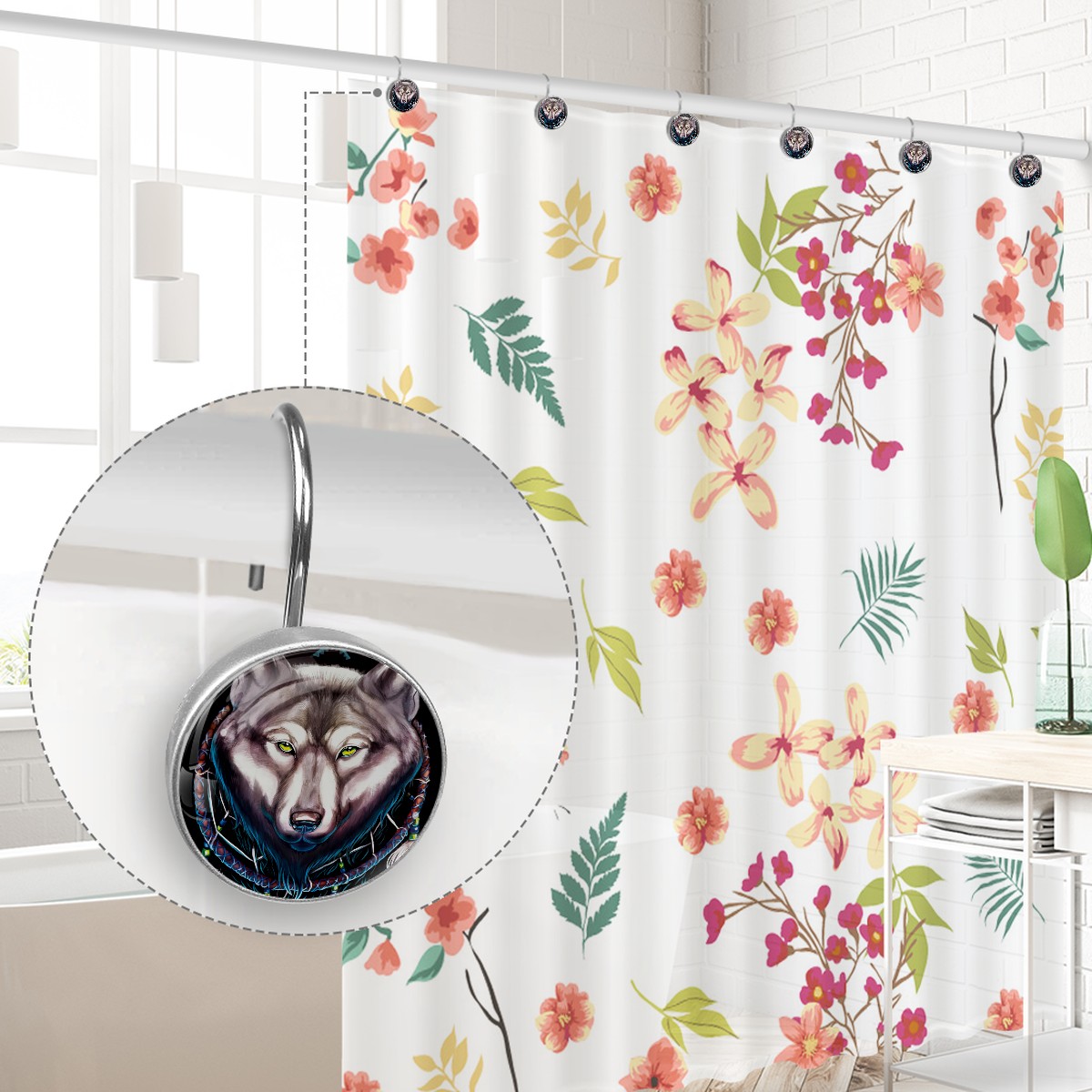 Decorative Shower Curtain Hooks Set of 12 Wolf Dream Catcher Resin Shower Hooks for Curtain Shower Rings for Bathroom Home Hotel Shower Rods
