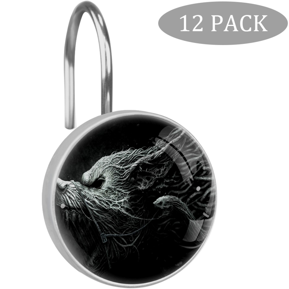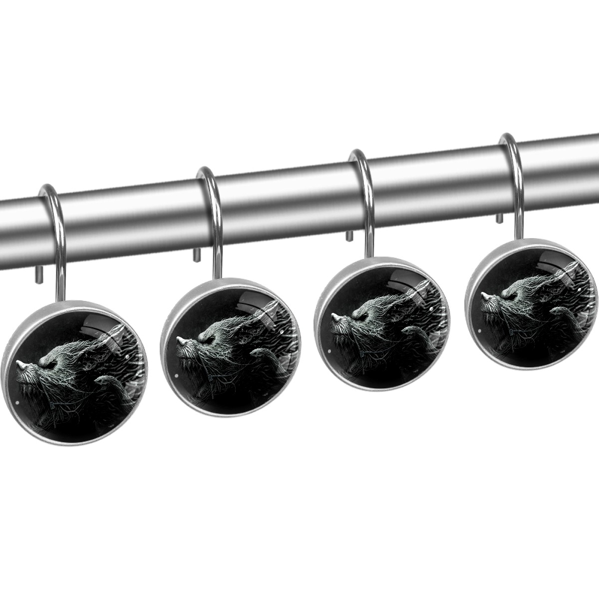Decorative Shower Curtain Hooks Set of 12 Vine Wolf Resin Shower Hooks for Curtain Shower Rings for Bathroom Home Hotel Shower Rods