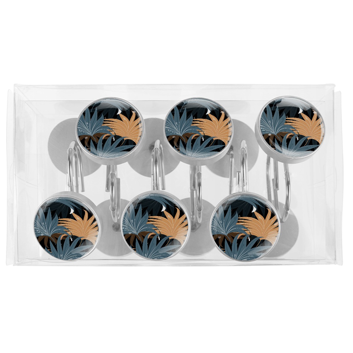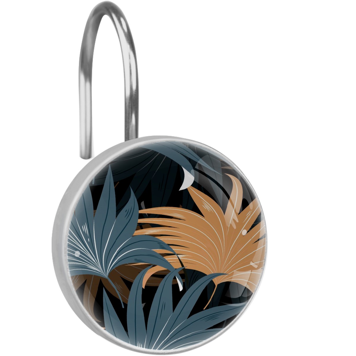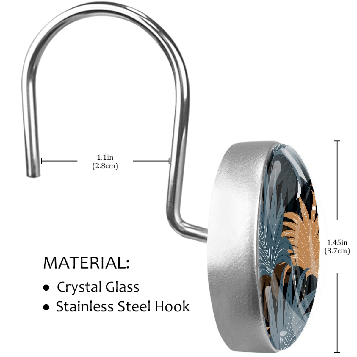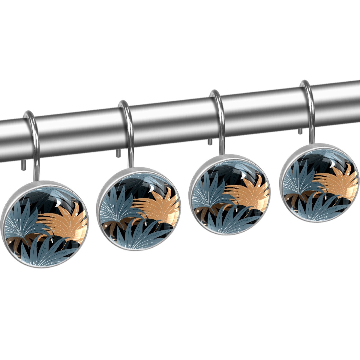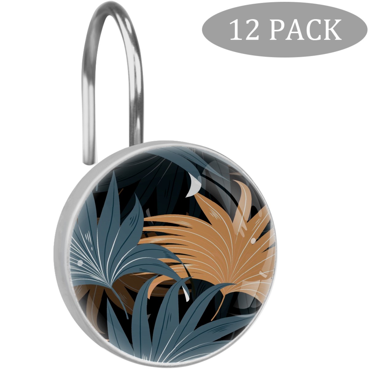 Decorative Shower Curtain Hooks Set of 12 Tropical Palm Trees Leaves Resin Shower Hooks for Curtain Shower Rings for Bathroom Home Hotel Shower Rods