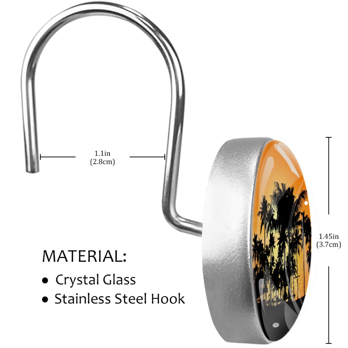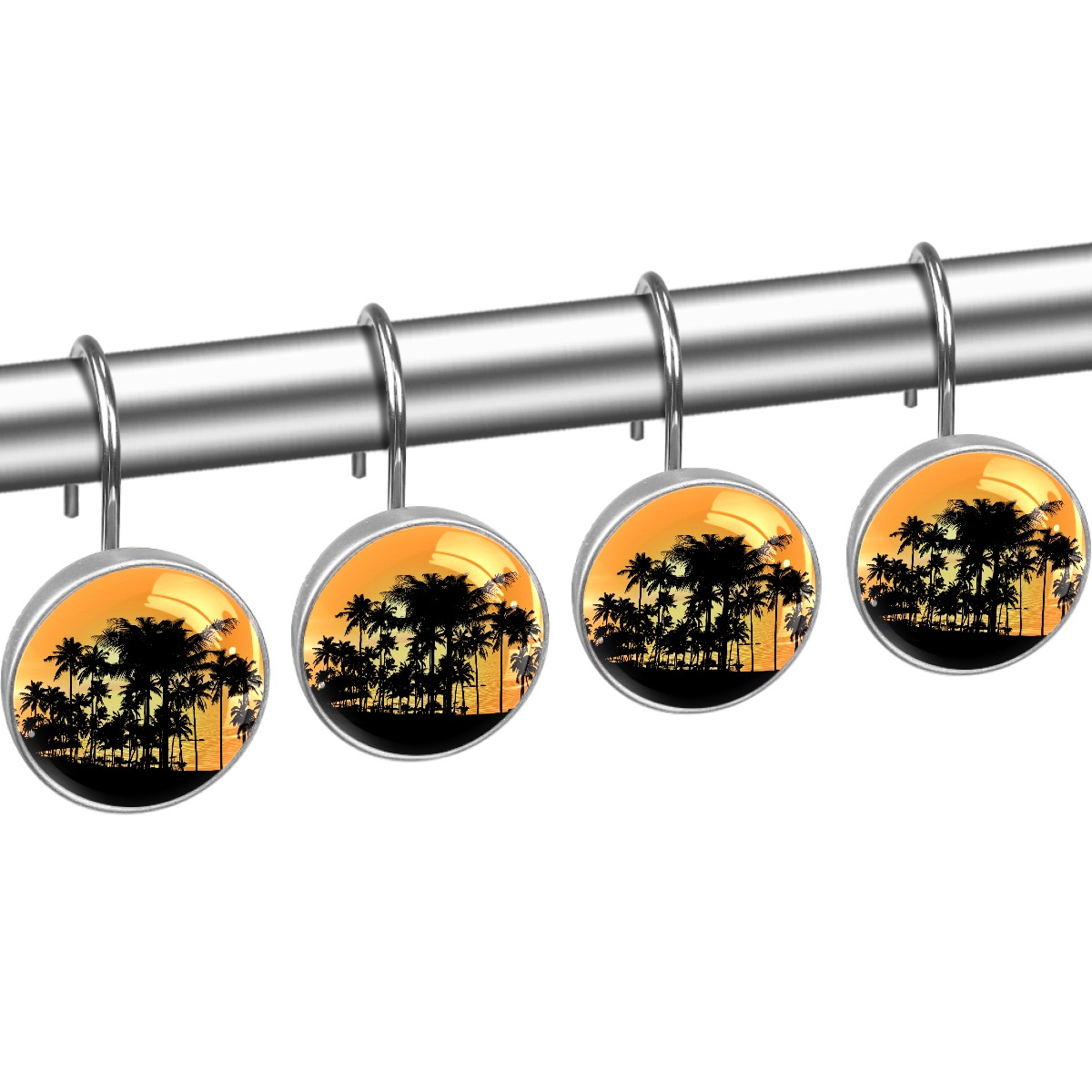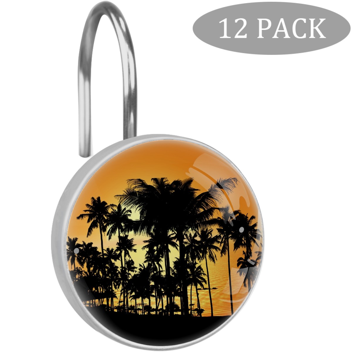 Decorative Shower Curtain Hooks Set of 12 Tropical Palm Trees Resin Shower Hooks for Curtain Shower Rings for Bathroom Home Hotel Shower Rods