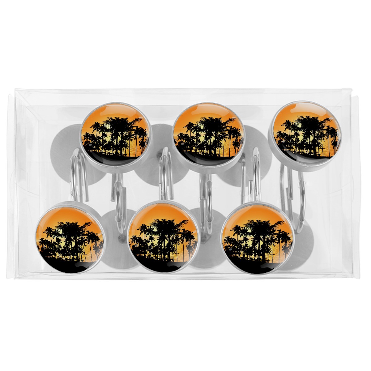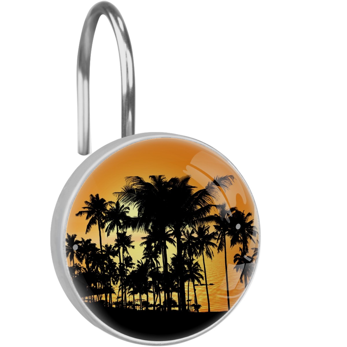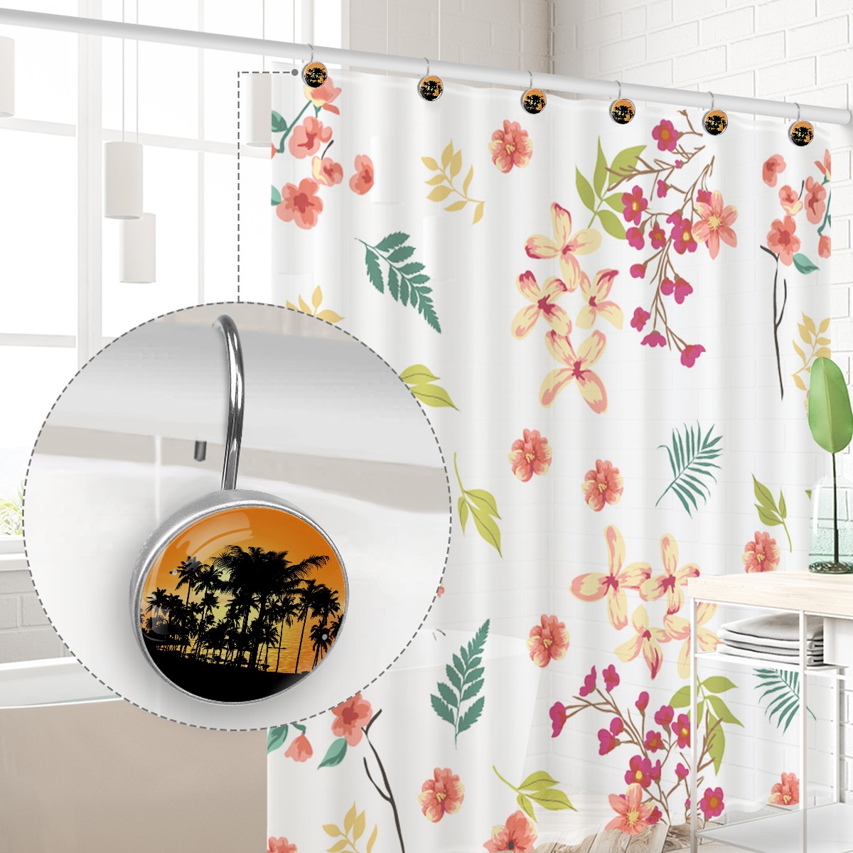 Decorative Shower Curtain Hooks Set of 12 Tropical Palm Trees Resin Shower Hooks for Curtain Shower Rings for Bathroom Home Hotel Shower Rods