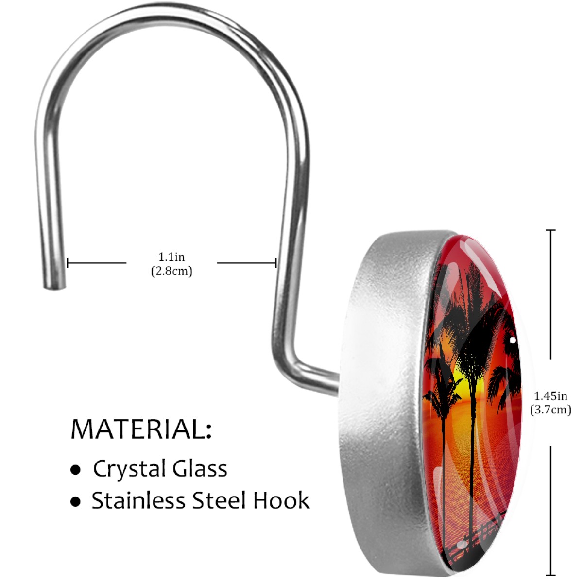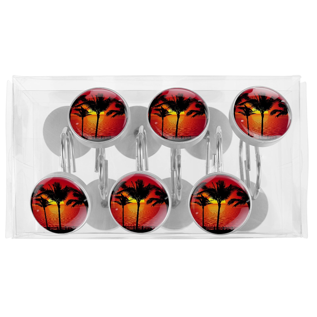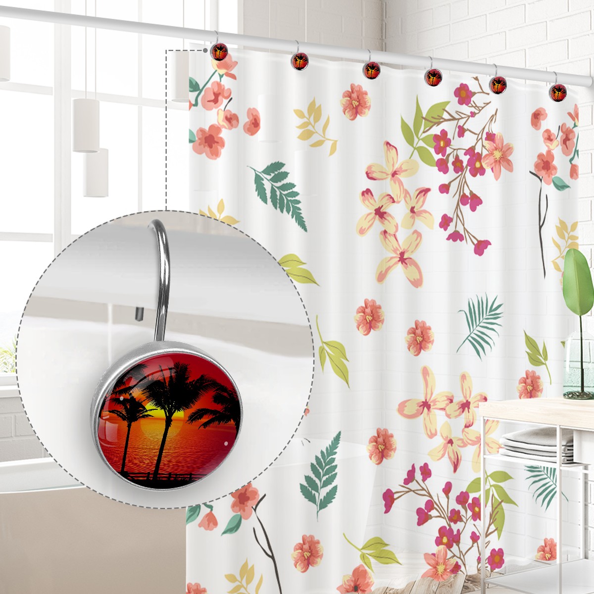 Decorative Shower Curtain Hooks Set of 12 Sunset Over Tropical Palm Trees Resin Shower Hooks for Curtain Shower Rings for Bathroom Home Hotel Shower Rods